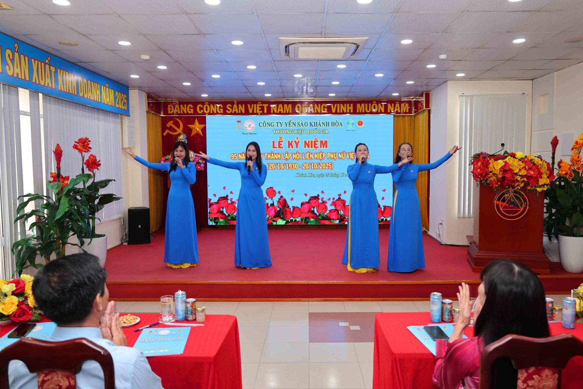 📌Chương trình là dịp để ôn lại truyền thống vẻ vang của phụ nữ Việt Nam, tôn vinh và tri ân những đóng góp to lớn của tập thể nữ CBCNLĐ trong sự phát triển bền vững của Yến sào Khánh Hòa – thương hiệu quốc gia, niềm tự hào của quê hương Khánh Hòa.