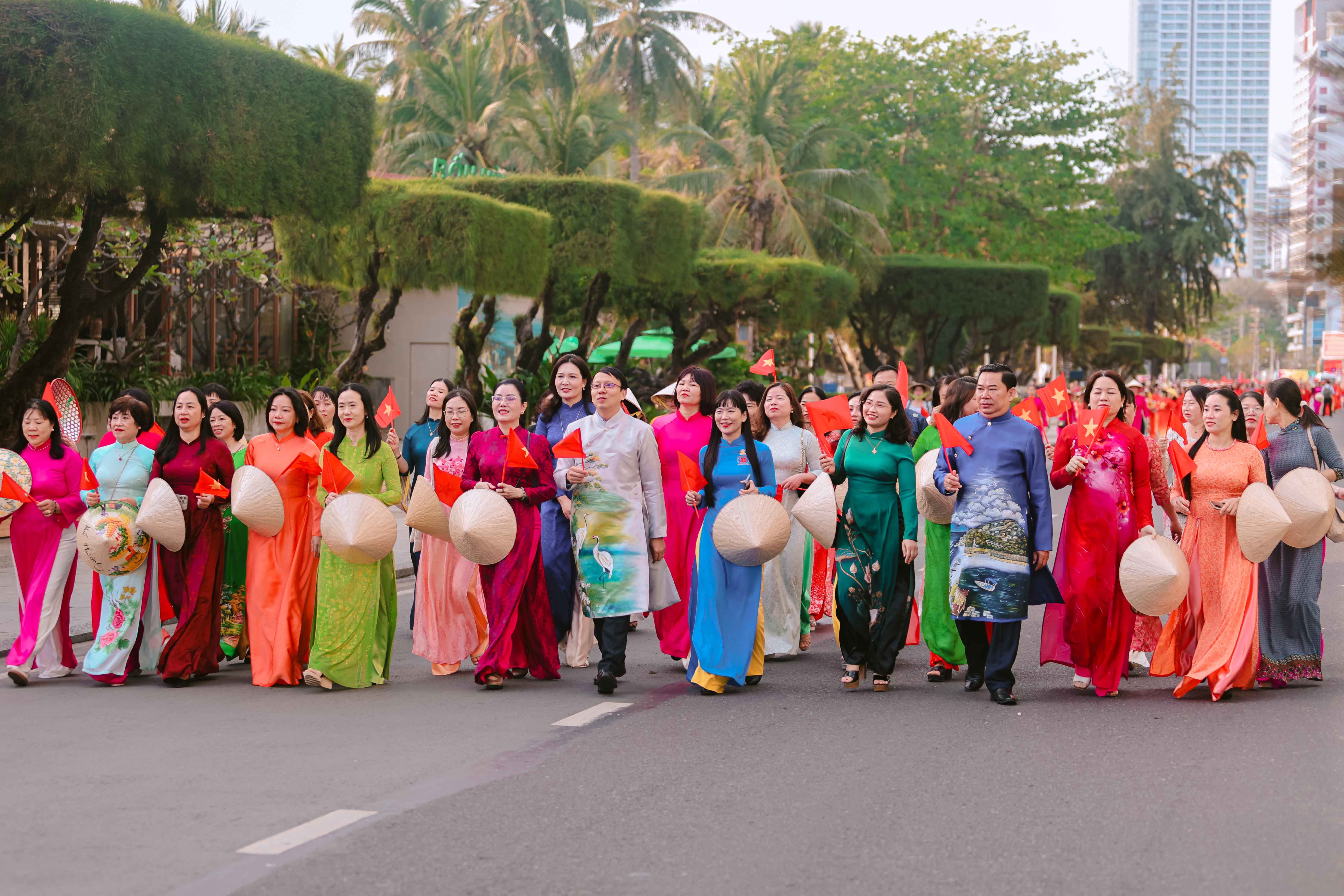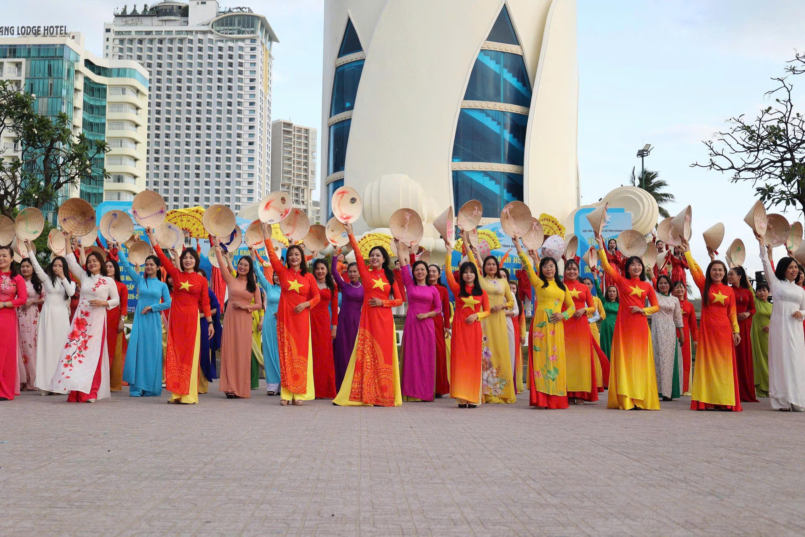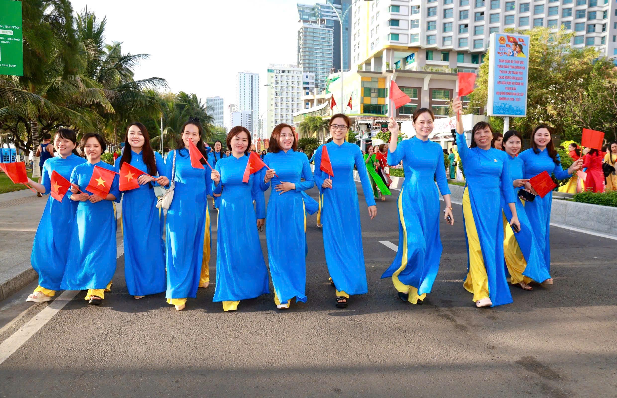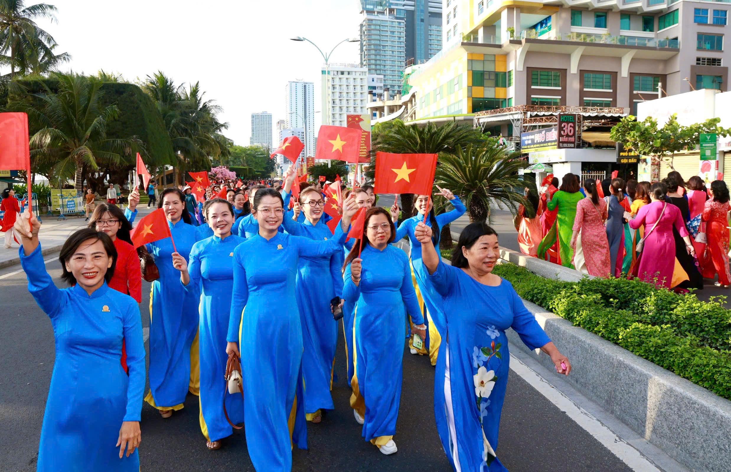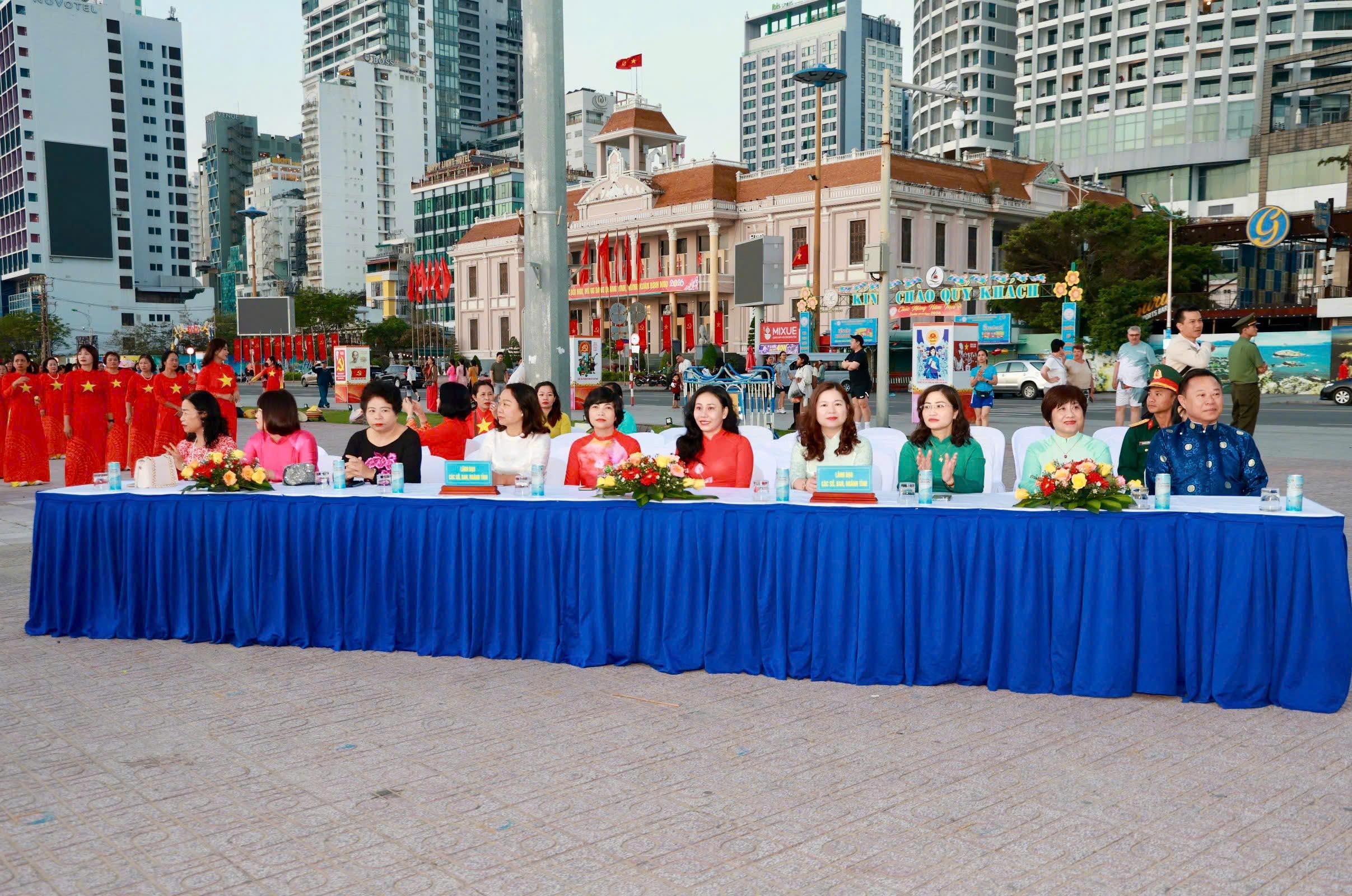 Tại đây, tập thể phụ nữ Yến sào Khánh Hoà cùng Hội phụ nữ trực thuộc và Hội phụ nữ các phường xã đã mang đến những tiết mục dân vũ được dàn dựng công phu; trình diễn sôi nổi, đẹp mắt, vui tươi, thể hiện sự khỏe khoắn trong từng động tác nhảy. Đặc biệt, màn diễu hành áo dài của đông đảo chị em phụ nữ đã vẽ nên một dải màu rực rỡ, thướt tha dọc bờ biển Nha Trang, tôn vinh vẻ đẹp duyên dáng của người phụ nữ Việt.