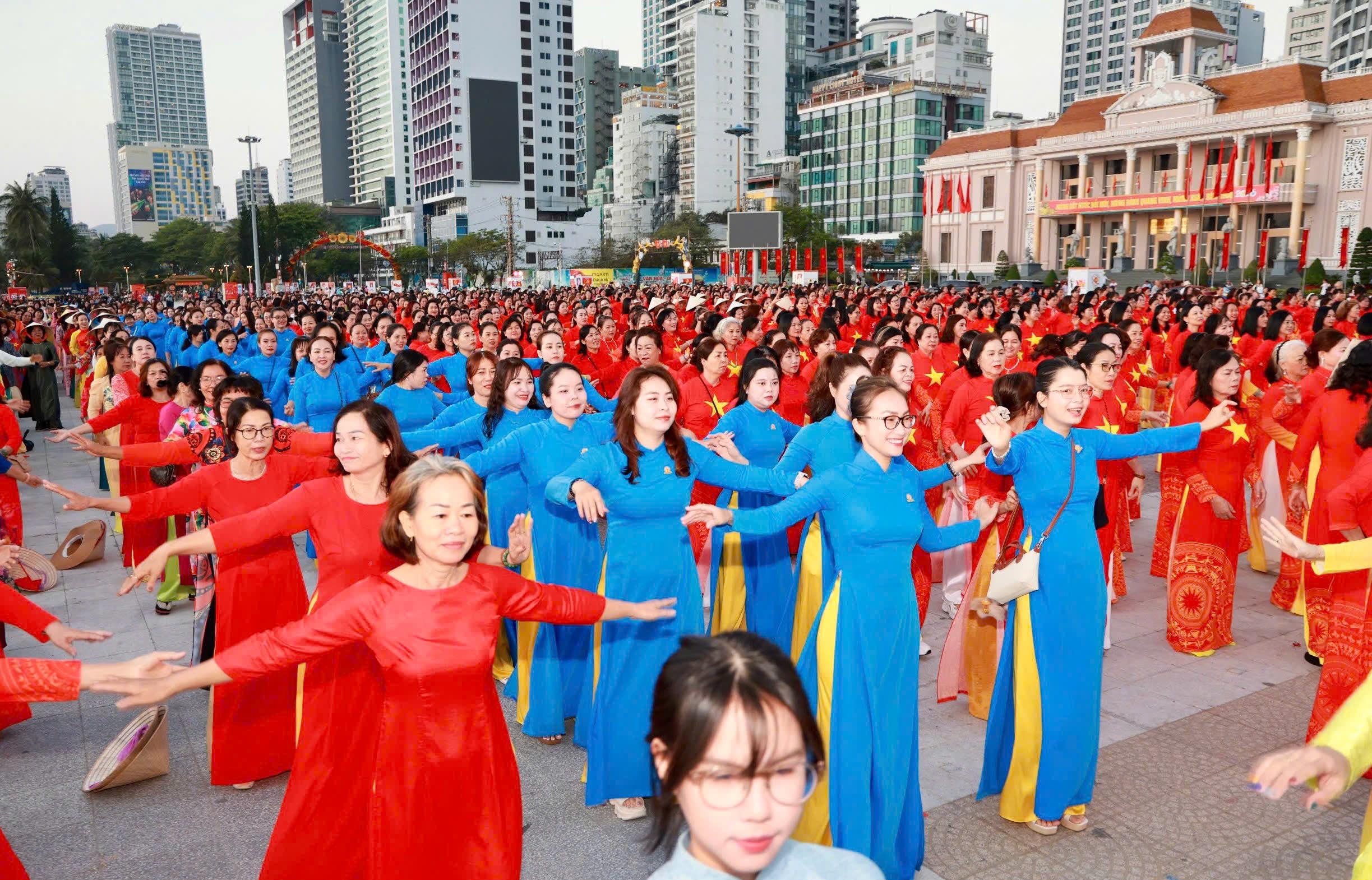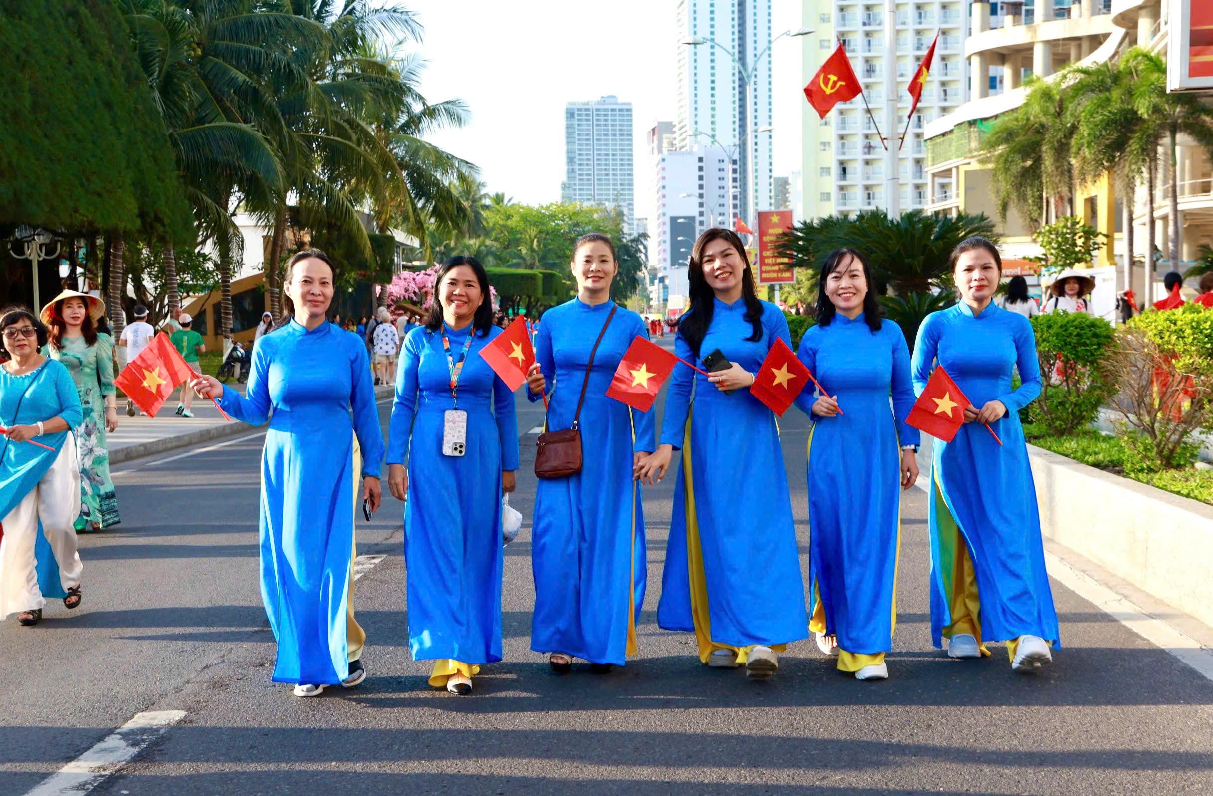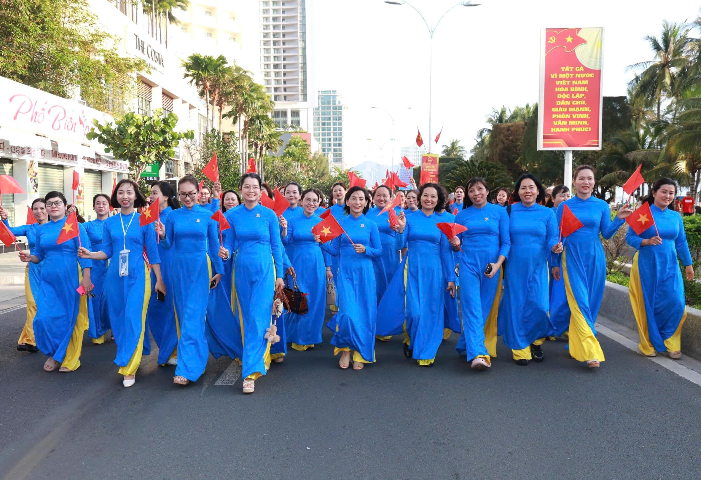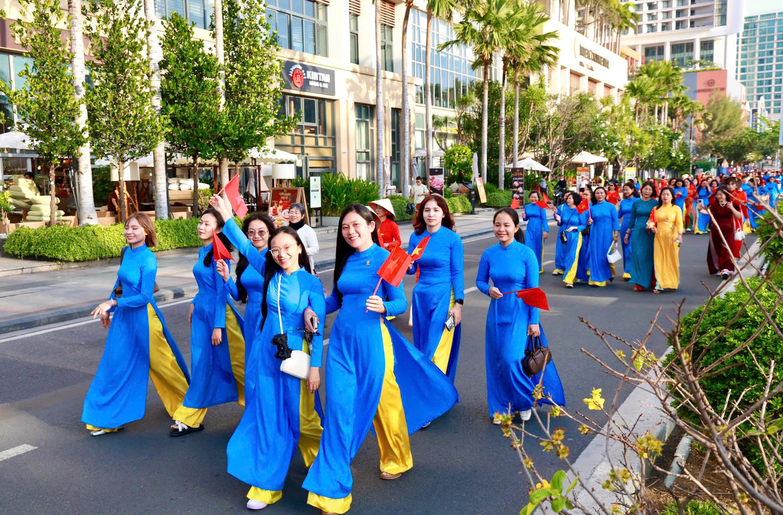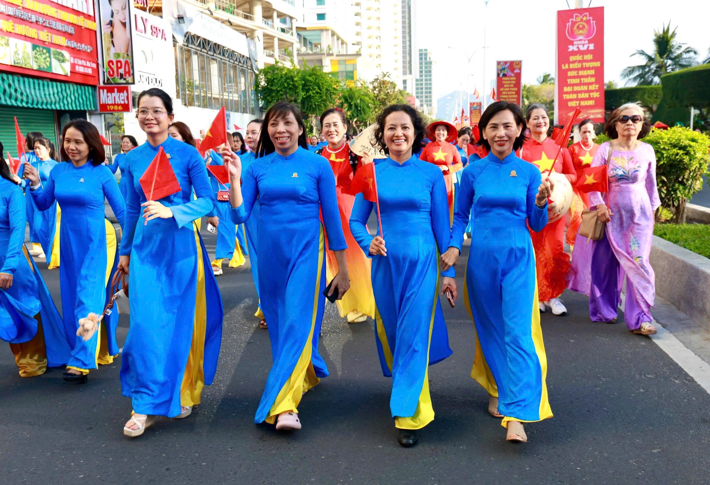 Tại đây, tập thể phụ nữ Yến sào Khánh Hoà cùng Hội phụ nữ trực thuộc và Hội phụ nữ các phường xã đã mang đến những tiết mục dân vũ được dàn dựng công phu; trình diễn sôi nổi, đẹp mắt, vui tươi, thể hiện sự khỏe khoắn trong từng động tác nhảy. Đặc biệt, màn diễu hành áo dài của đông đảo chị em phụ nữ đã vẽ nên một dải màu rực rỡ, thướt tha dọc bờ biển Nha Trang, tôn vinh vẻ đẹp duyên dáng của người phụ nữ Việt.