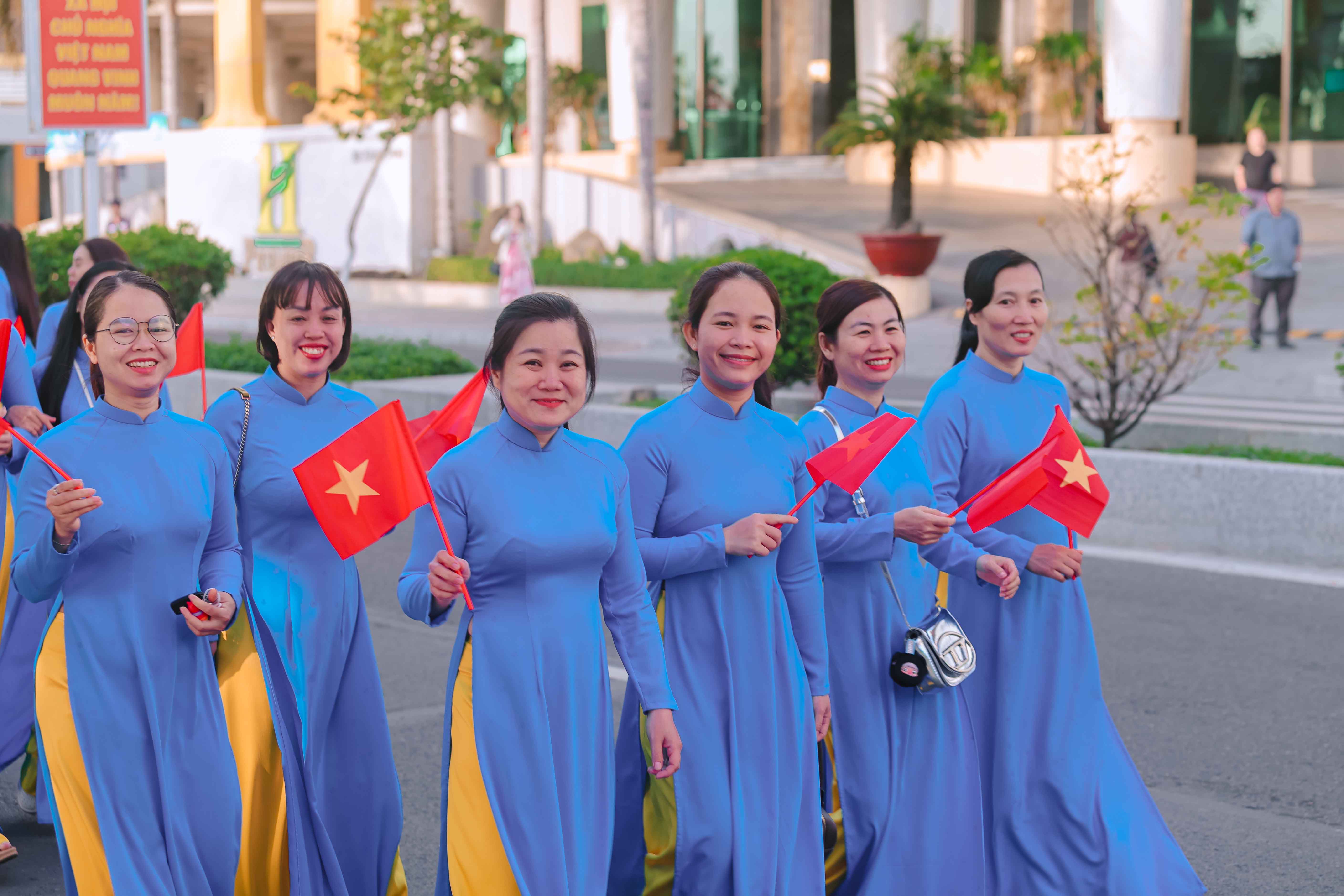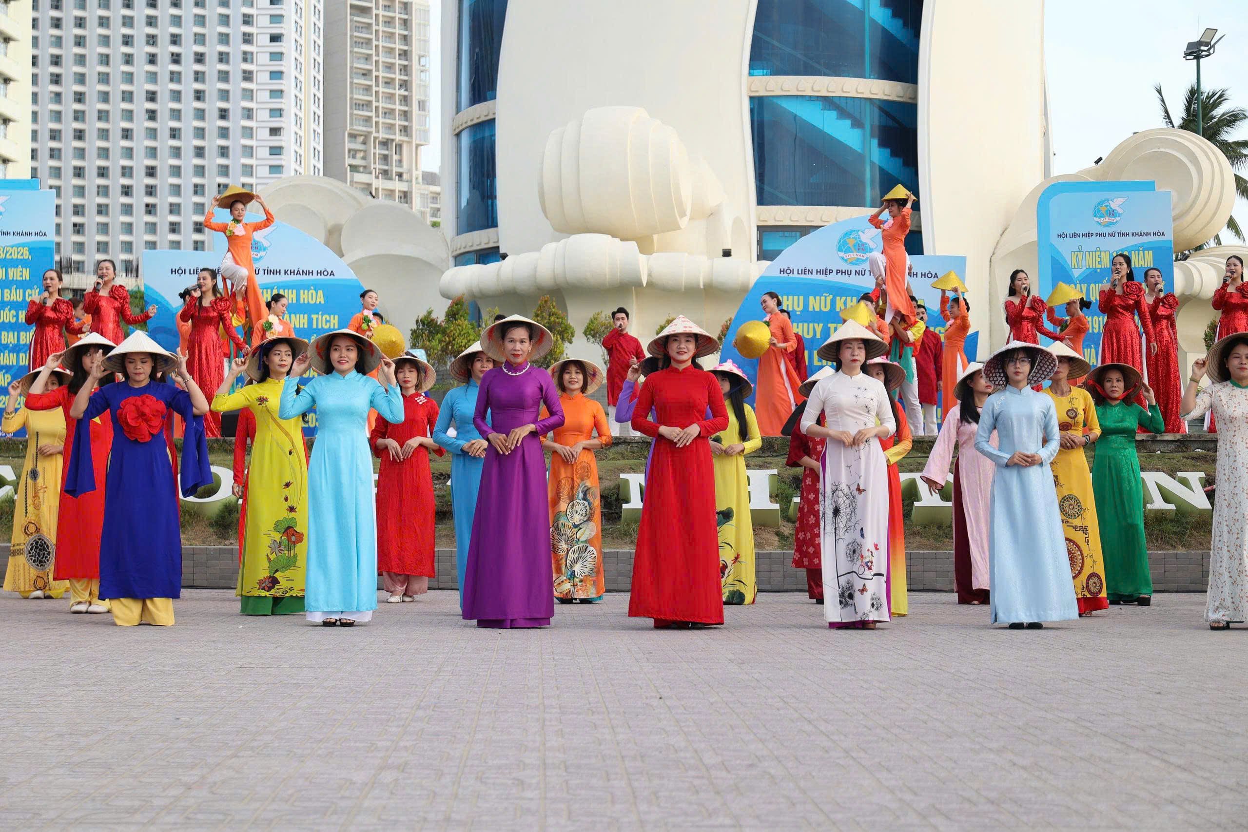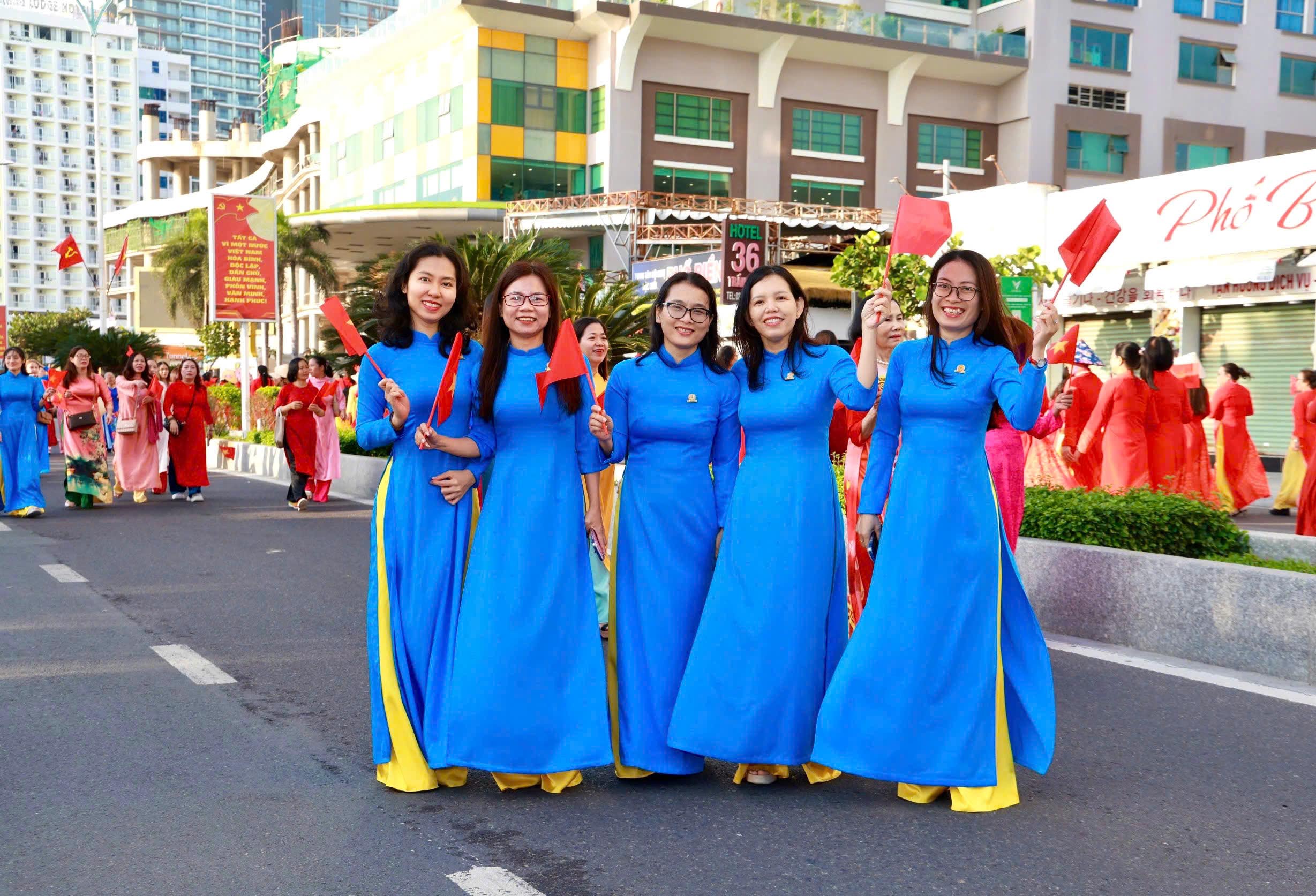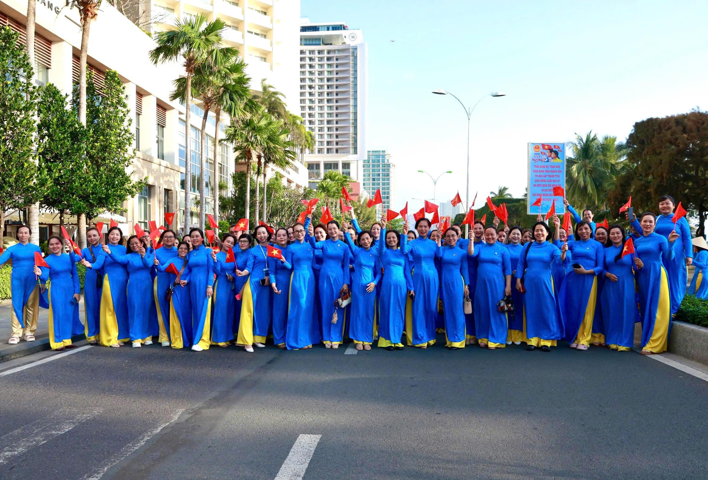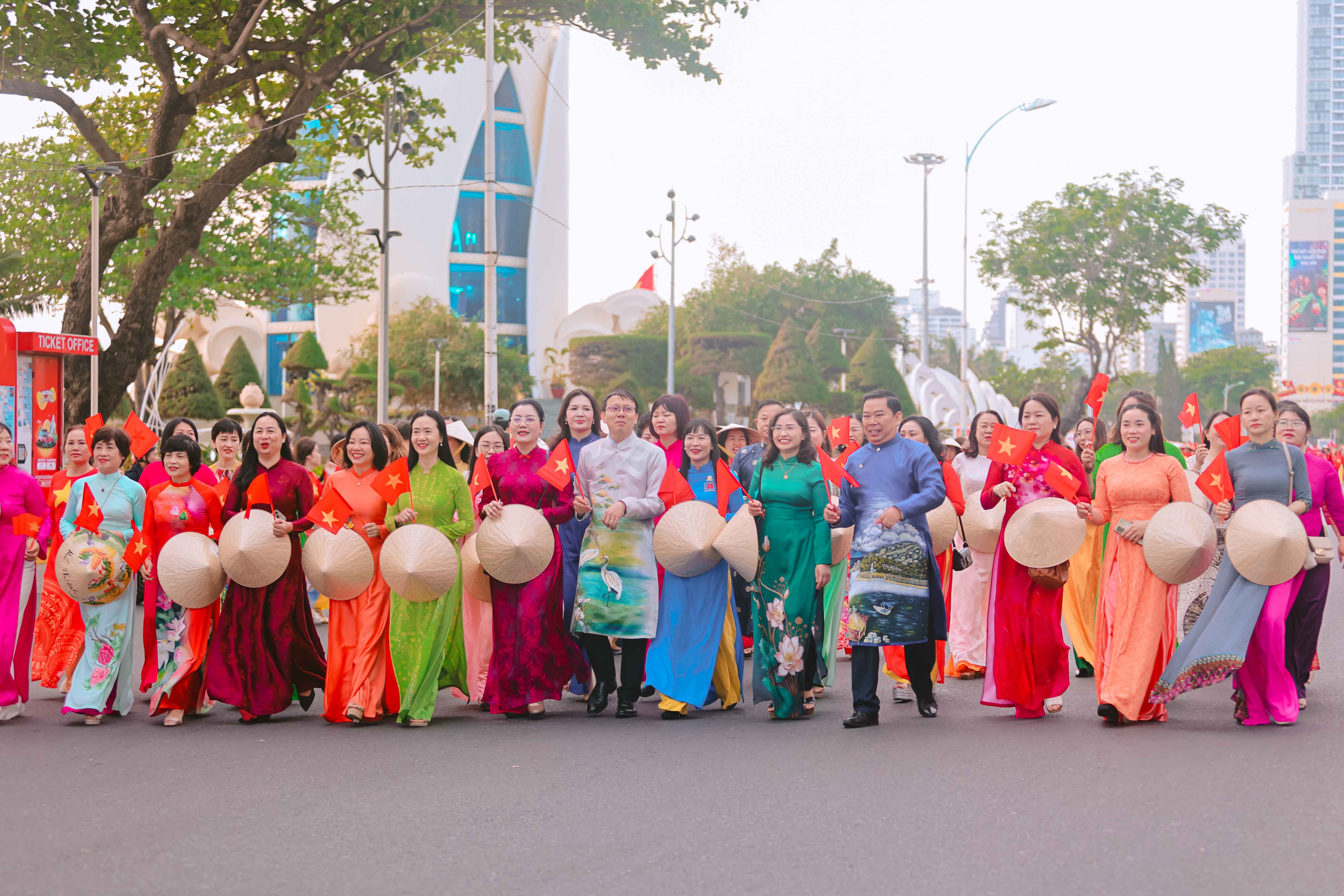 Tại đây, tập thể phụ nữ Yến sào Khánh Hoà cùng Hội phụ nữ trực thuộc và Hội phụ nữ các phường xã đã mang đến những tiết mục dân vũ được dàn dựng công phu; trình diễn sôi nổi, đẹp mắt, vui tươi, thể hiện sự khỏe khoắn trong từng động tác nhảy. Đặc biệt, màn diễu hành áo dài của đông đảo chị em phụ nữ đã vẽ nên một dải màu rực rỡ, thướt tha dọc bờ biển Nha Trang, tôn vinh vẻ đẹp duyên dáng của người phụ nữ Việt.