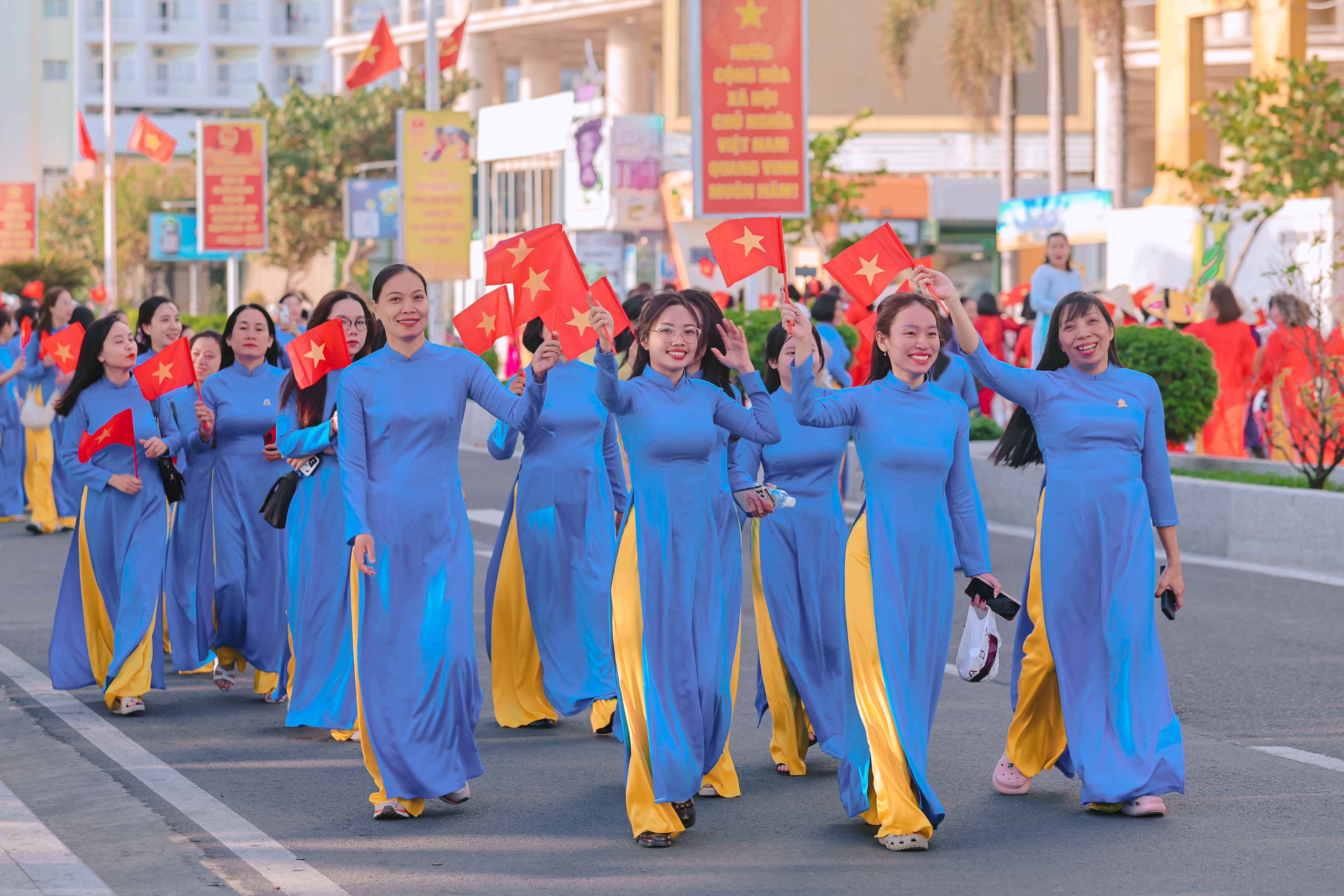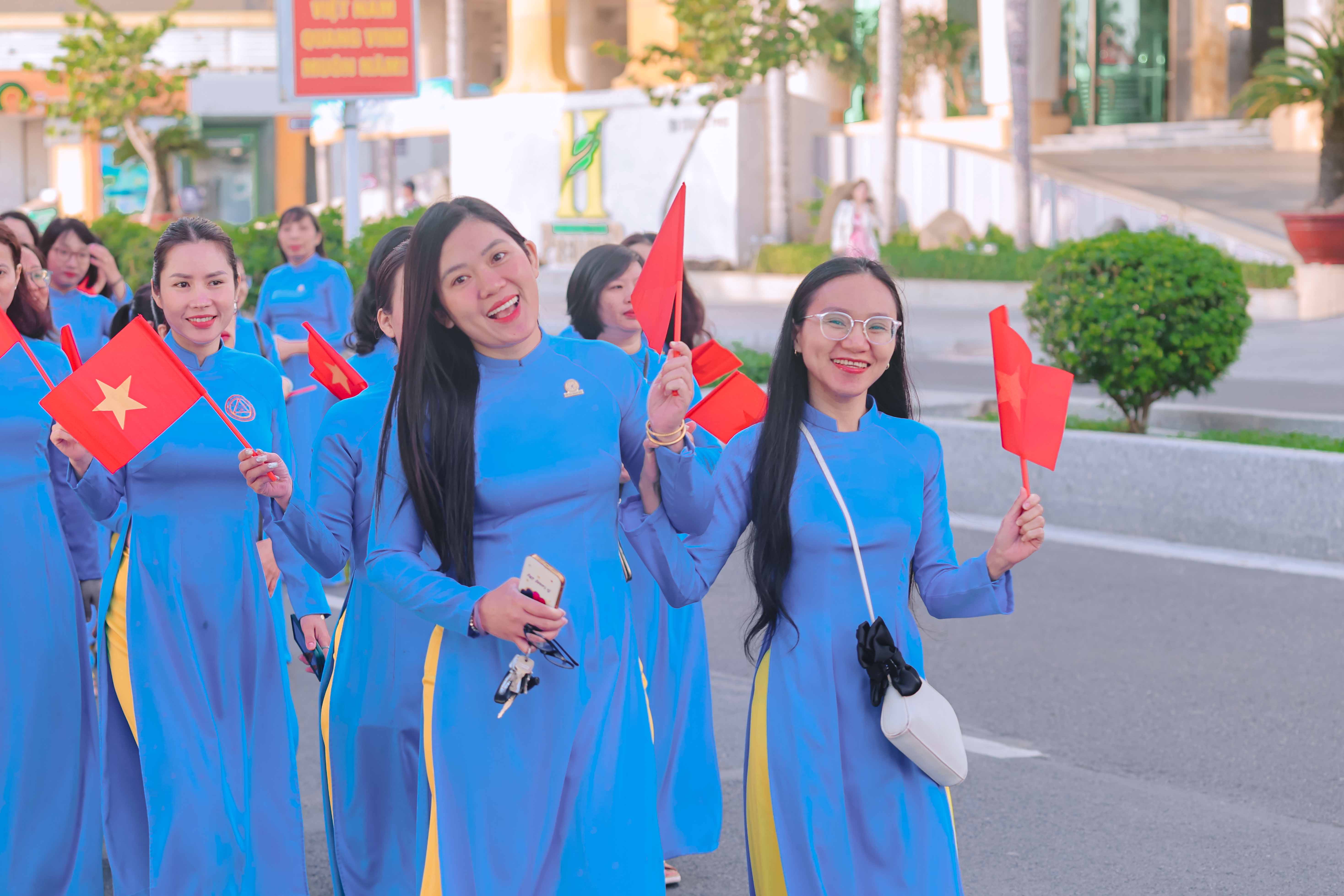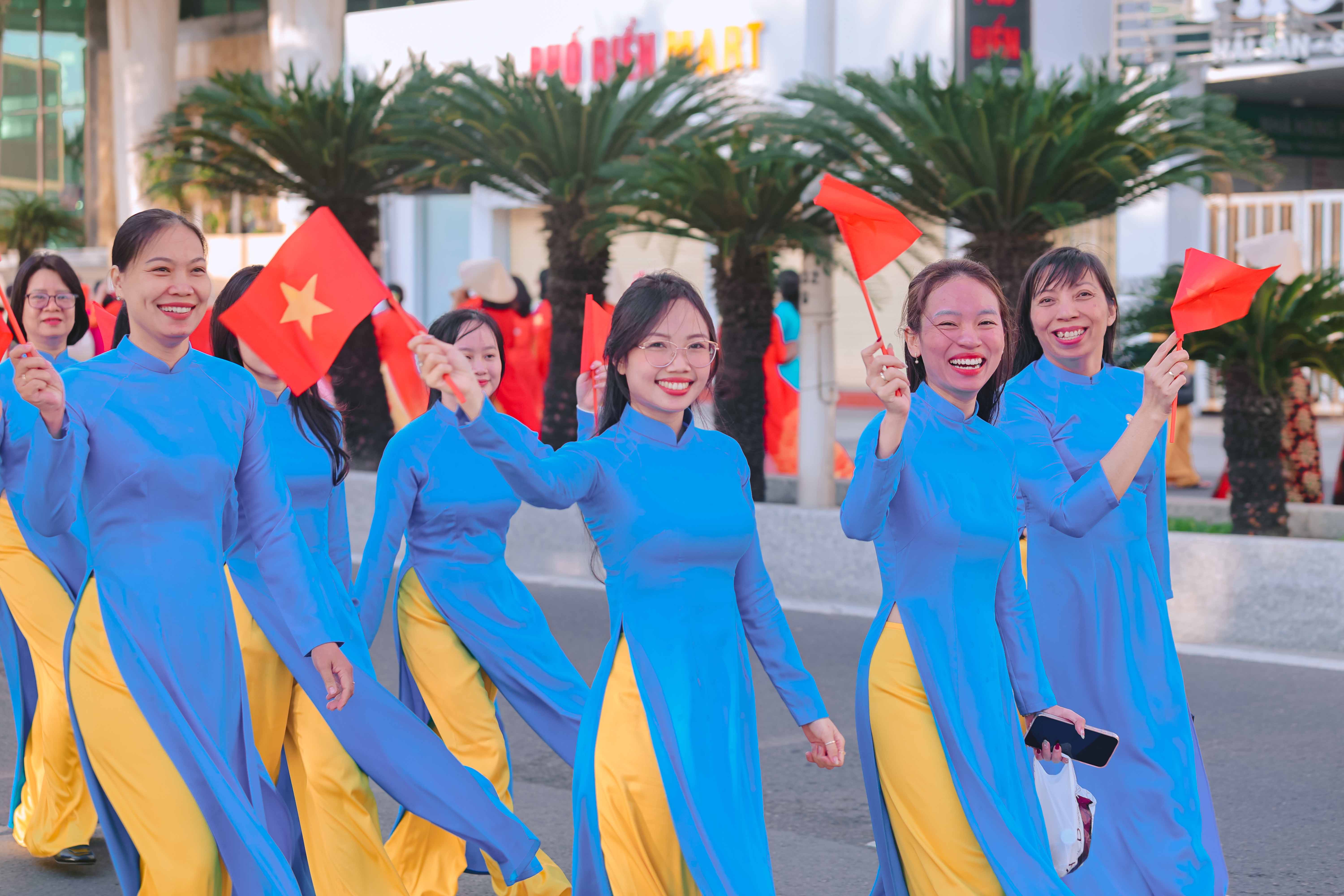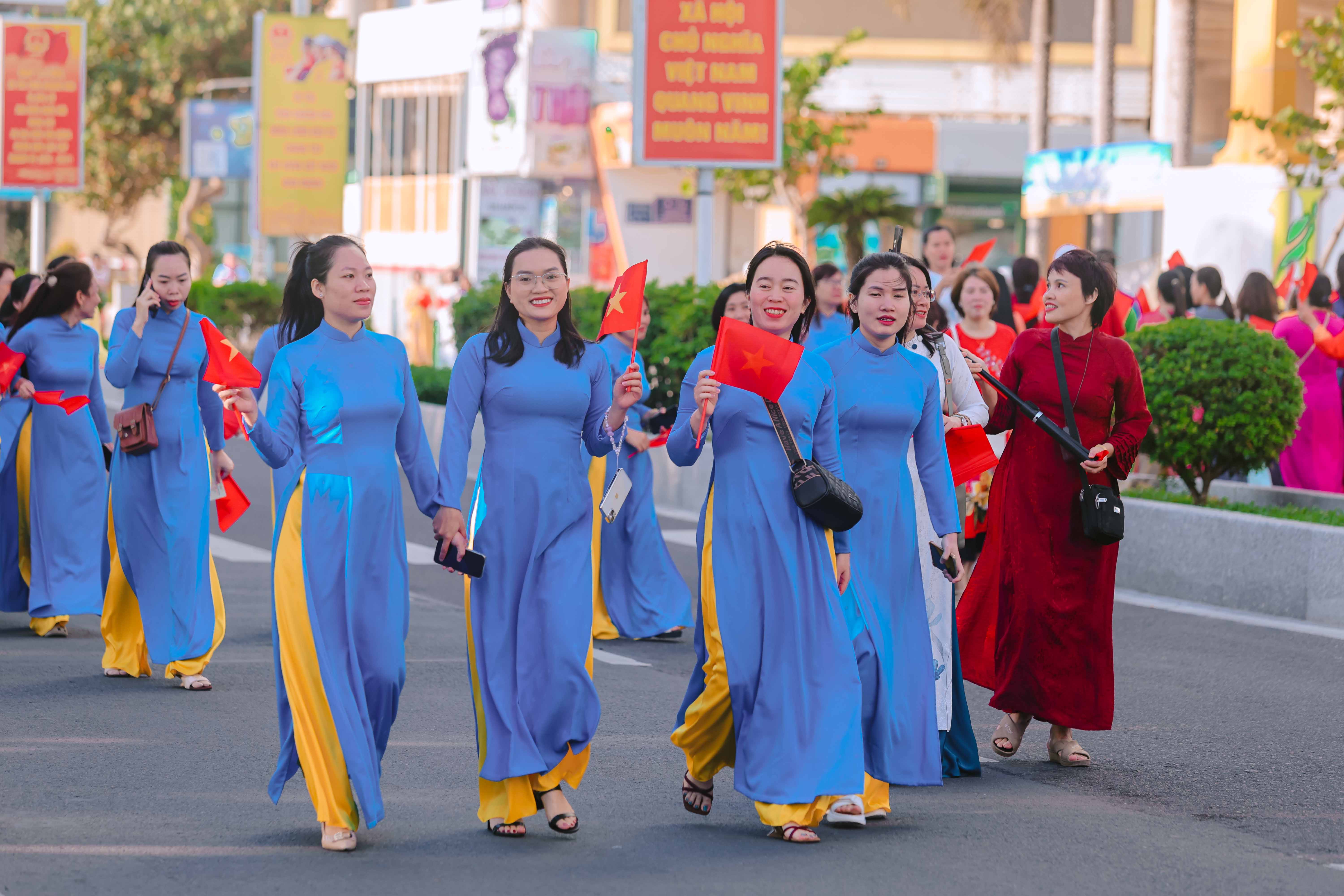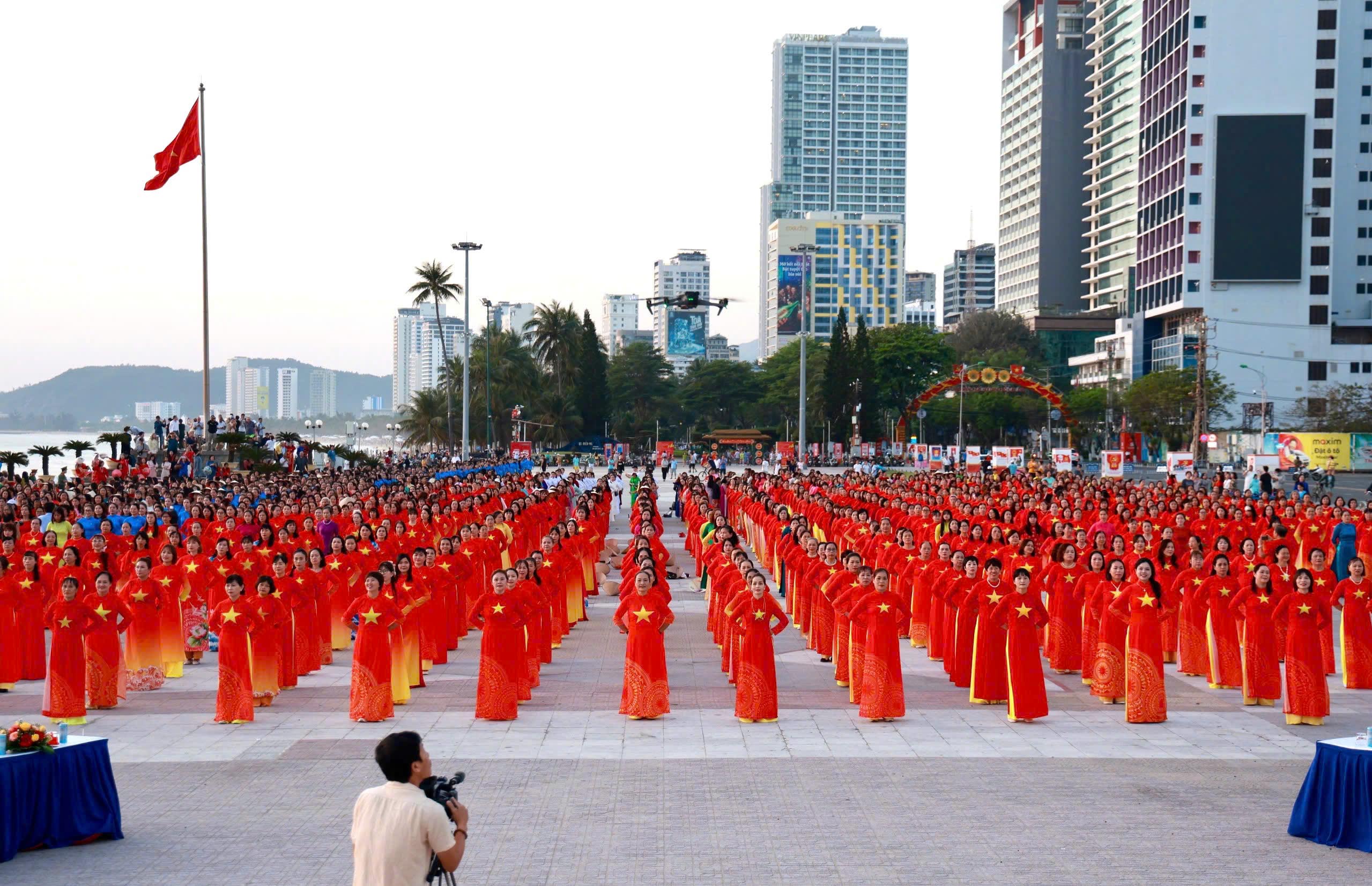 Tại đây, tập thể phụ nữ Yến sào Khánh Hoà cùng Hội phụ nữ trực thuộc và Hội phụ nữ các phường xã đã mang đến những tiết mục dân vũ được dàn dựng công phu; trình diễn sôi nổi, đẹp mắt, vui tươi, thể hiện sự khỏe khoắn trong từng động tác nhảy. Đặc biệt, màn diễu hành áo dài của đông đảo chị em phụ nữ đã vẽ nên một dải màu rực rỡ, thướt tha dọc bờ biển Nha Trang, tôn vinh vẻ đẹp duyên dáng của người phụ nữ Việt.