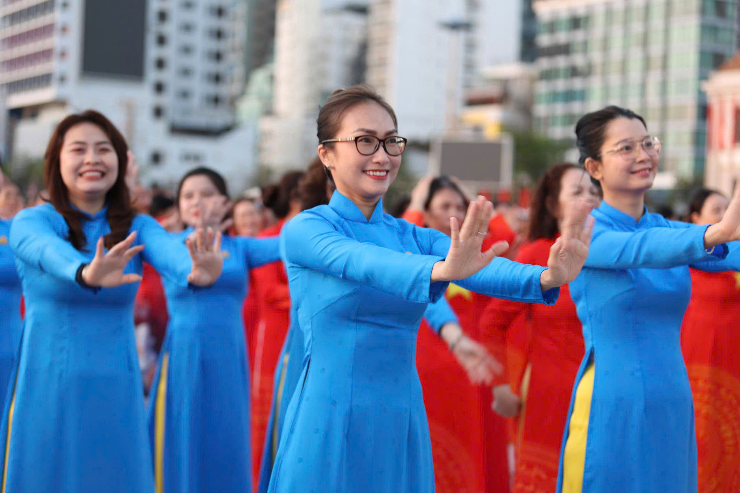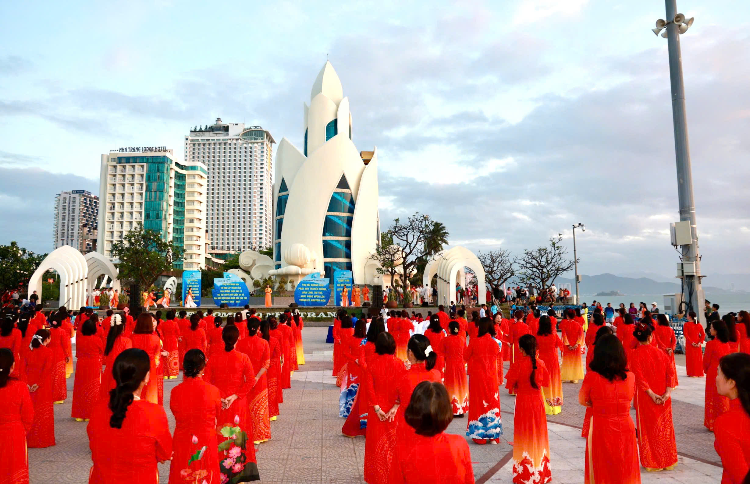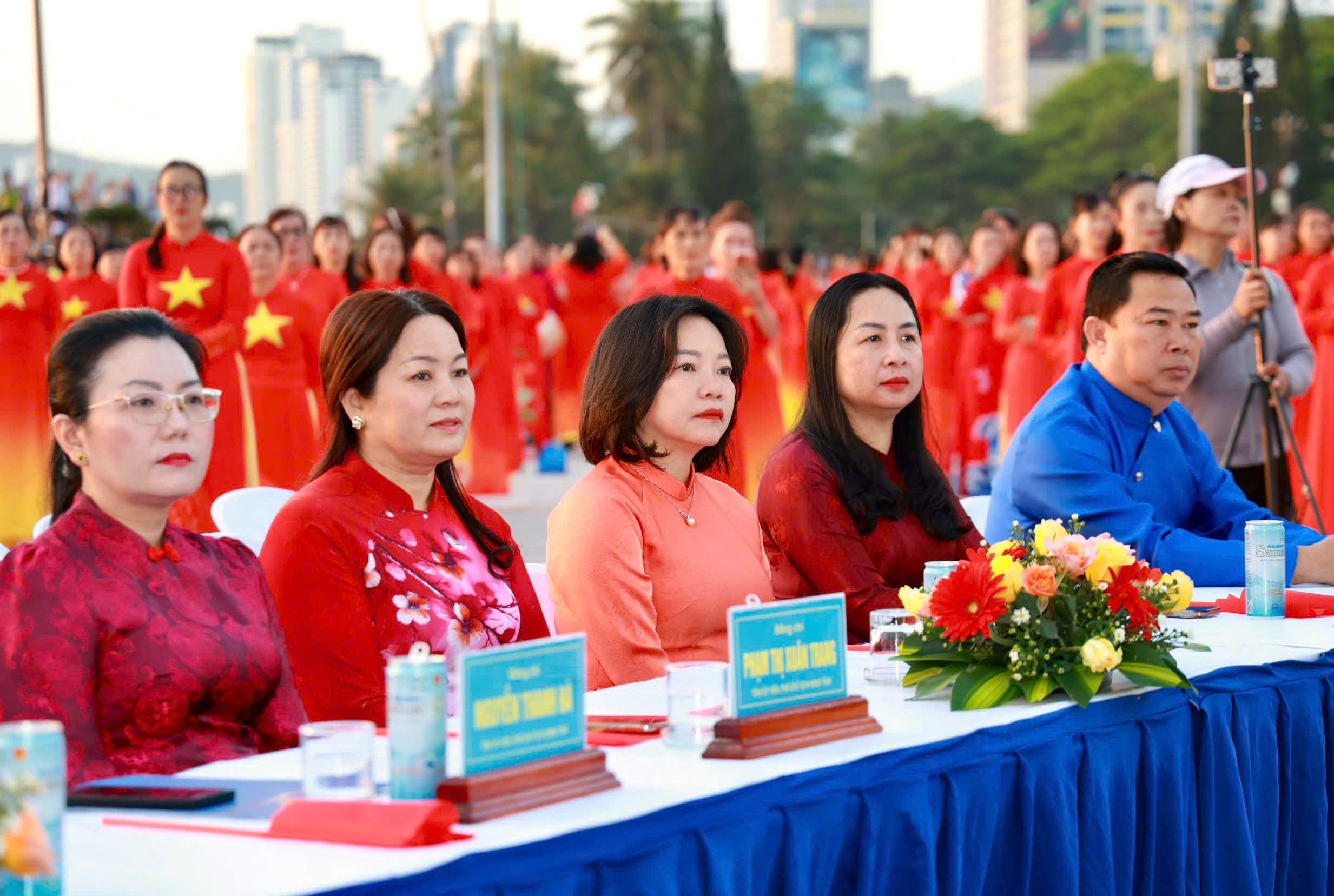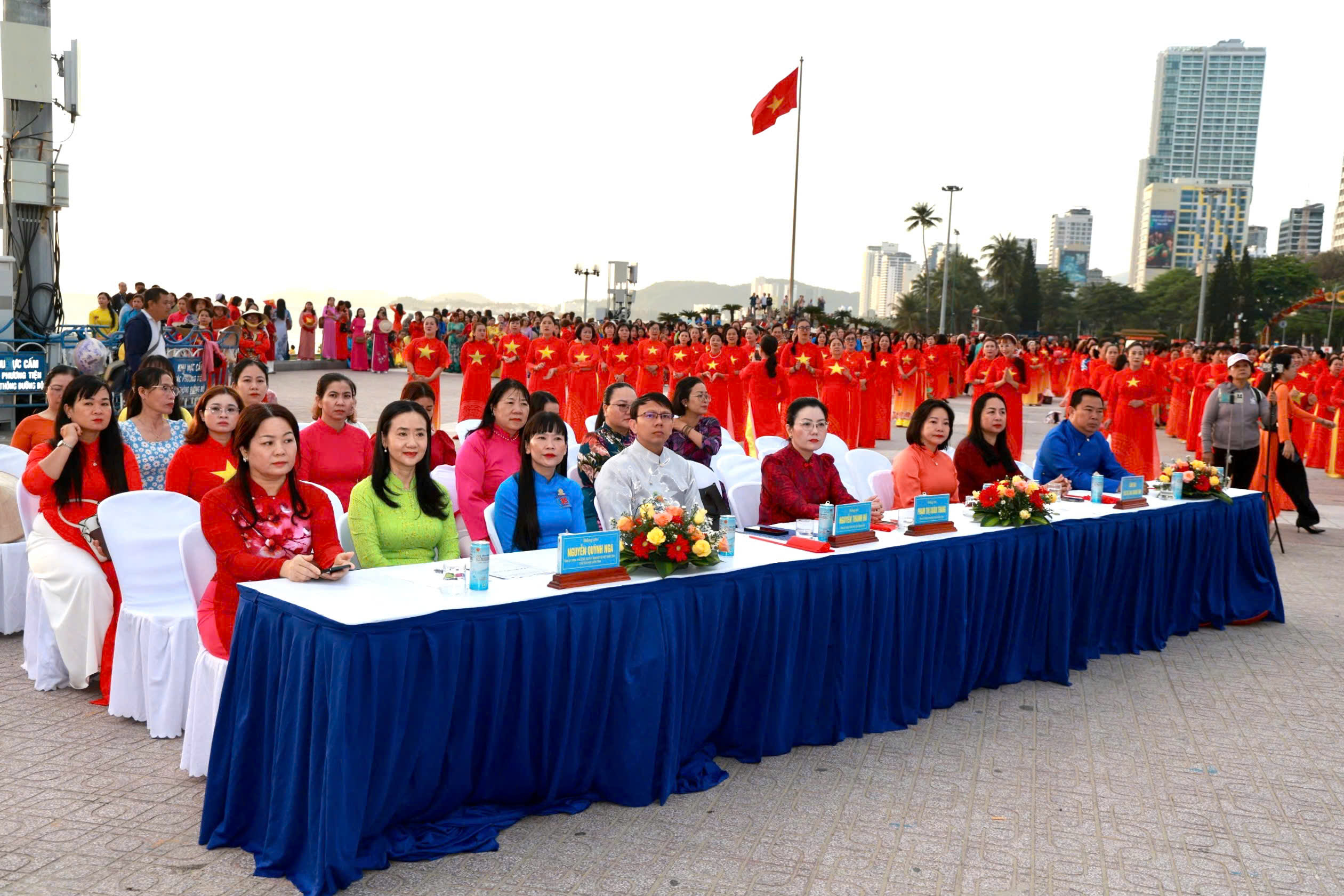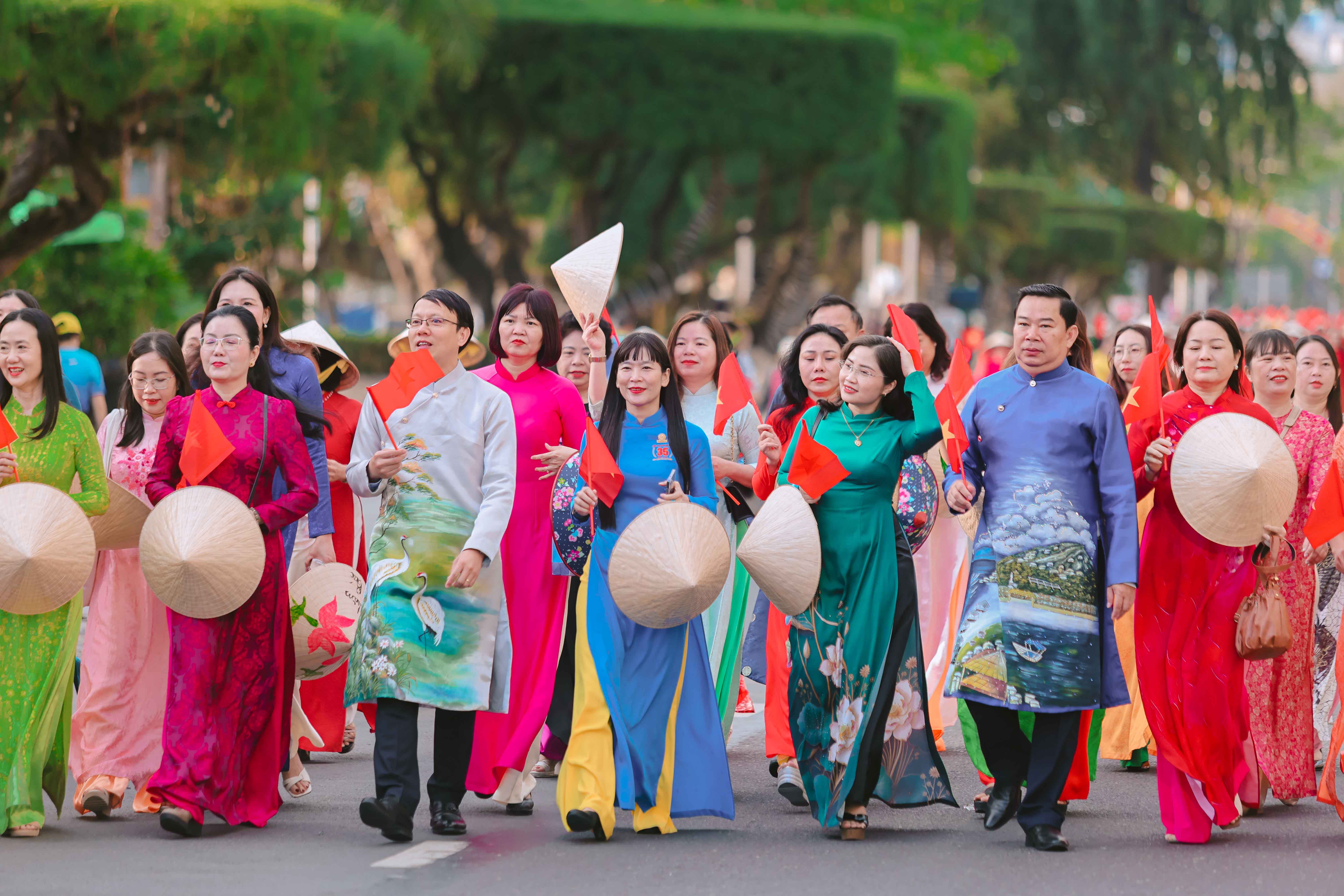 Tại đây, tập thể phụ nữ Yến sào Khánh Hoà cùng Hội phụ nữ trực thuộc và Hội phụ nữ các phường xã đã mang đến những tiết mục dân vũ được dàn dựng công phu; trình diễn sôi nổi, đẹp mắt, vui tươi, thể hiện sự khỏe khoắn trong từng động tác nhảy. Đặc biệt, màn diễu hành áo dài của đông đảo chị em phụ nữ đã vẽ nên một dải màu rực rỡ, thướt tha dọc bờ biển Nha Trang, tôn vinh vẻ đẹp duyên dáng của người phụ nữ Việt.