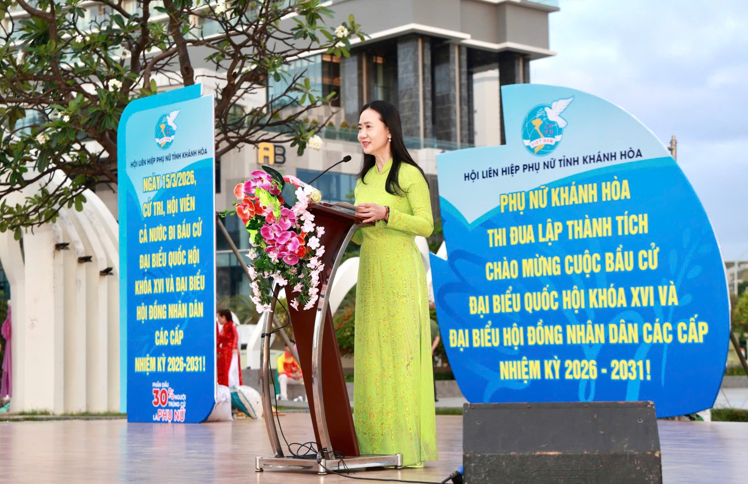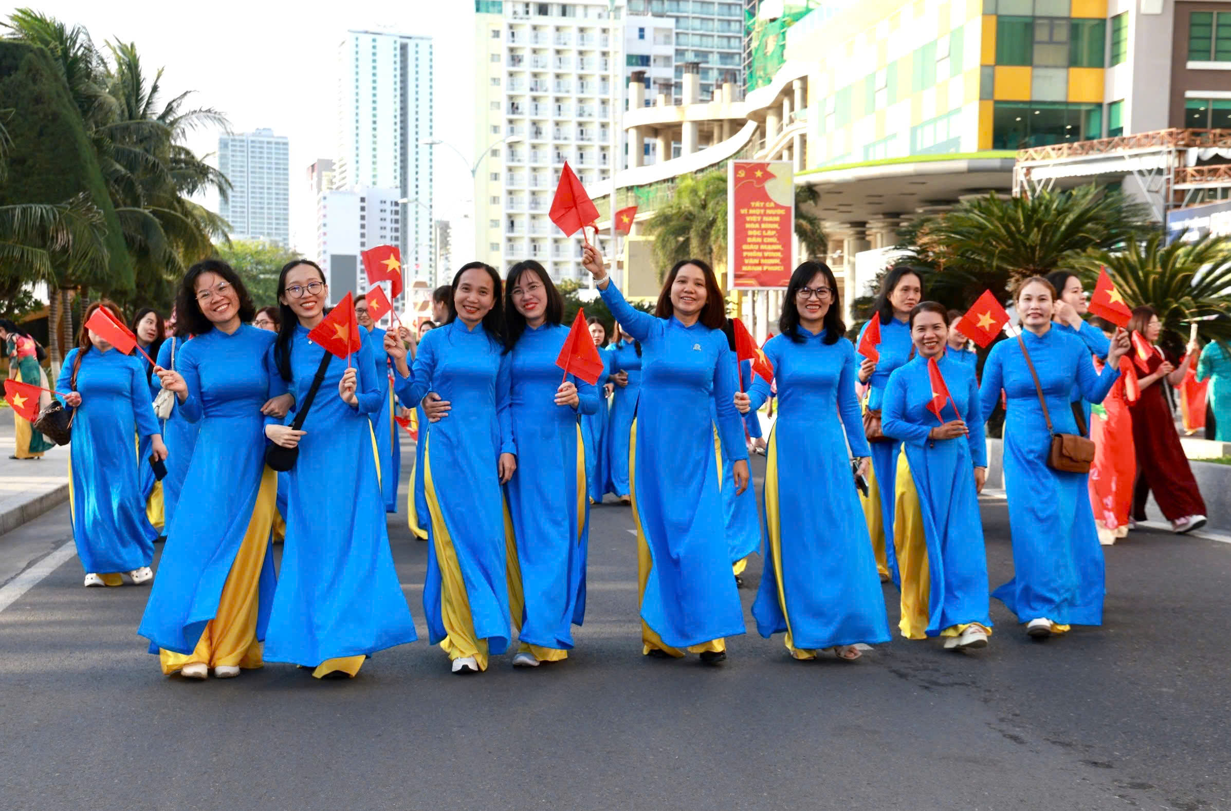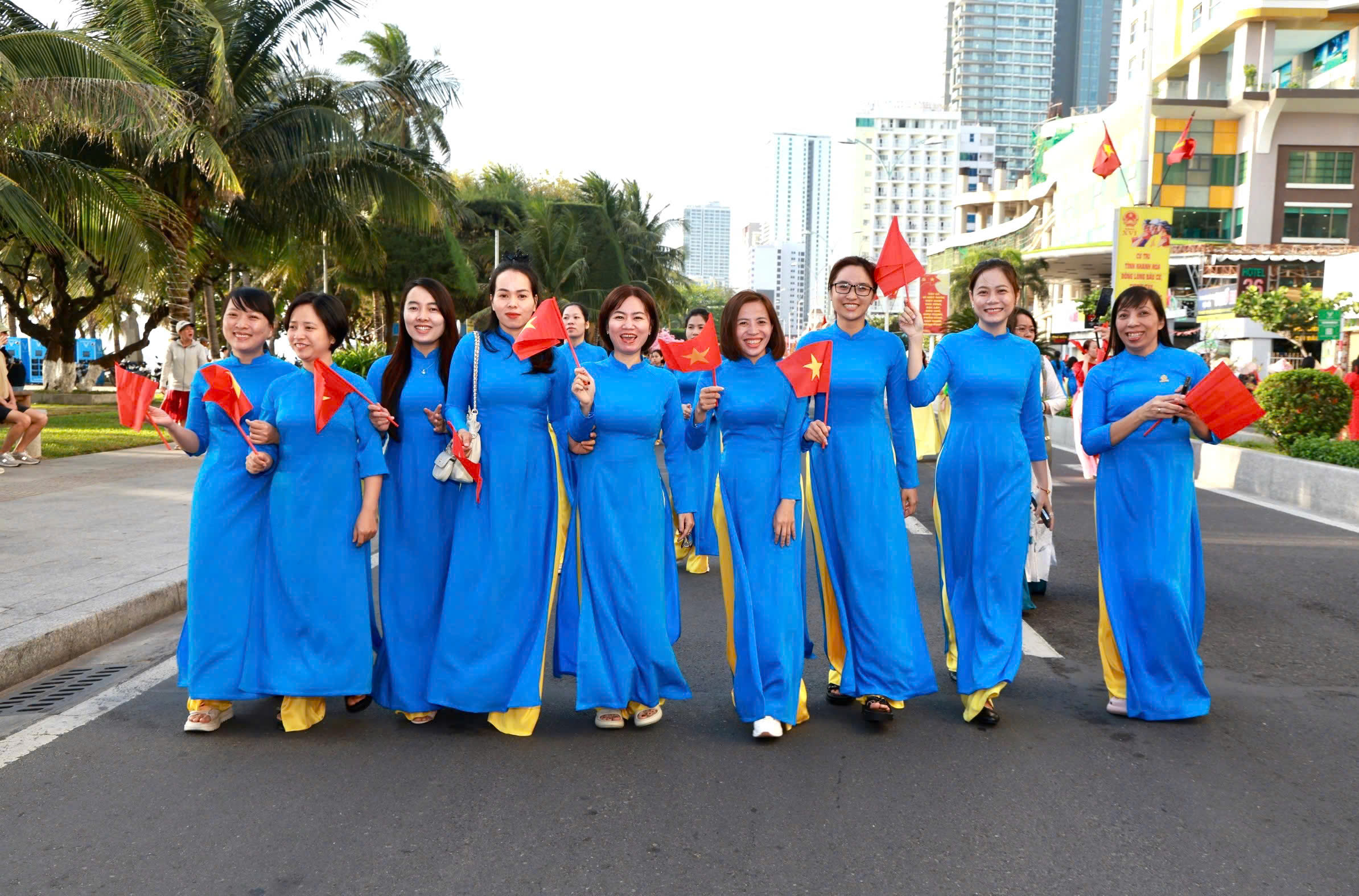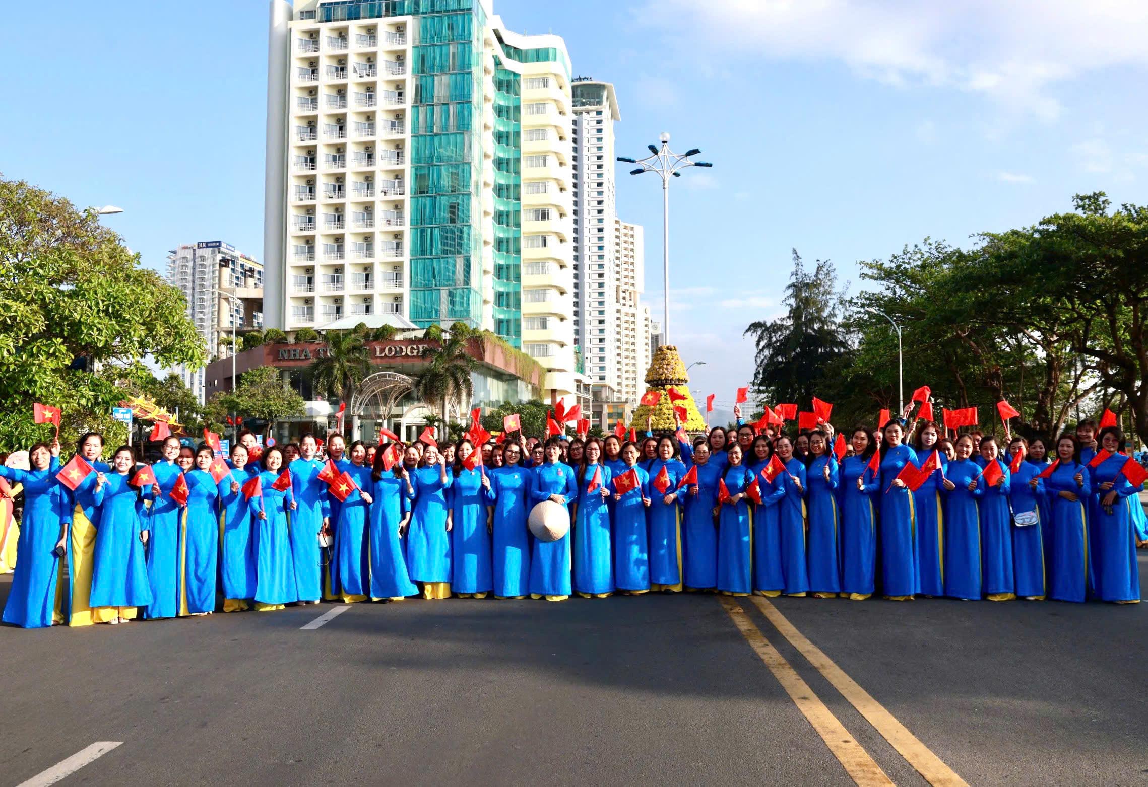 Sáng 8/3, Hội Liên hiệp phụ nữ tỉnh Khánh Hòa tổ chức chương trình kỷ niệm 116 năm ngày Quốc tế Phụ nữ, 1986 năm Khởi nghĩa Hai Bà Trưng và diễu hành áo dài, hưởng ứng hoạt động tôn vinh giá trị “Áo dài – Di sản văn hóa Việt Nam”.