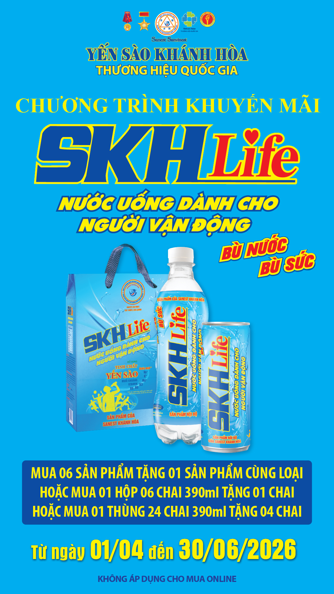 Chương trình khuyến mãi các dòng sản phẩm Nước uống dành cho người vận động SKHLife áp dụng tại hệ thống Cửa hàng GTSP trực thuộc Công ty từ ngày 01/04/2026 đến hết ngày 30/06/2026