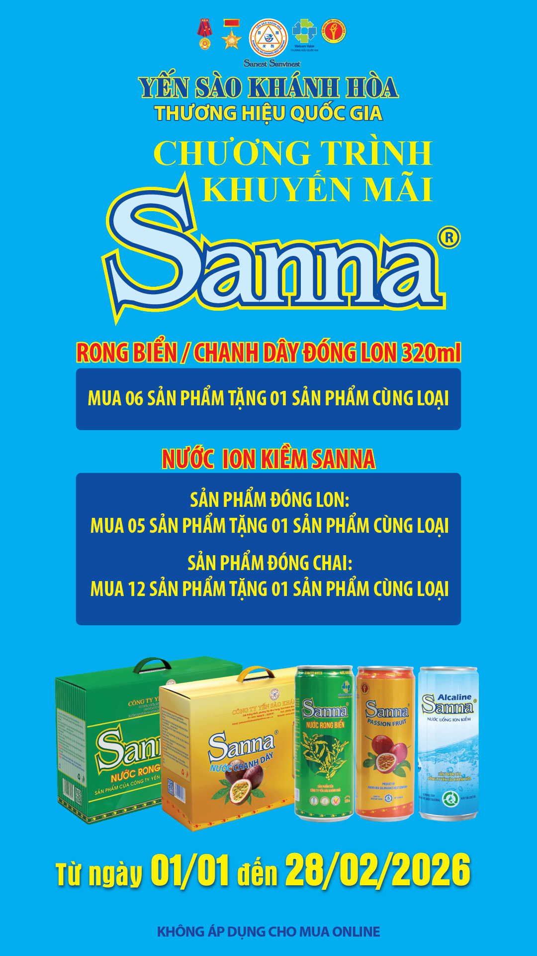 - Chương trình khuyến mãi các dòng sản phẩm Sanna áp dụng tại hệ thống Cửa hàng GTSP trực thuộc Công ty từ ngày 01/01/2026 đến hết ngày 28/02/2026