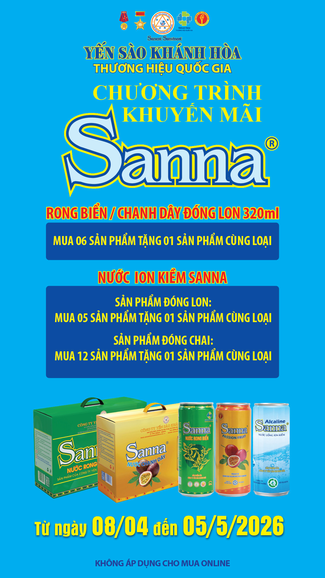 Chương trình khuyến mãi các dòng sản phẩm Sanna áp dụng tại hệ thống Cửa hàng GTSP trực thuộc Công ty từ ngày 08/04/2026 đến hết ngày 05/05/2026