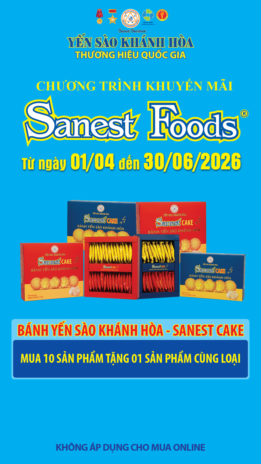 - Chương trình khuyến mãi sản phẩm bánh Yến sào Khánh Hòa Sanest Cake từ ngày 01/04/2026 đến hết ngày 30/06/2026