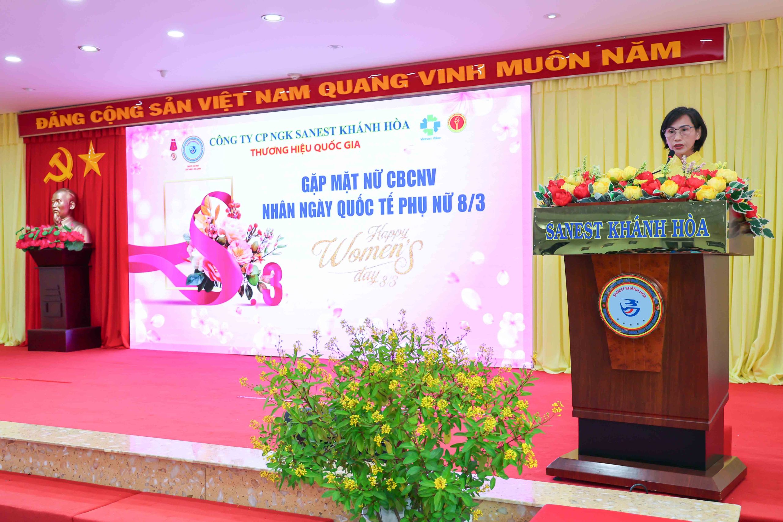 Tiếp đó, các đại biểu cùng nhìn lại chặng đường phát triển của Công ty qua những hình ảnh, thước phim ghi dấu ấn đóng góp của tập thể nữ cán bộ, công nhân viên Sanest Khánh Hòa trong nhiều năm qua. Phát biểu ôn lại truyền thống Ngày Quốc tế Phụ nữ 8/3, lãnh đạo Công ty đã nhấn mạnh vai trò quan trọng của phụ nữ trong gia đình và xã hội, đồng thời ghi nhận sự nỗ lực, tận tâm của đội ngũ nữ lao động trong mọi lĩnh vực từ khối kinh doanh, sản xuất đến khối văn phòng góp phần đặc biệt quan trọng xây dựng thương hiệu Sanest Khánh Hòa phát triển vững mạnh.