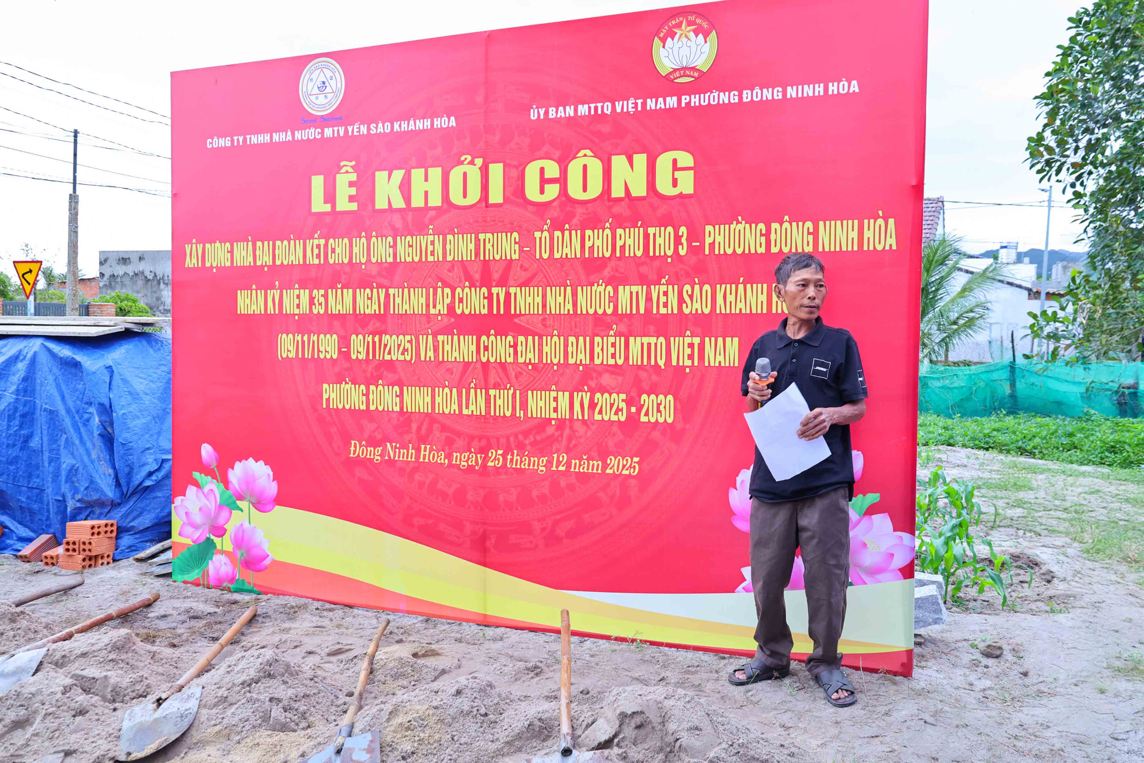 CÔNG TY YẾN SÀO KHÁNH HOÀ KHỞI CÔNG NHÀ ĐẠI ĐOÀN KẾT CHO GIA ĐÌNH KHÓ KHĂN TẠI PHƯỜNG ĐÔNG NINH HOÀ