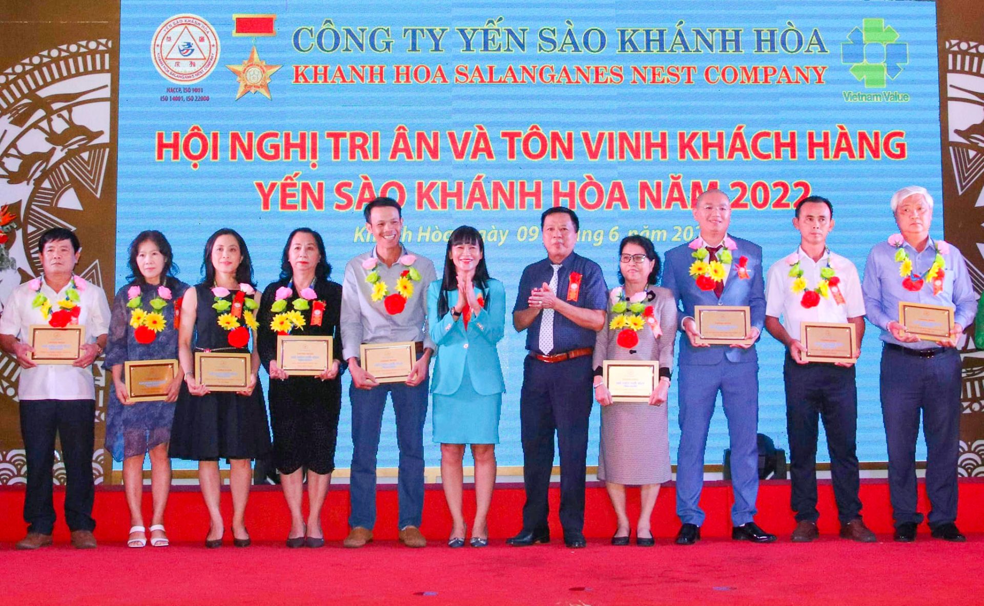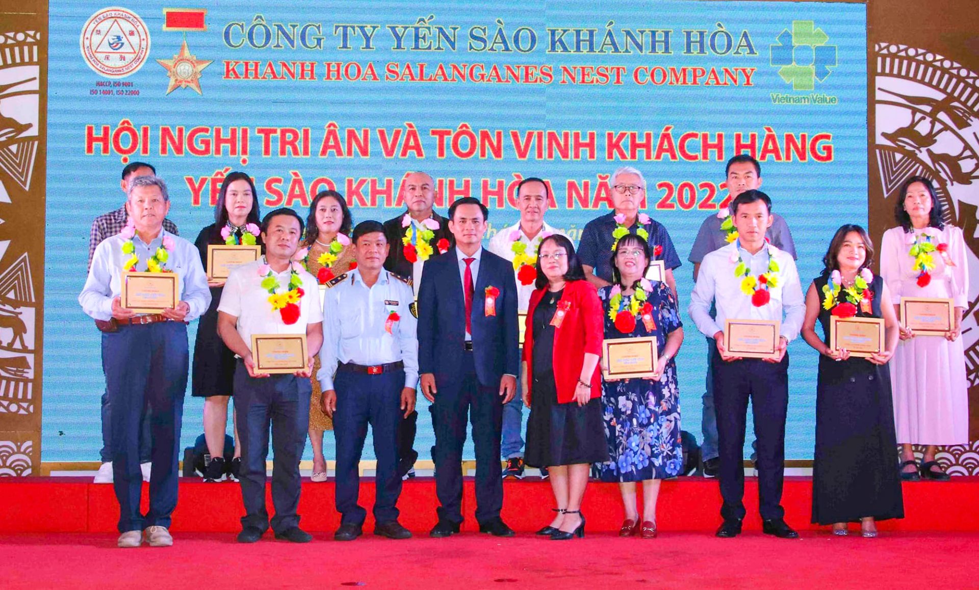 Tại hội nghị, Công ty Yến sào Khánh Hòa đã vinh danh, khen thưởng 128 đại lý, nhà phân phối tiêu biểu, có thành tích xuất sắc. Trong đó có 20 cửa hàng liên kết tiêu biểu xuất sắc, 35 nhà phân phối nỗ lực tiêu biểu, 30 nhà phân phối bạc, 25 nhà phân phối vàng, 18 nhà phân phối kim cương.
