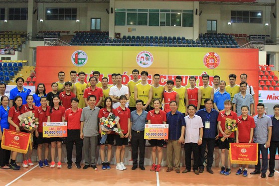Đội nam Tràng An Ninh Bình và nữ Ninh Bình Doveco nhận giải nhì và ba tại Cúp Hùng Vương. Ảnh: PHÚC NGUYỄN