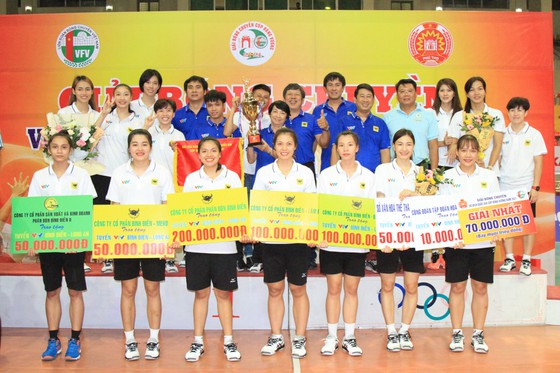 Các cô gái VTV Bình Điền Long An nhận Cúp vô địch.