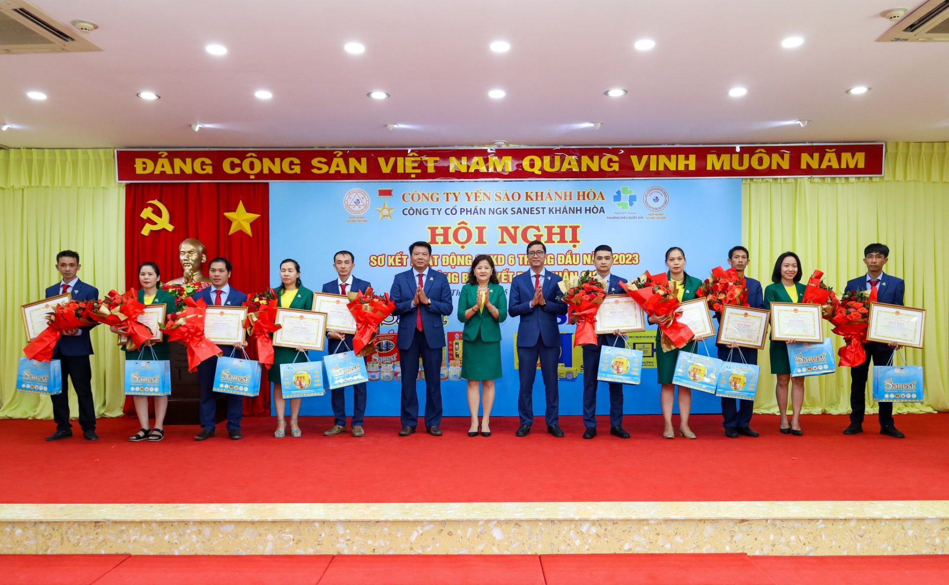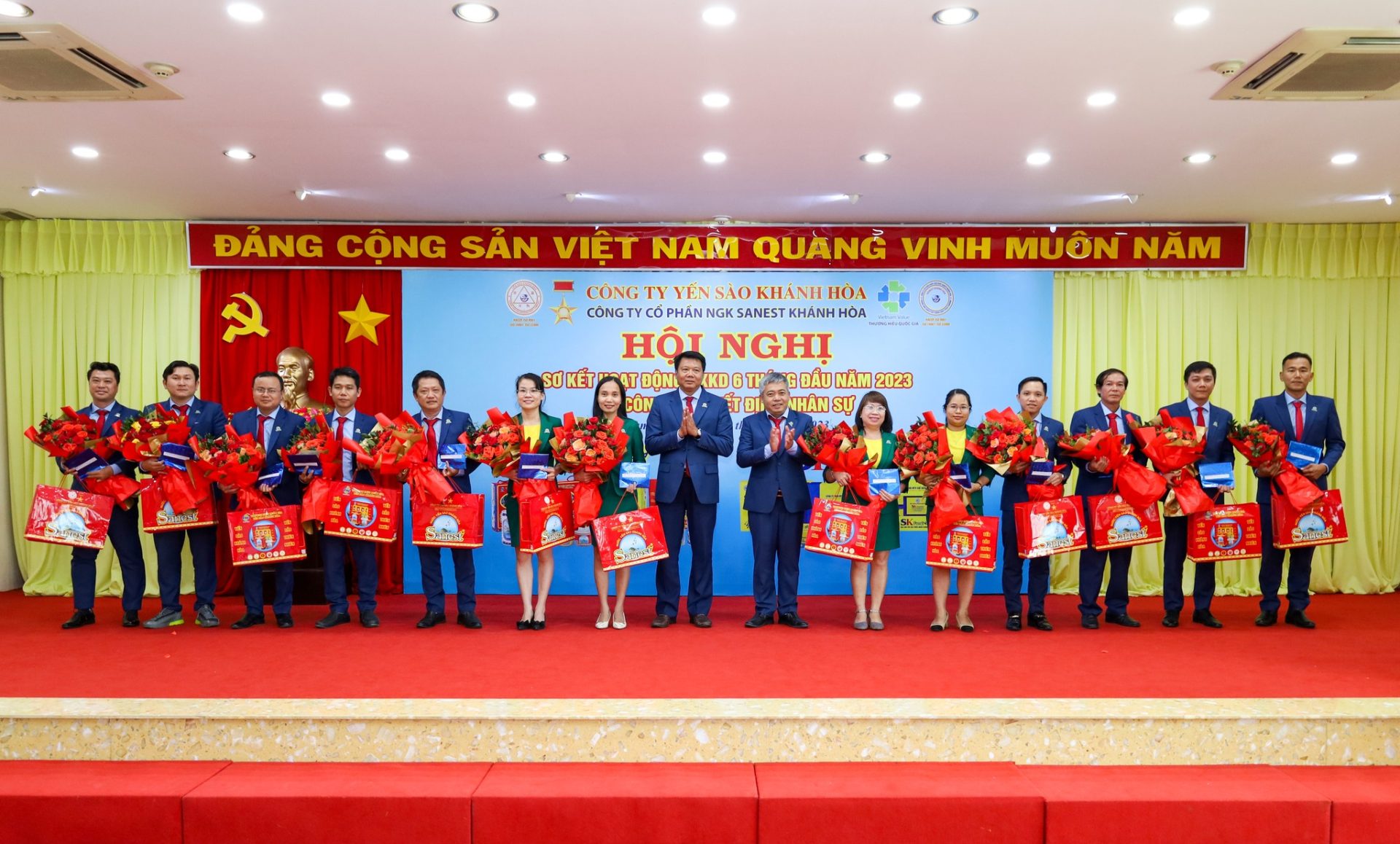 Trong bối cảnh tình hình kinh doanh 6 tháng đầu năm 2023 gặp nhiều khó khăn, nhưng dưới sự quan tâm, chỉ đạo sâu sát của Đảng ủy, HĐTV, Ban Tổng Giám đốc Công ty Yến sào Khánh Hòa, sự quản lý điều hành của HĐQT, Ban Tổng Giám đốc, sự đoàn kết, nỗ lực cố gắng của toàn thể CB CNLĐ cùng với sự đồng hành, sẻ chia của Quý Nhà phân phối, Đại lý, Các Chi nhánh và Quý Khách hàng đã góp phần cùng Sanest Khánh Hòa hoàn thành xuất sắc các chỉ tiêu SXKD 6 tháng đầu năm 2023: Doanh thu đạt 1.176 tỷ đồng, đạt 56% kế hoạch năm, tăng 14,1% so với cùng kỳ; Thu nhập bình quân của NLĐ đạt 19 triệu đồng/người/tháng, tăng 106,7% so với cùng kỳ; Lợi nhuận ước đạt hơn 70 tỷ đồng, đạt 55% kế hoạch năm, tăng 122% so với cùng kỳ; Nộp ngân sách 62 tỷ đồng, đạt 81,64% kế hoạch năm, tăng 111% so với cùng kỳ.