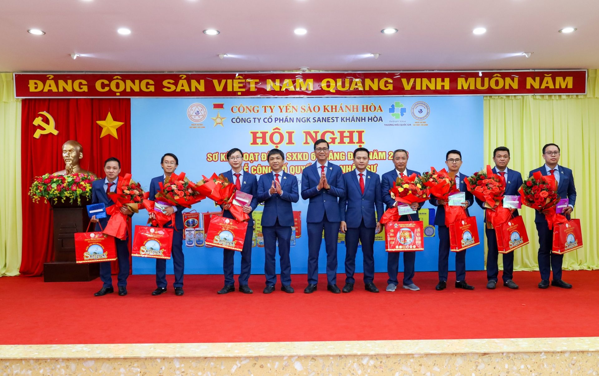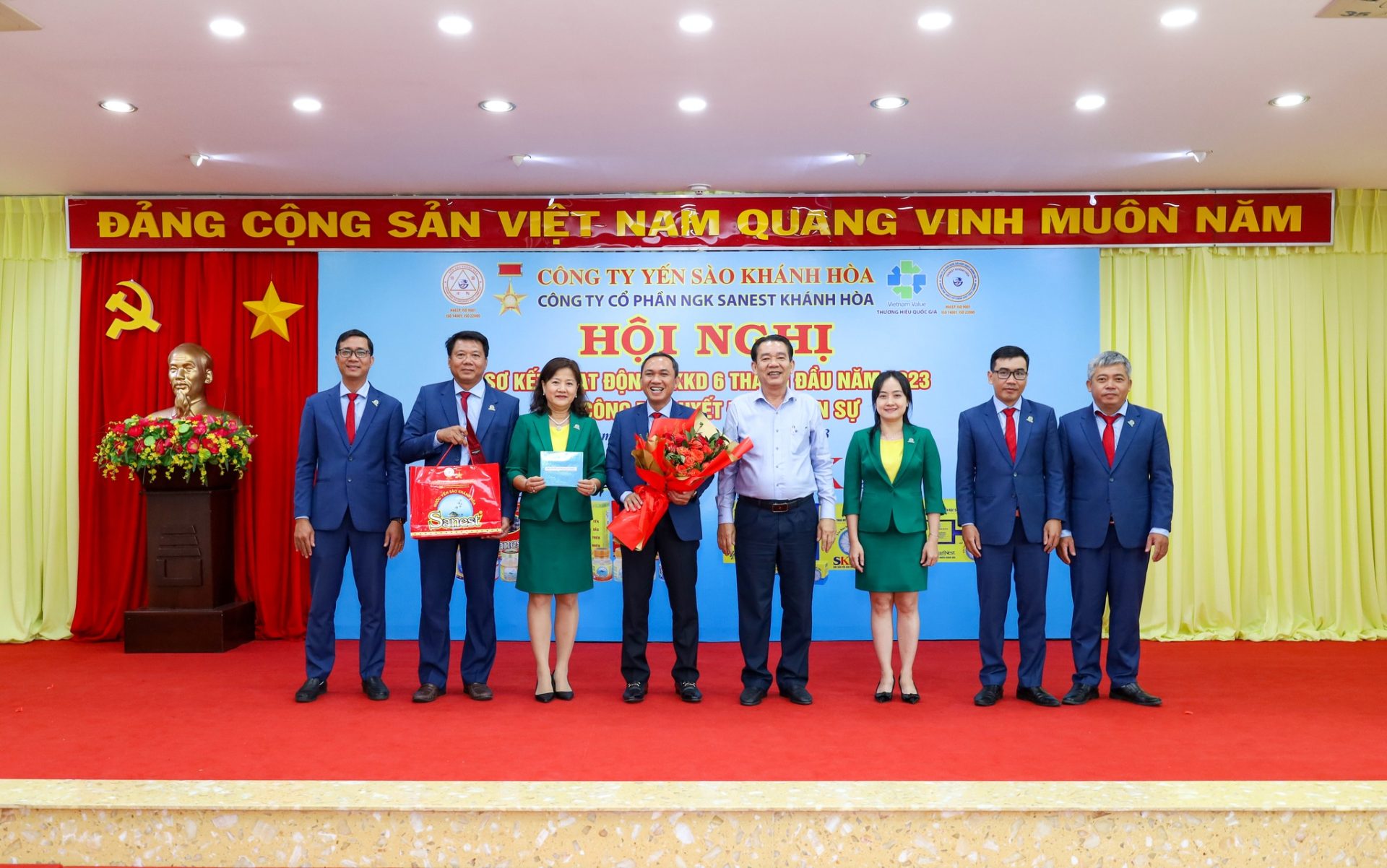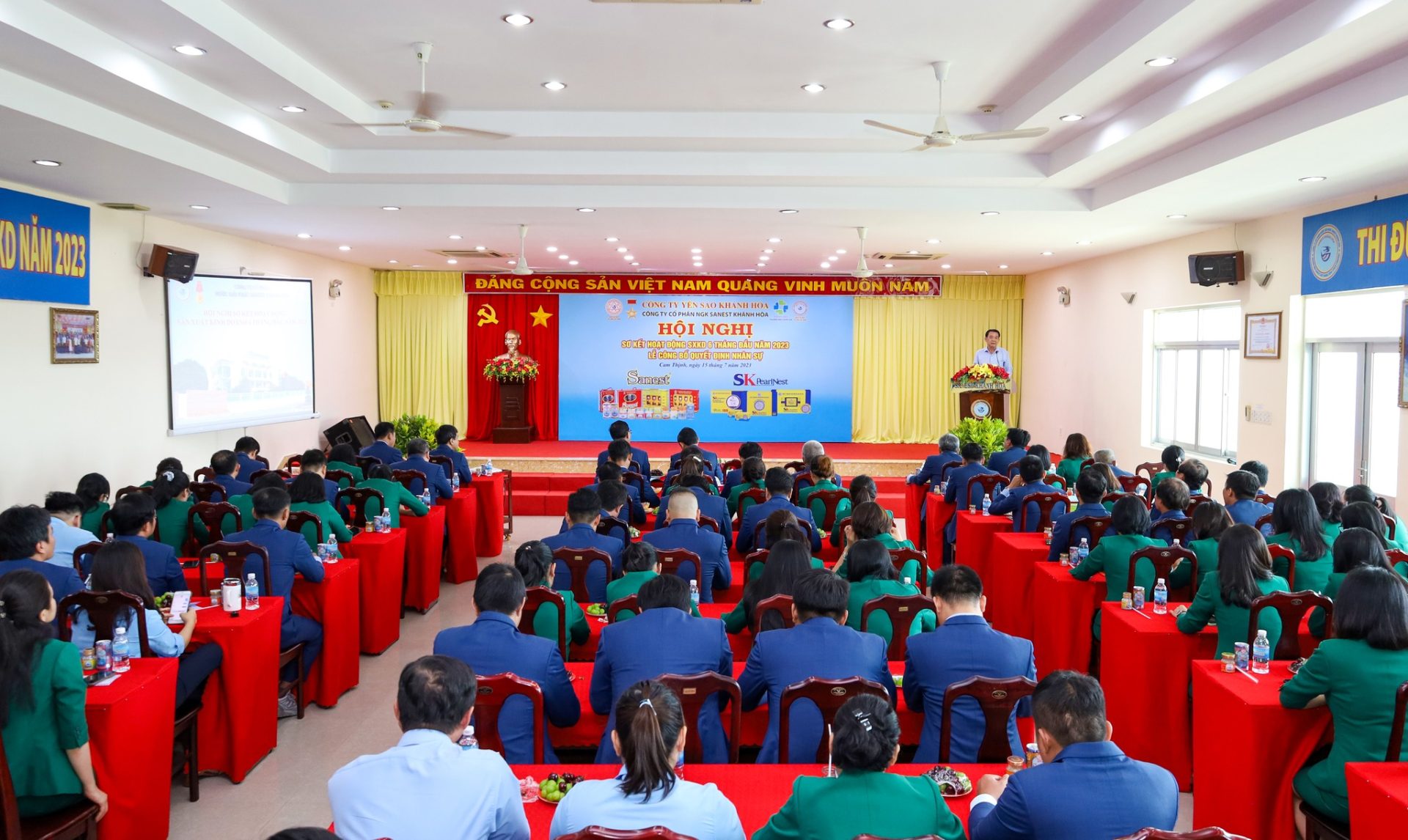Hội nghị vinh dự được đón tiếp đồng chí Nguyễn Anh Hùng – Bí thư Đảng ủy, Chủ tịch HĐTV Công ty Yến sào Khánh Hoà; đồng chí Lê Đức Tiến – Phó Tổng Giám đốc Công ty Yến sào Khánh Hòa, Chủ tịch HĐQT cùng các đồng chí trong HĐQT, Ban Tổng Giám đốc, Ban Kiểm soát, quản lý các phòng ban/ĐVTT và hơn 300 CB CNLĐ Công ty Sanest Khánh Hòa.