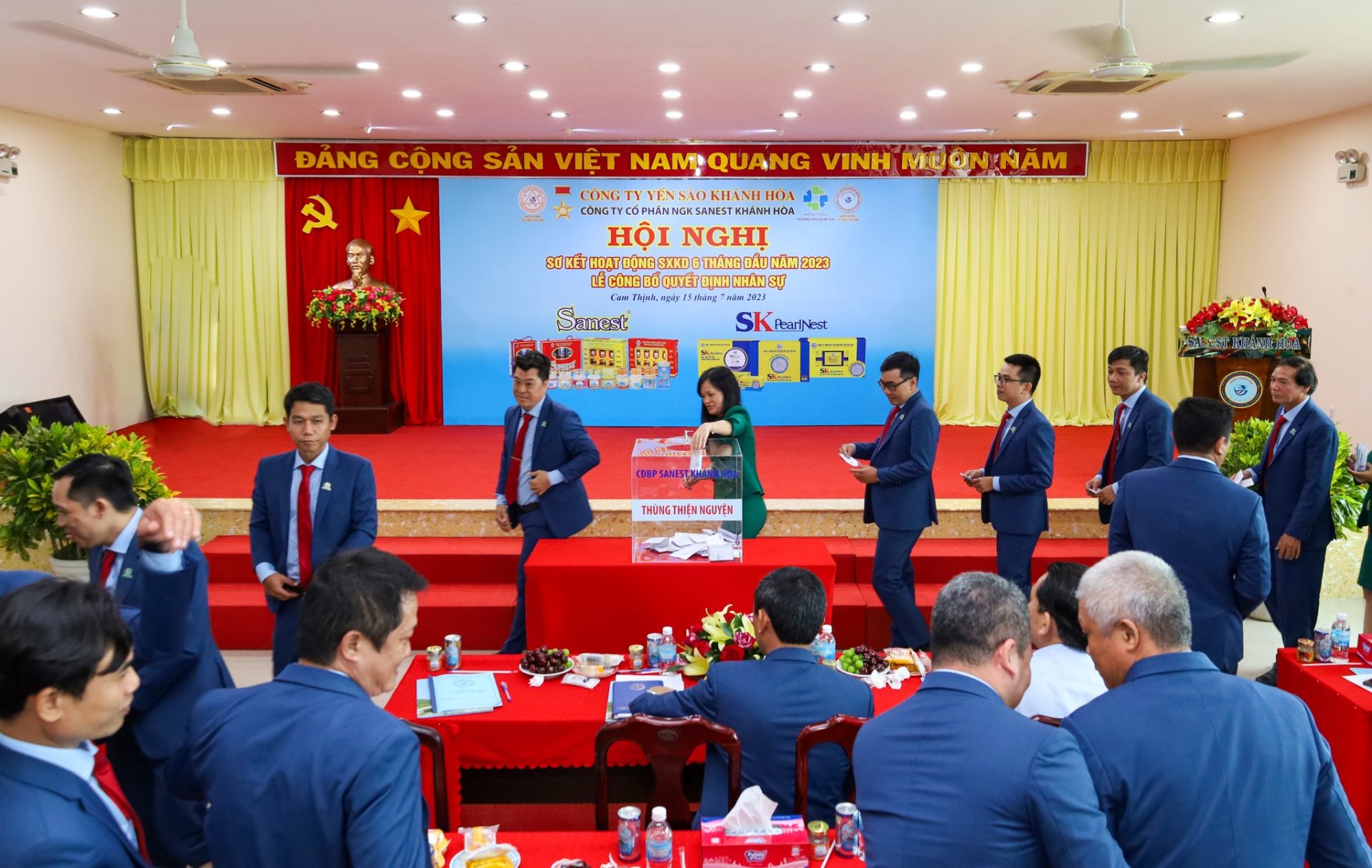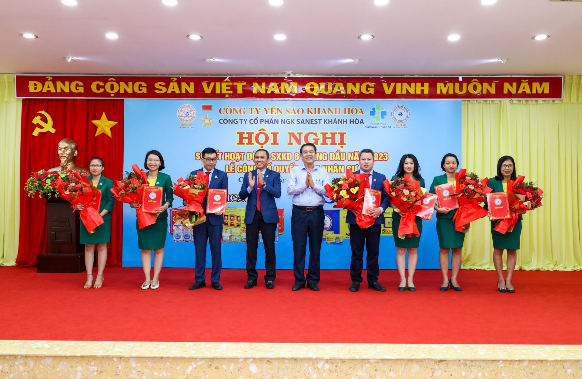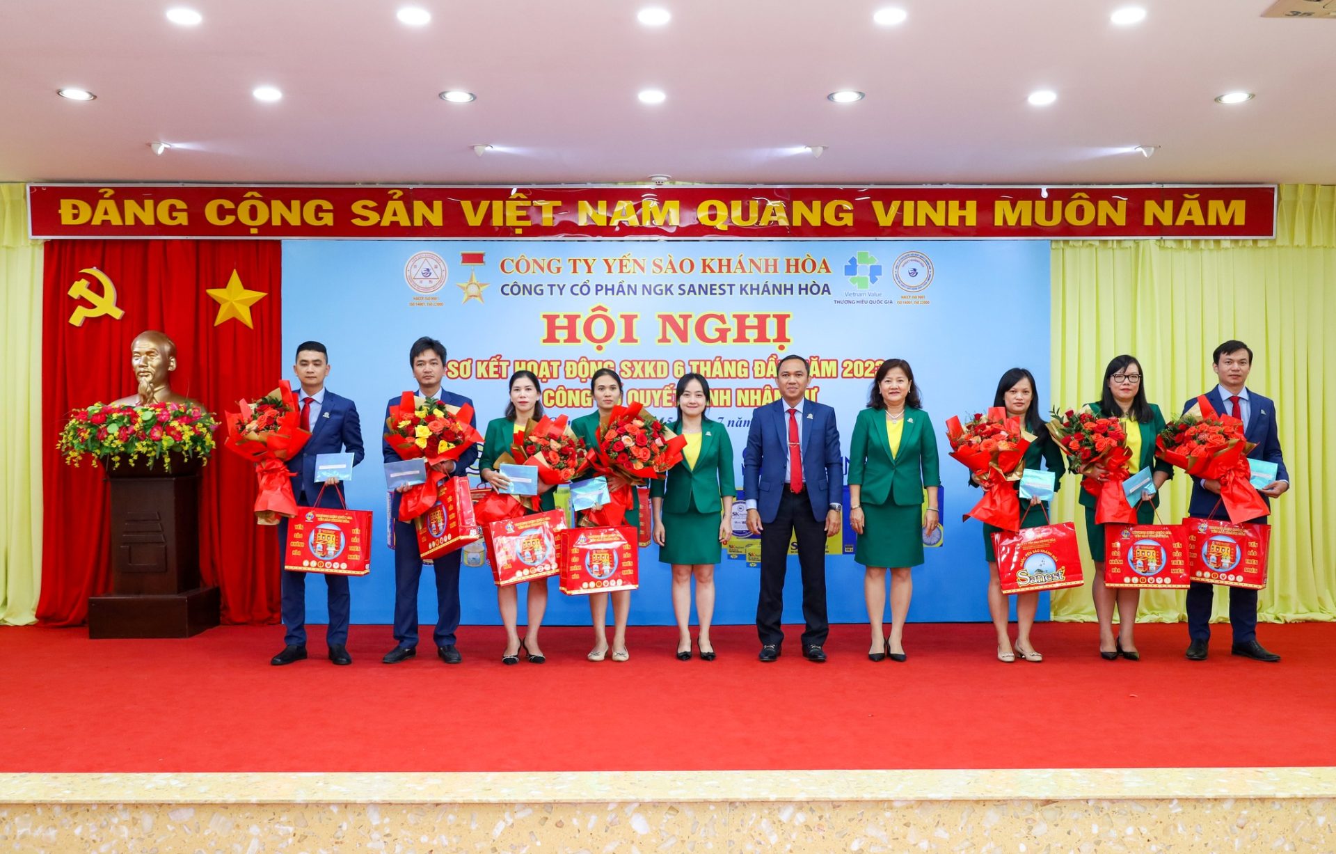 Hội nghị vinh dự được đón tiếp đồng chí Nguyễn Anh Hùng – Bí thư Đảng ủy, Chủ tịch HĐTV Công ty Yến sào Khánh Hoà; đồng chí Lê Đức Tiến – Phó Tổng Giám đốc Công ty Yến sào Khánh Hòa, Chủ tịch HĐQT cùng các đồng chí trong HĐQT, Ban Tổng Giám đốc, Ban Kiểm soát, quản lý các phòng ban/ĐVTT và hơn 300 CB CNLĐ Công ty Sanest Khánh Hòa.