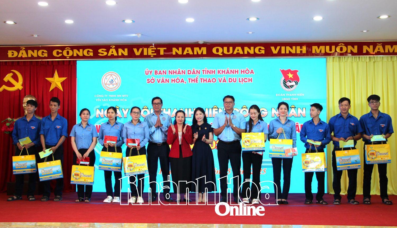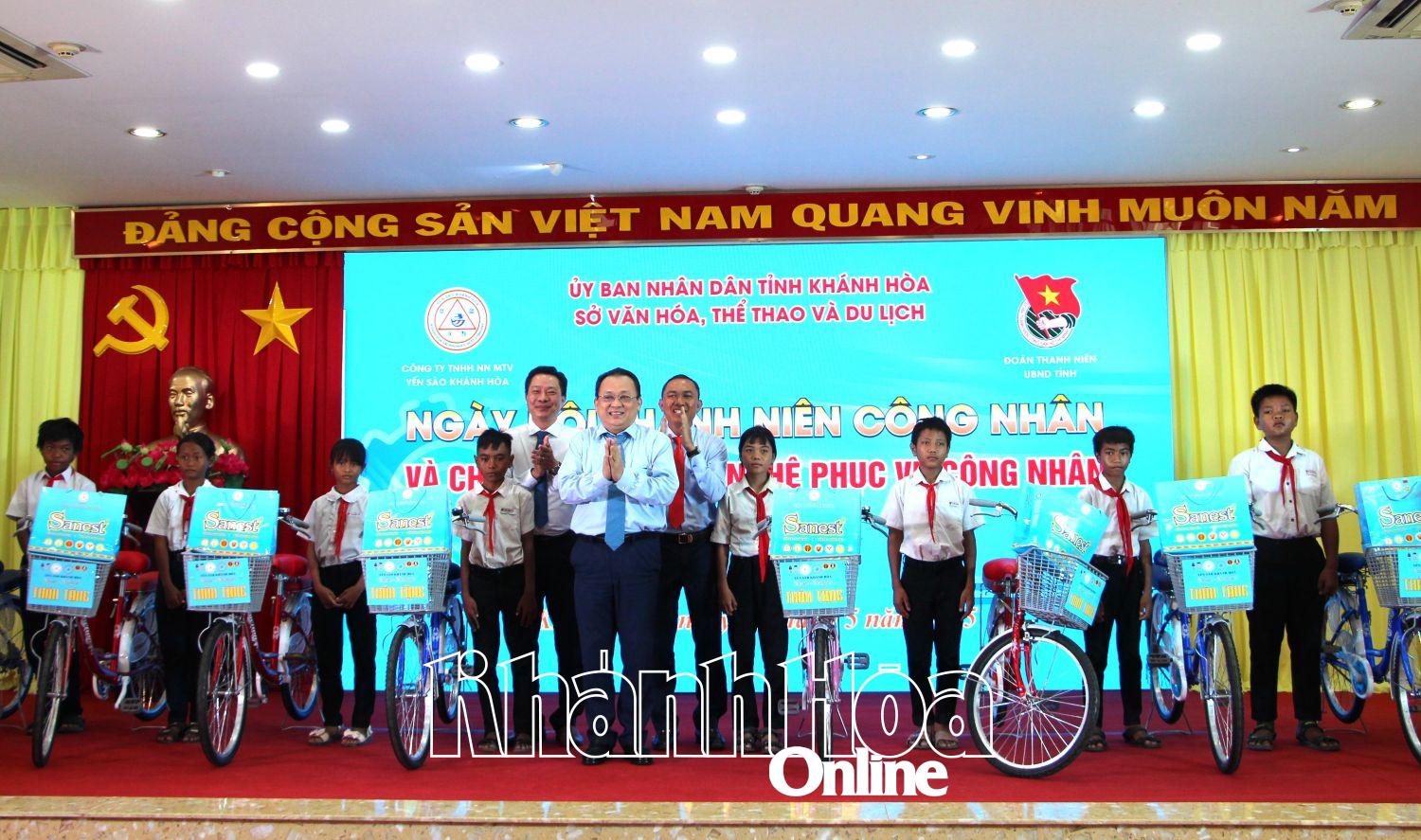 Nhân dịp này, Công ty TNHH Nhà nước MTV Yến Sào Khánh Hòa và Công ty Cổ phần Nước giải khát Sanest Khánh Hòa trao tặng 10 chiếc xe đạp cho các em học sinh nghèo vượt khó trong học giỏi trên địa bàn xã Cam Thịnh Tây (TP. Cam Ranh); Công ty TNHH Nhà nước MTV Yến Sào Khánh Hòa biểu dương 30 đoàn viên thanh niên công nhân có thành tích lao động xuất sắc. Sau buổi lễ, gần 300 công nhân, người lao động tham gia chương trình văn nghệ do Sở Văn hóa, Thể thao và Du lịch tổ chức với thông điệp ngợi ca Đảng, Bác Hồ, quê hương, đất nước và vai trò, sự đóng góp của lực lượng công nhân, người lao động…