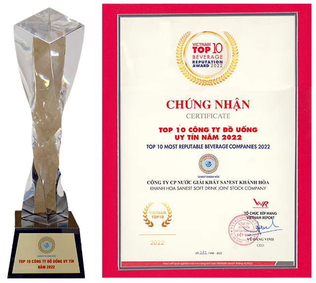 Tại buổi Lễ, Sanest Khánh Hòa đã được vinh dự xướng tên lên sân khấu. Đây là lần thứ 04 liên tiếp, từ năm 2019 – 2022, Sanest Khánh Hòa nằm trong Bảng xếp hạng Top 10 Công ty đồ uống uy tín – nhóm ngành đồ uống không cồn.