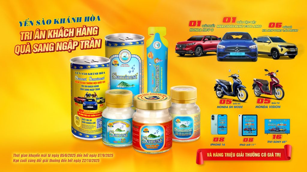 Từ ngày 5/6 đến 7/9/2025, Công ty Yến sào Khánh Hòa chính thức triển khai chương trình khuyến mãi đặc biệt mang tên “Yến sào Khánh Hòa Sanest Sanvinest – Niềm tự hào thương hiệu quốc gia”, với tổng giá trị giải thưởng lên đến 100 tỷ đồng. Đây là chương trình đặc biệt, thay […]