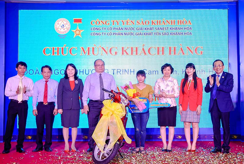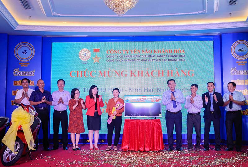 Ngày 21-1, tại TP. Nha Trang, Công ty Cổ phần Nước giải khát Sanest Khánh Hòa và Công ty Cổ phần Nước giải khát Yến sào Khánh Hòa tổ chức lễ trao giải thưởng đợt cuối Chương trình khuyến mãi “Sanest Khánh Hòa – Niềm tự hào thương hiệu Việt Nam”. Trong đợt trao giải này, Công ty đã trao giải đặc biệt xe ô tô Fortuner cho khách hàng tại TP. Nha Trang. Ngoài ra, có 22 khách hàng đến từ Ninh Thuận, Bình Thuận, Phú Yên và Khánh Hòa trúng thưởng 4 xe Honda Vison và 18 tivi LCD Sony.