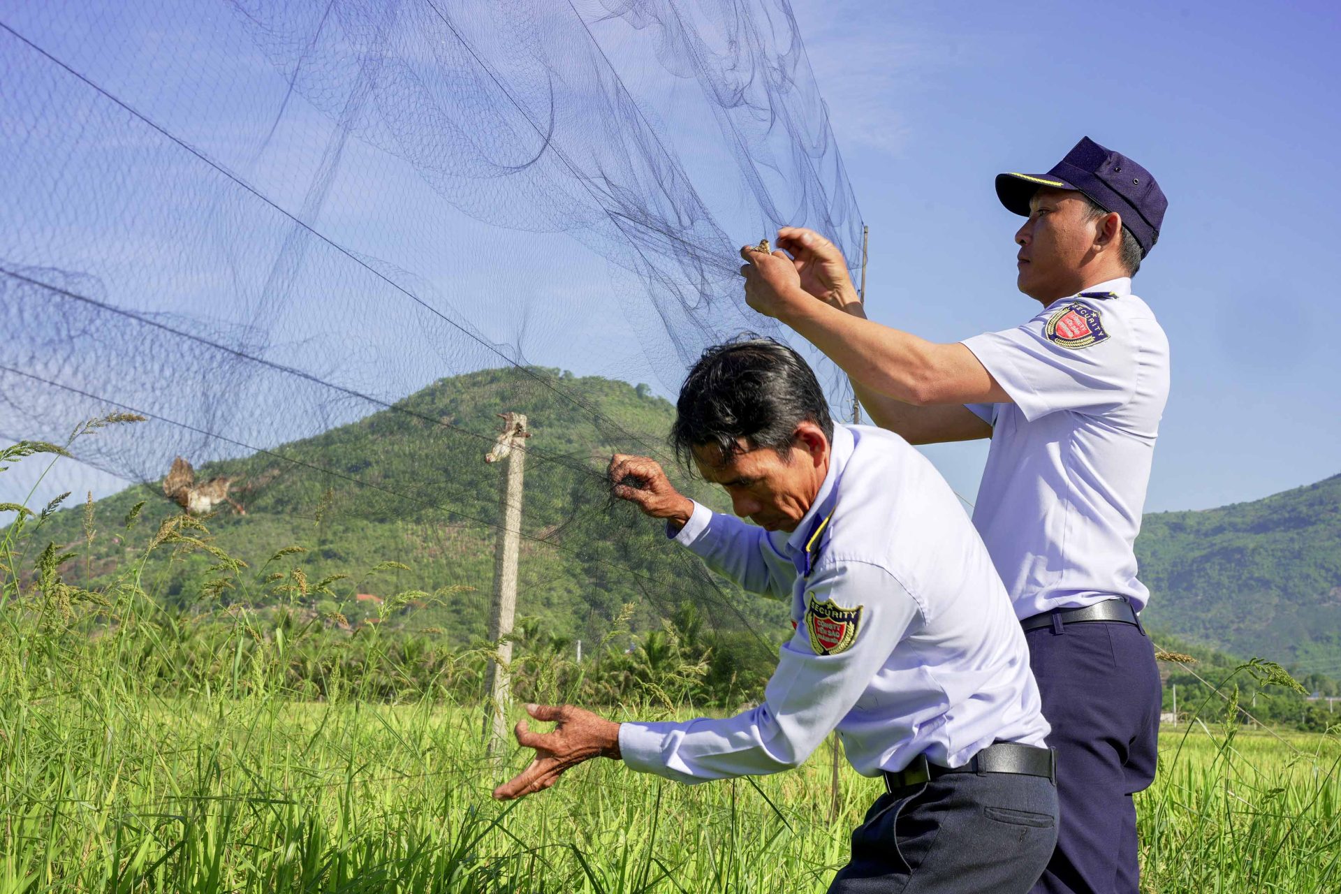 Đội chống săn bắt chim yến giải cứu các con chim yến bị mắc lưới tàng hình
