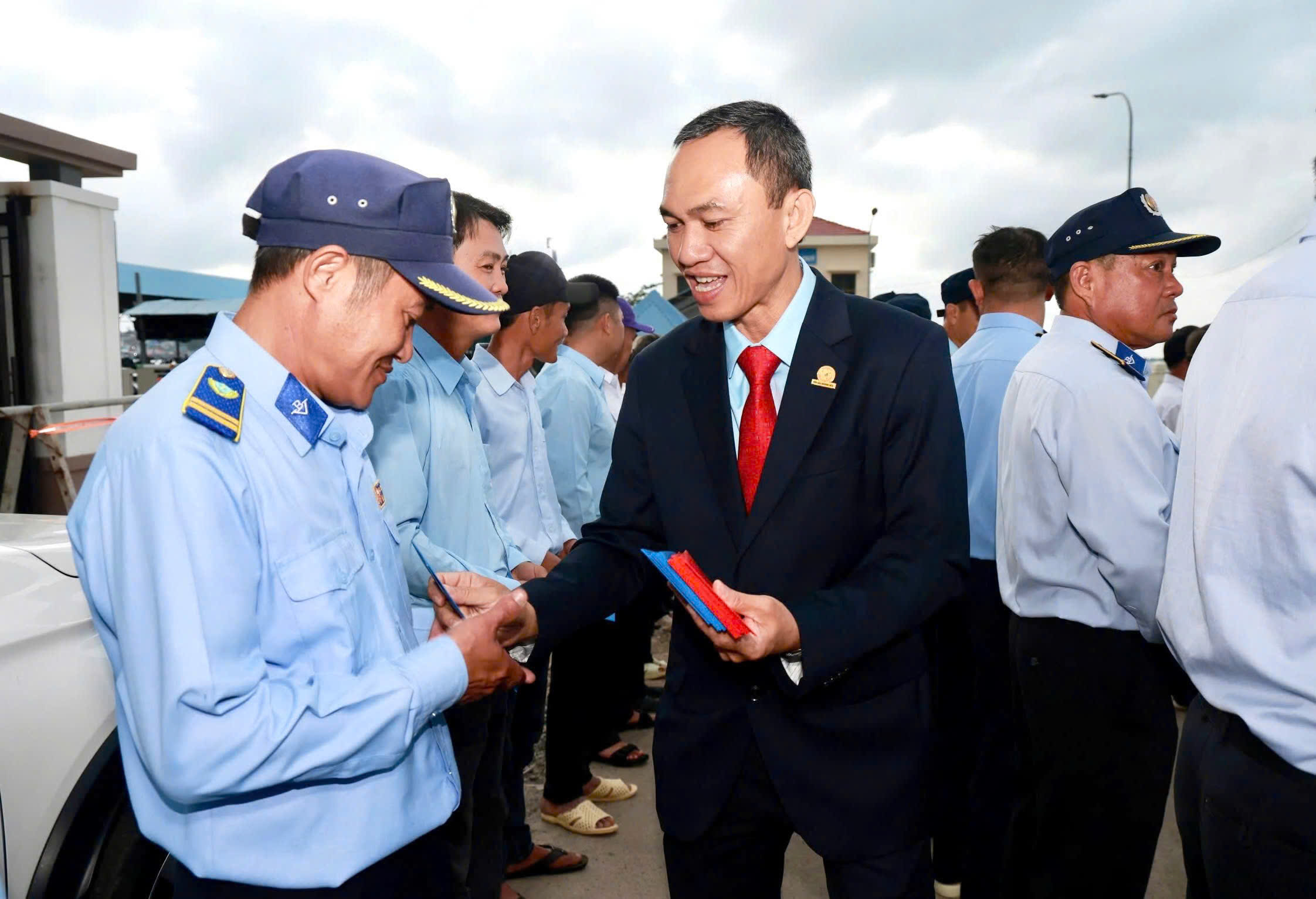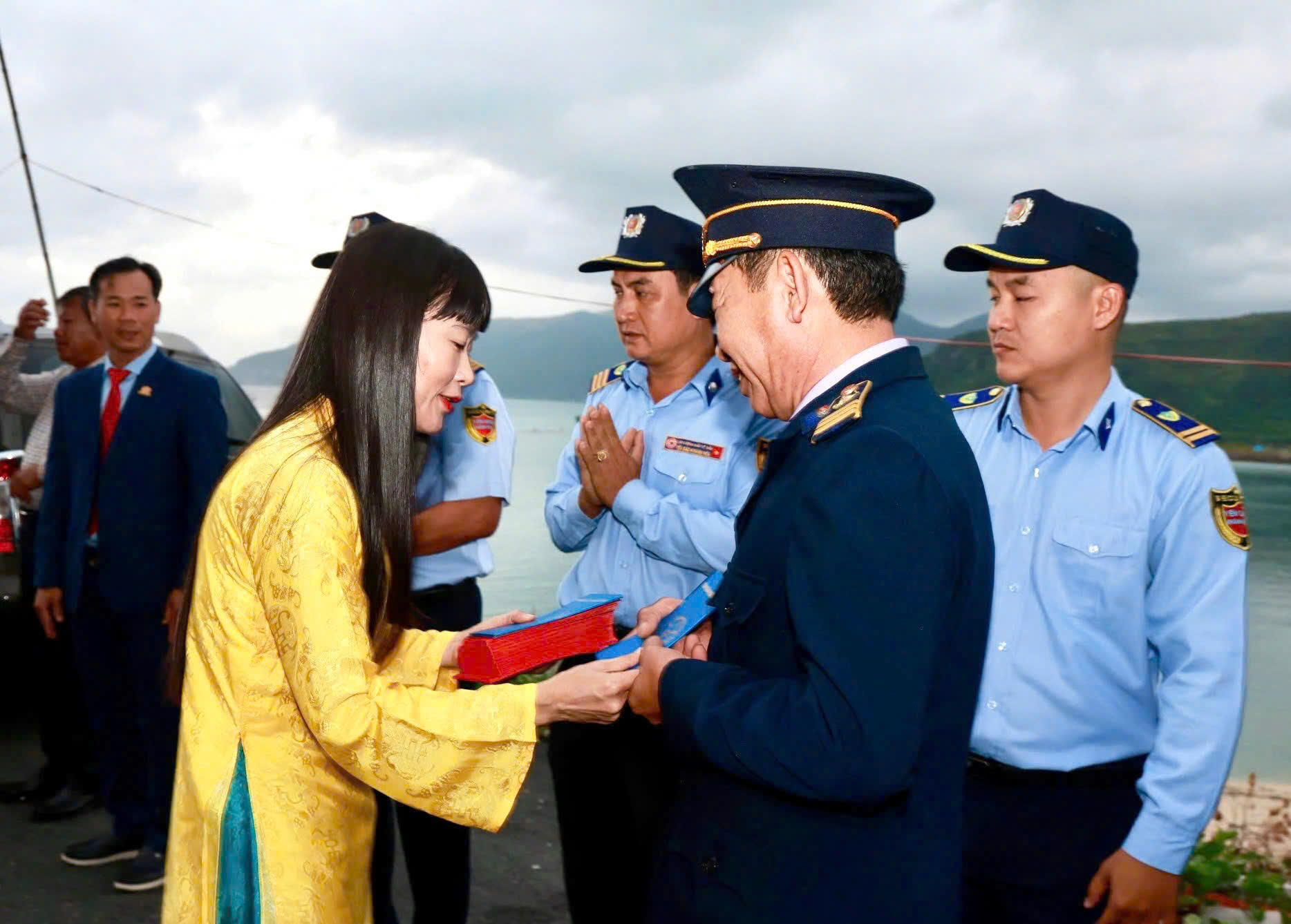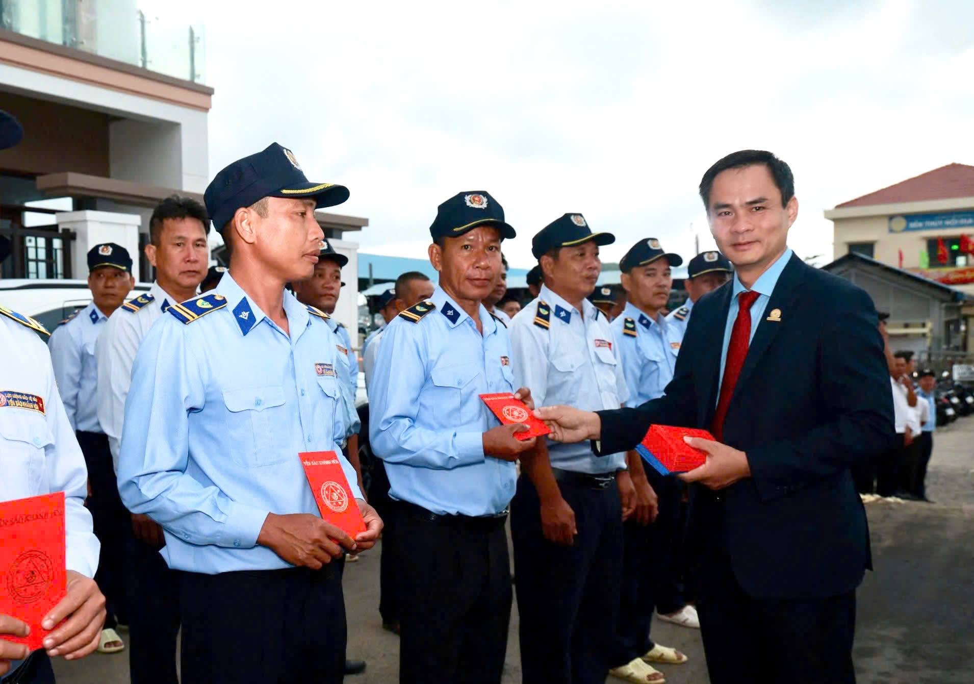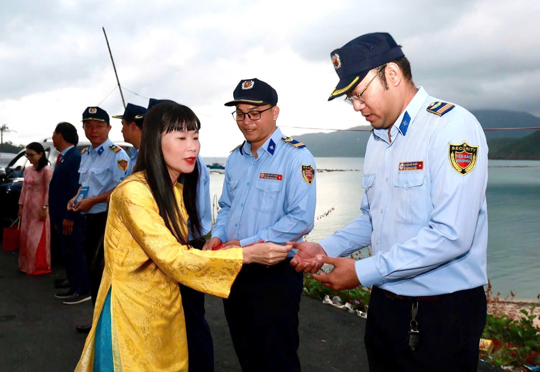 🎤Phát biểu tại lễ ra quân, Đ/c Trịnh Thị Hồng Vân – Chủ tịch HĐTV Công ty đã gửi lời chúc mừng và lì xì đầu năm mới đến toàn thể cán bộ, chiến sĩ lực lượng bảo vệ; đồng thời biểu dương tinh thần trách nhiệm, sự kiên trì bám đảo, vượt qua nhiều khó khăn, thử thách để hoàn thành tốt nhiệm vụ trong thời gian qua.
