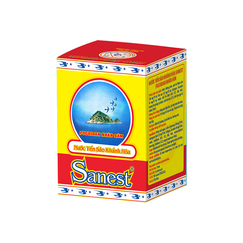 Nước Yến sào Khánh Hòa Sanest Fucoidan Nhân sâm có hàm lượng Yến sào, là sản phẩm có giá trị bổ dưỡng, thích hợp cho mọi độ tuổi.