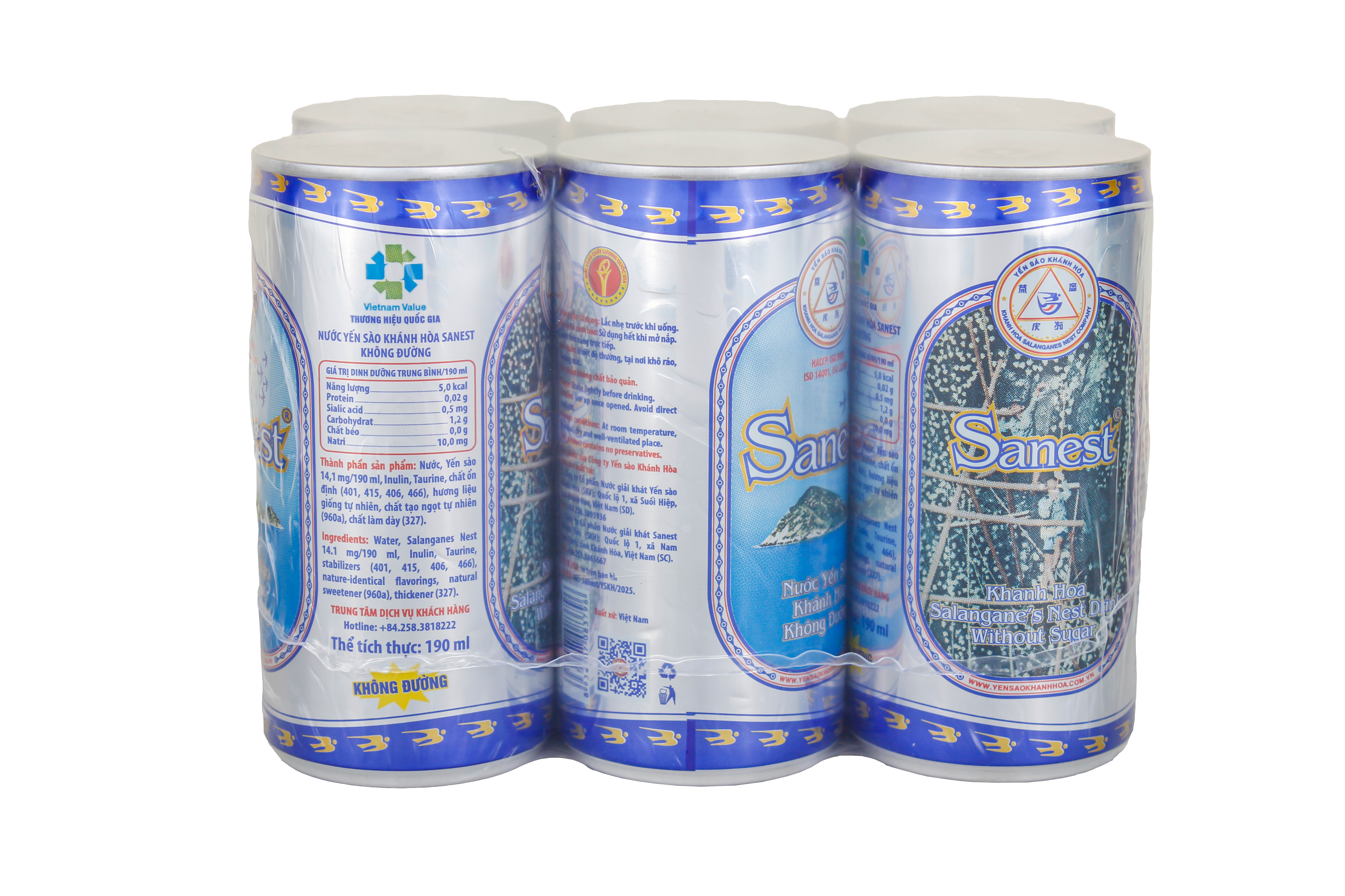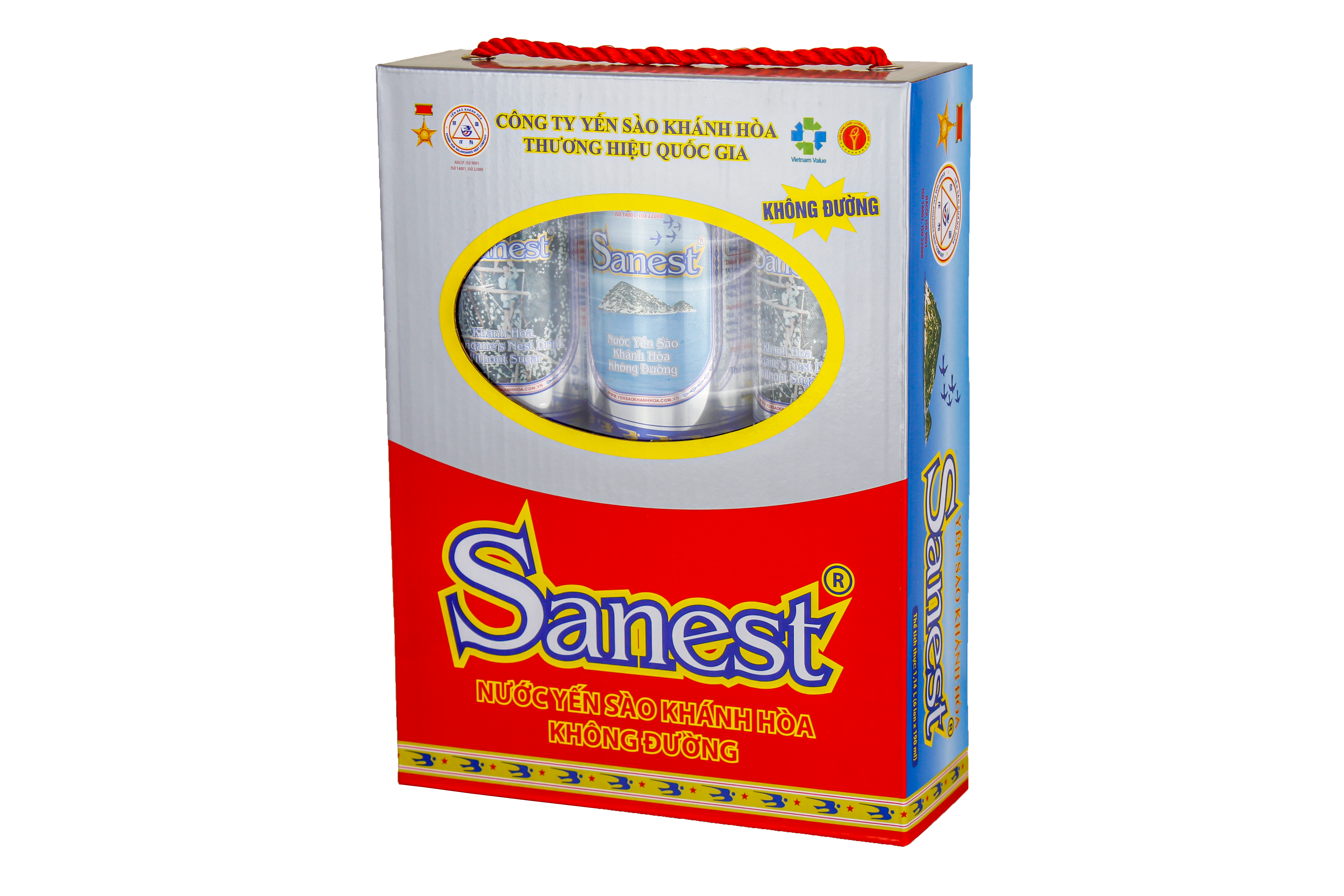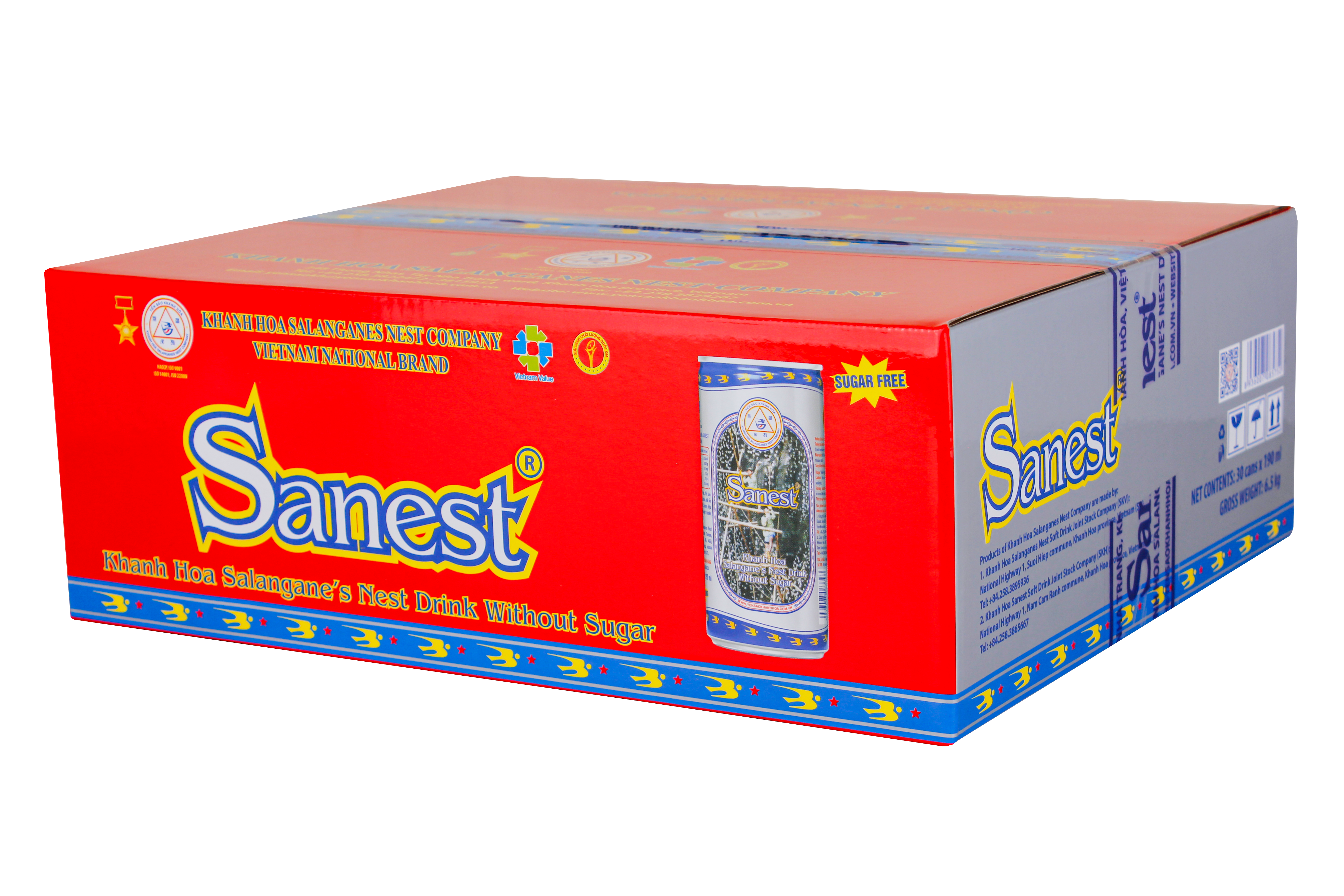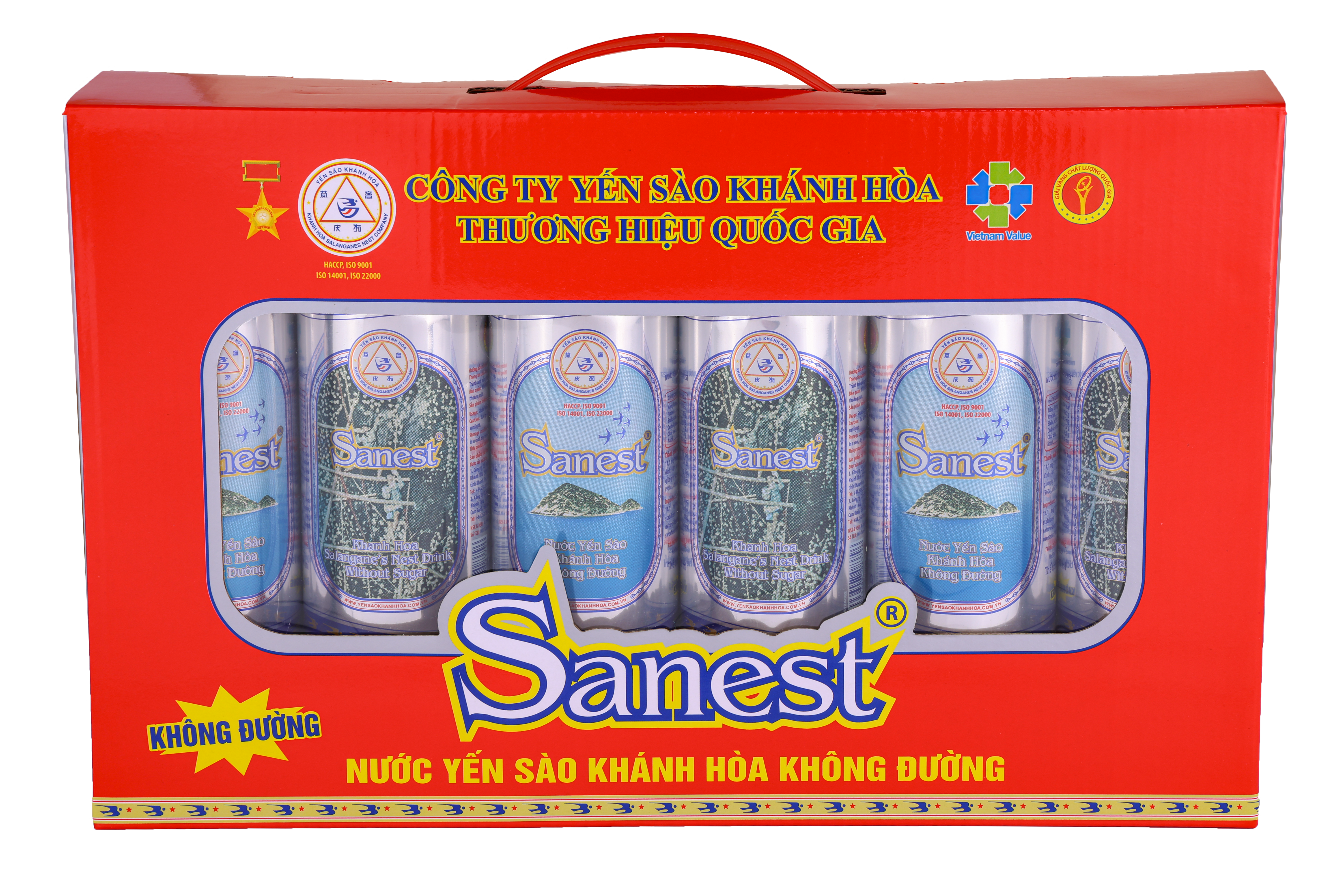 *    Nước Yến sào Khánh Hòa Sanest không đường hộp 6 lon 190 ml QT: 1,4 kg; D x R x C = 32,25 x 5,6 x 20 (cm).