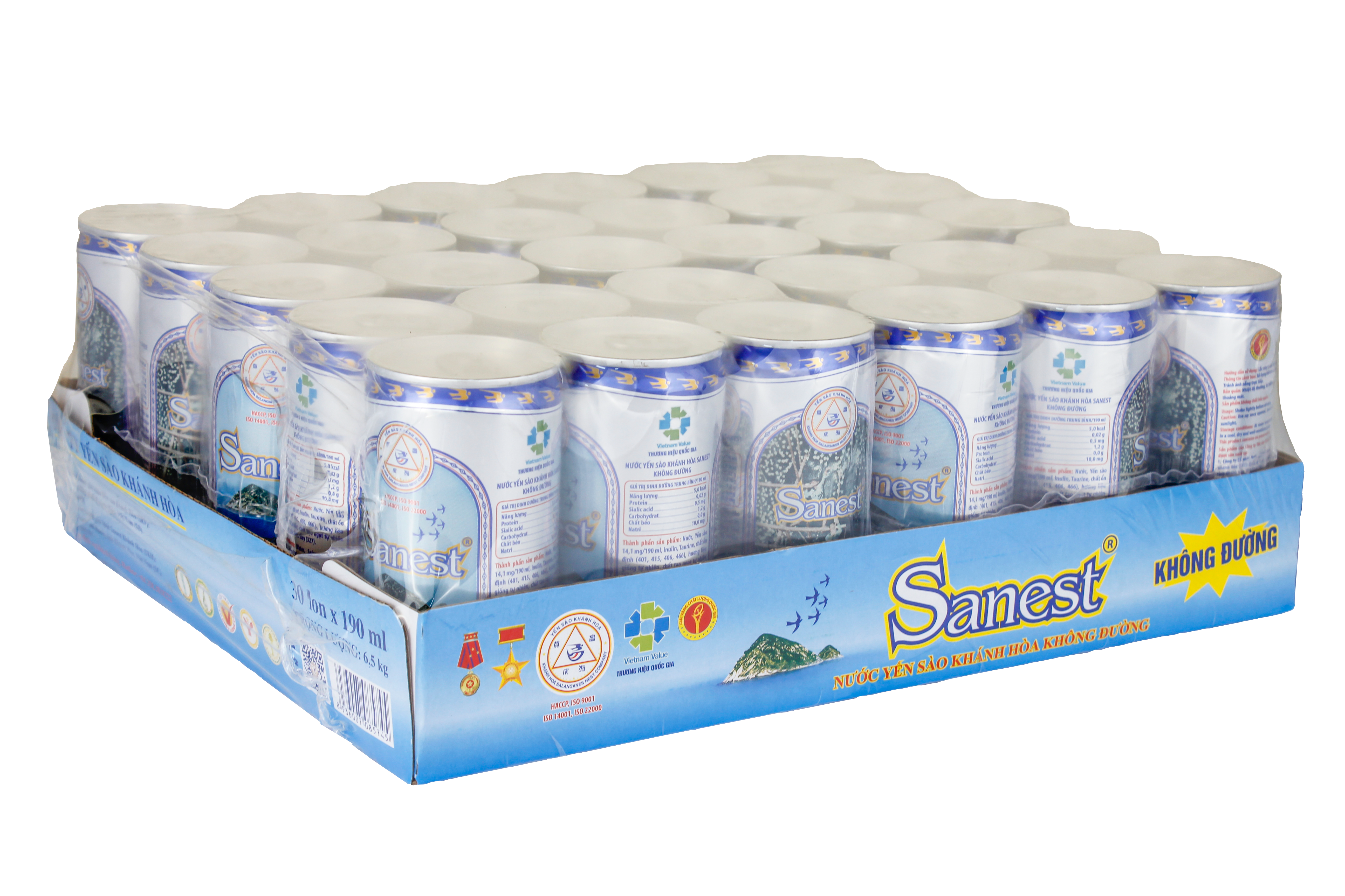 *    Nước Yến sào Khánh Hòa Sanest không đường khay 30 lon 190 ml: 6,5 kg; D x R x C = 32 x 27 x 5 (cm).
