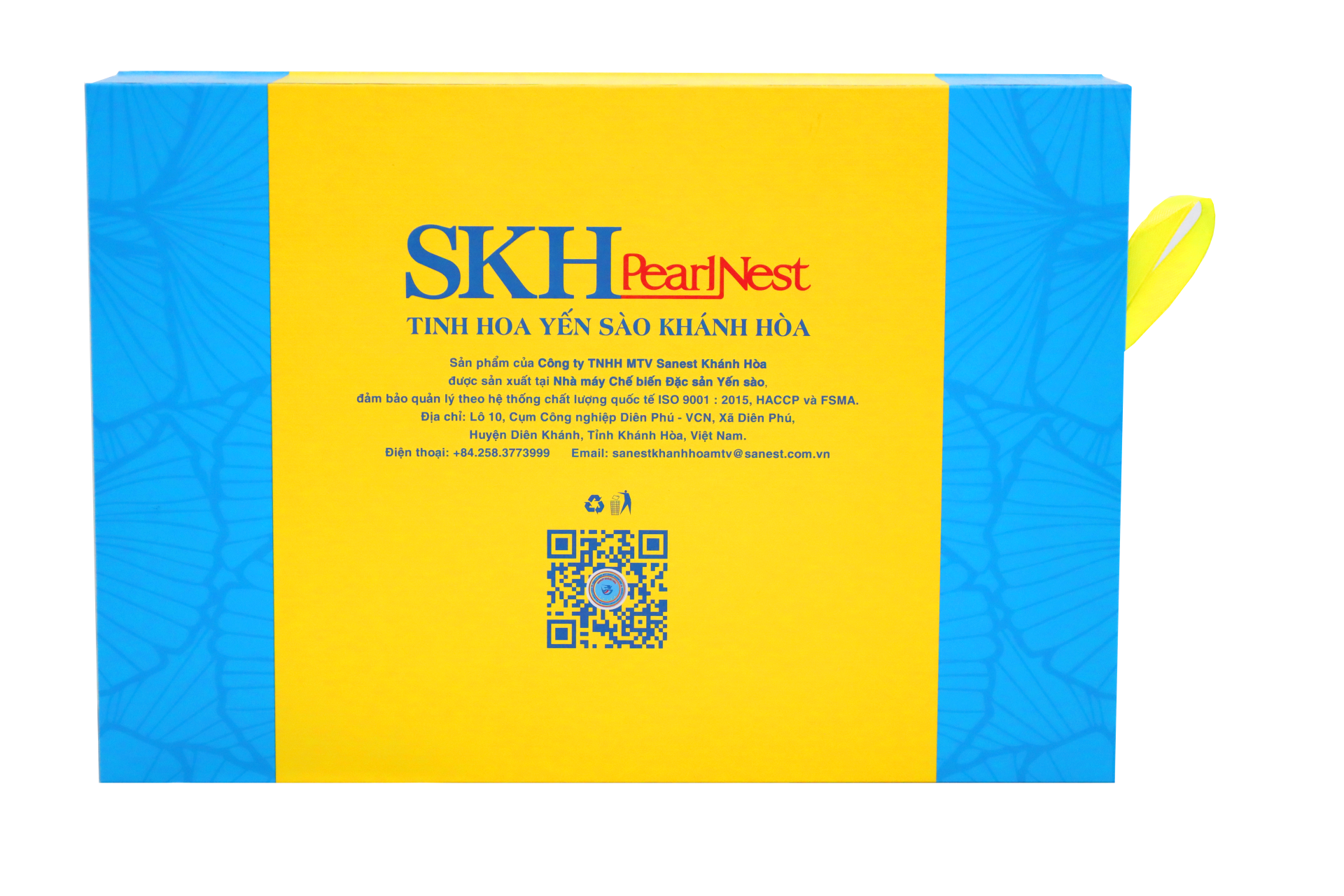 – SKHPearlNest Khánh Hòa Đặc sản Yến sào tinh chế đảm bảo quản lý theo hệ thống chất lượng quốc tế ISO 9001:2015, HACCP và FSMA.