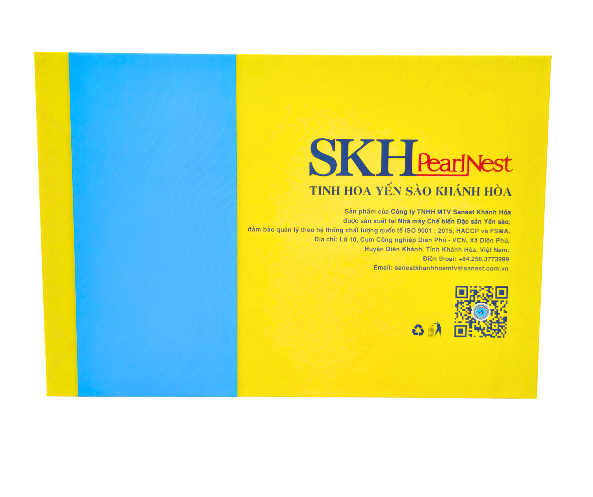 – SKHPearlNest Khánh Hòa Đặc sản Yến sào tinh chế đảm bảo quản lý theo hệ thống chất lượng quốc tế ISO 9001:2015, HACCP và FSMA.
