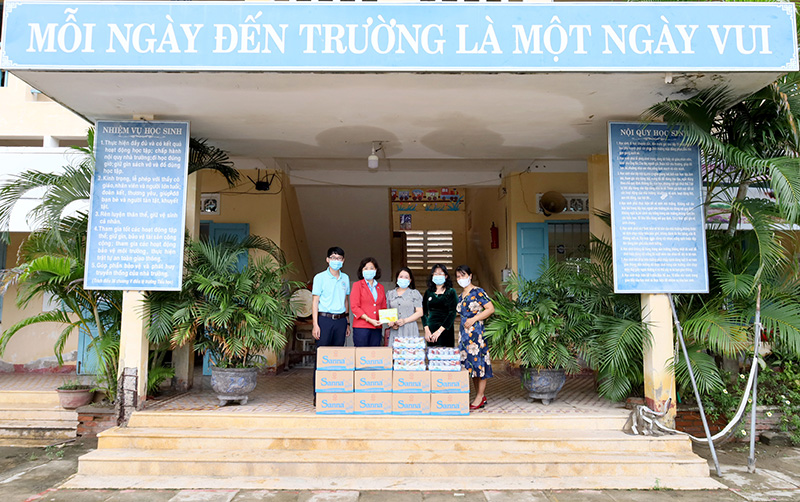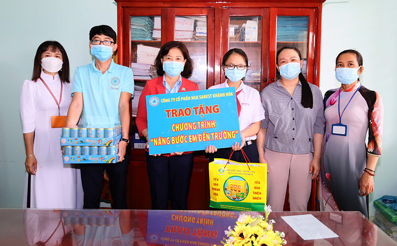 Đại diện Công ty trao tặng quà cho các Trường Tiểu học, Trung học cơ sở tại xã Cam Thịnh Đông, TP Cam Ranh, tỉnh Khánh Hòa