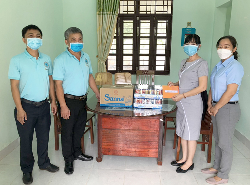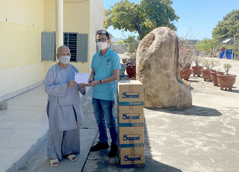 Đại diện Công ty trao tặng quà hỗ trợ cho cơ sở nuôi dưỡng chùa Đàm Hoa, huyện Tuy Phong, tỉnh Bình Thuận