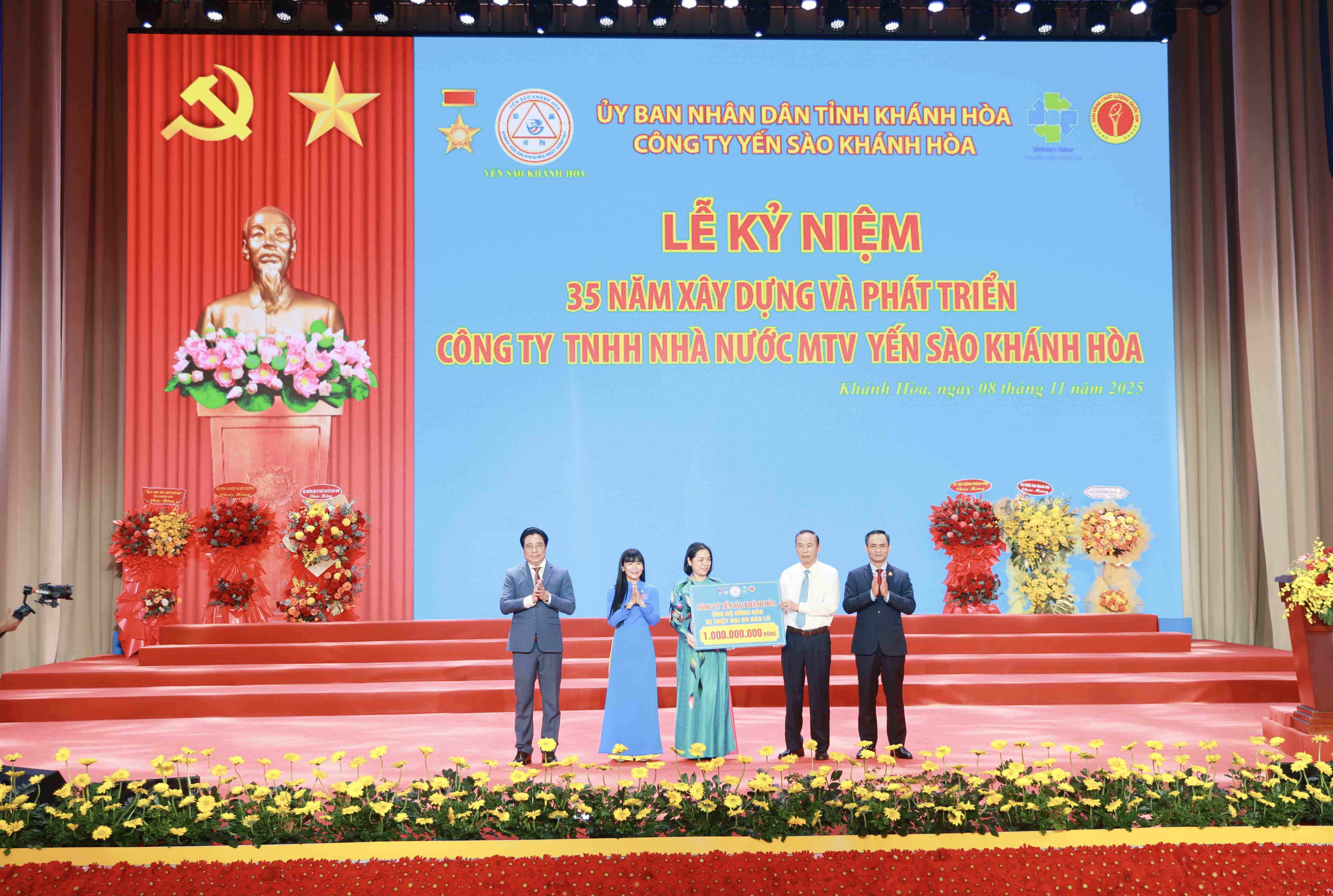 Nhân dịp này, Công ty Yến sào Khánh Hòa đã ủng hộ 1 tỷ đồng hỗ trợ đồng bào các tỉnh khắc phục hậu quả bão lũ và trao tặng 35 Nhà Đại đoàn kết cho các hộ gia đình có hoàn cảnh khó khăn trên địa bàn tỉnh; đồng thời, đóng góp 200 triệu đồng vào Quỹ khuyến học, khuyến tài tỉnh.