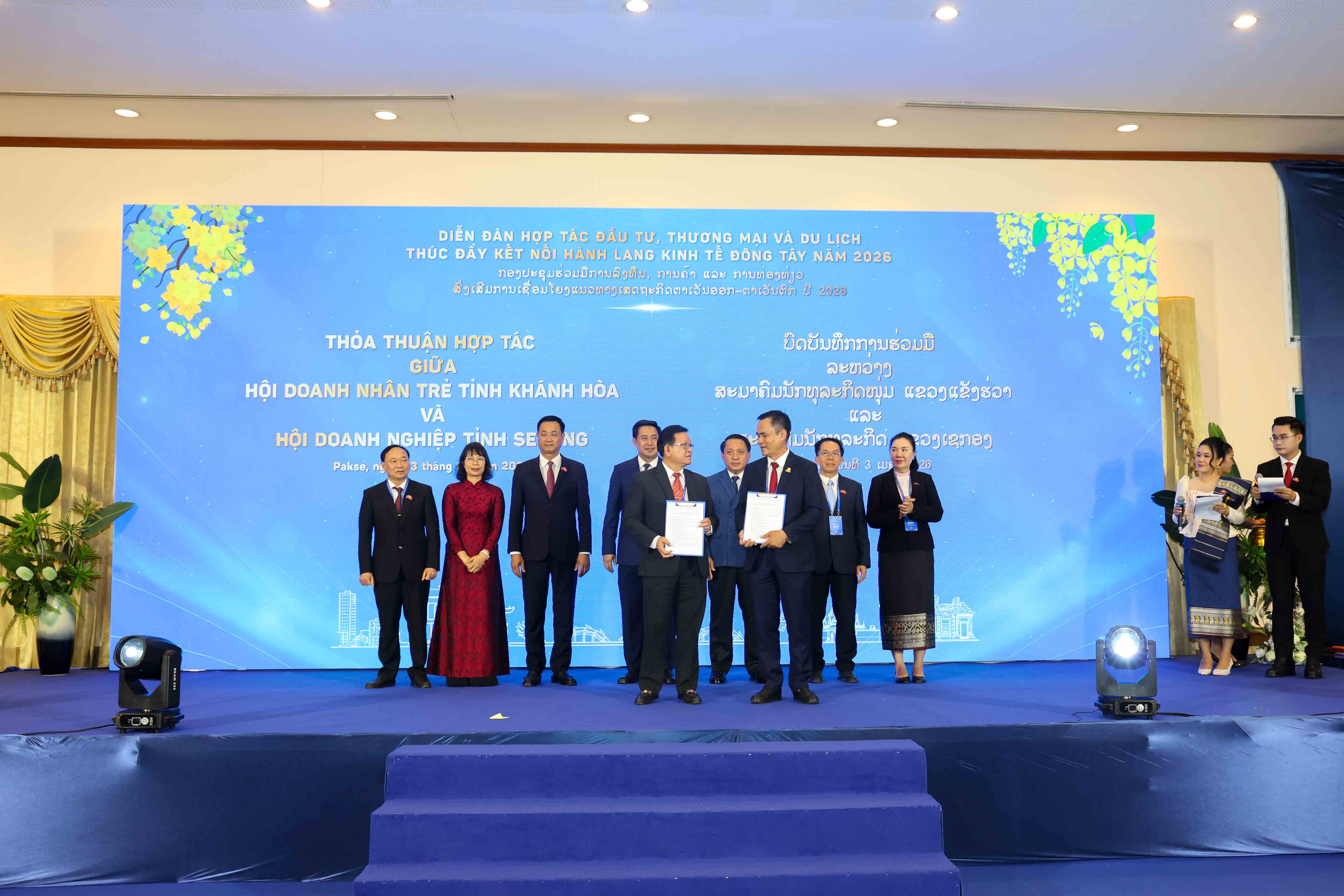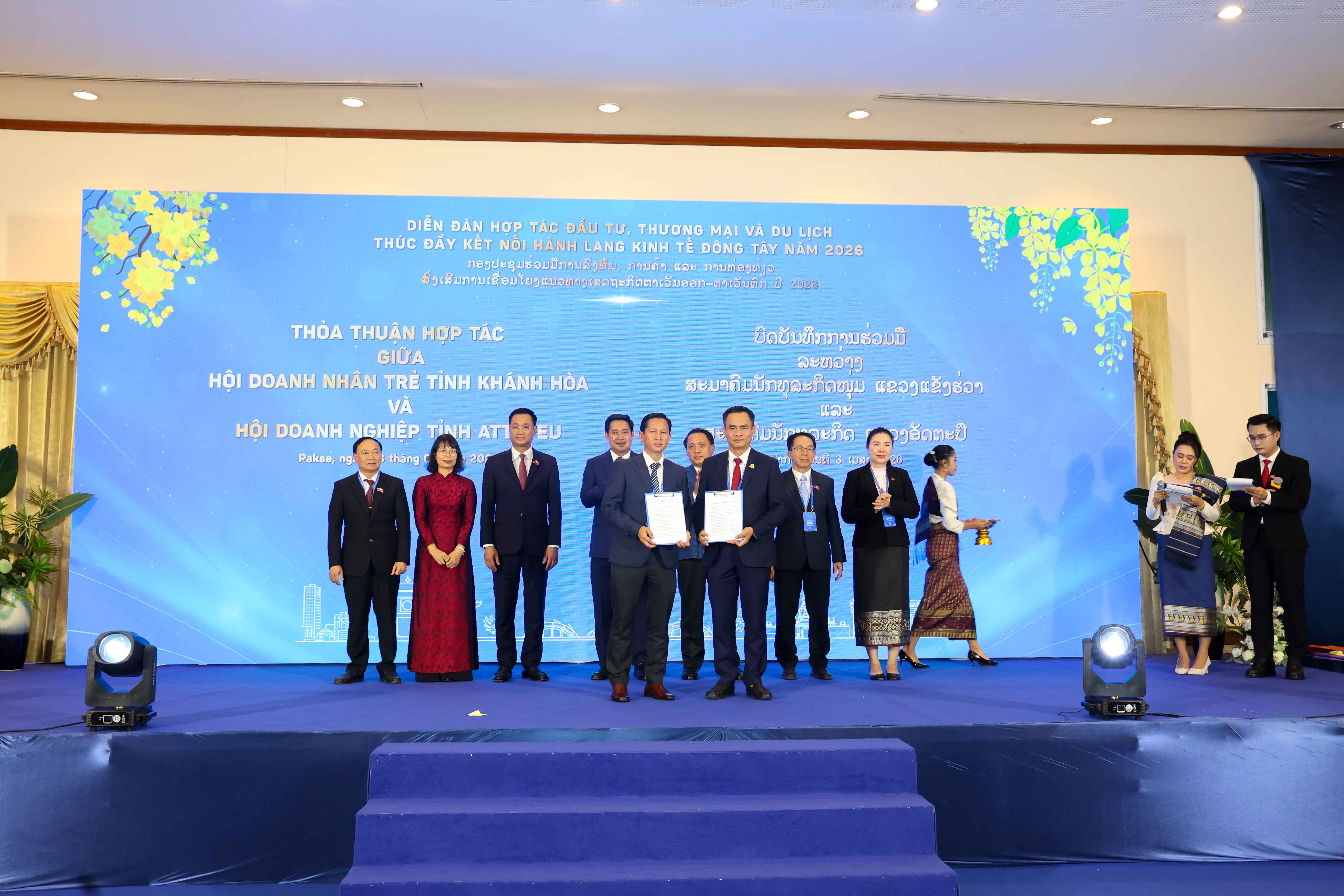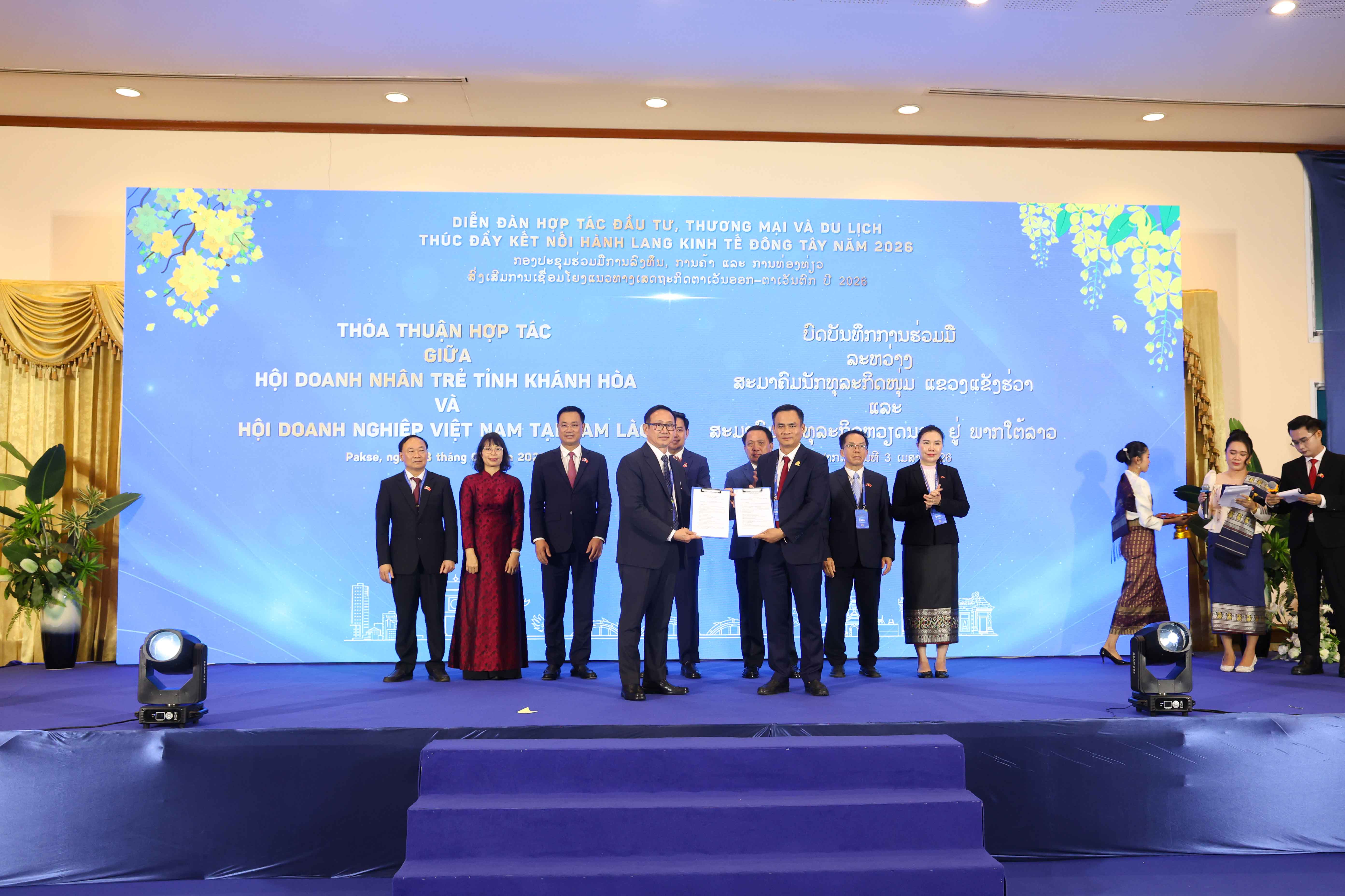 Trong khuôn khổ diễn đàn, ông Nguyễn Thanh Hải – Tổng Giám đốc Công ty Yến sào Khánh Hoà (đại diện Hội Doanh nhân trẻ Khánh Hòa) đã chính thức ký kết thỏa thuận hợp tác chiến lược với các Hội Doanh nghiệp tại Nam Lào, tỉnh Attapeu và tỉnh Sekong. Động thái này không chỉ tạo ra hành lang giao thương bền vững cho cộng đồng doanh nghiệp, mà còn là minh chứng rõ nét góp phần vun đắp, thắt chặt mối quan hệ hữu nghị truyền thống tốt đẹp về kinh tế – chính trị giữa hai nước Việt Nam – Lào.