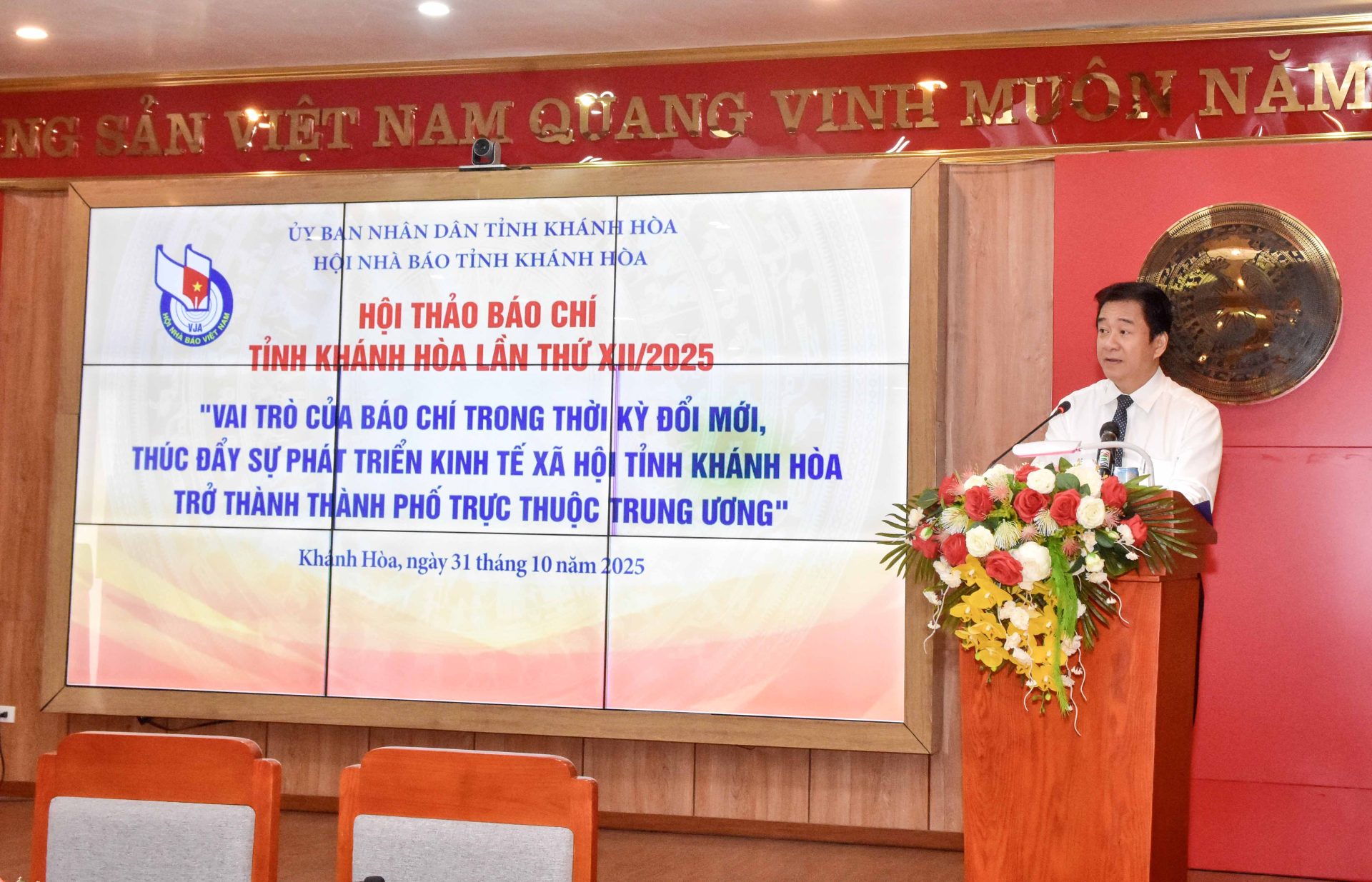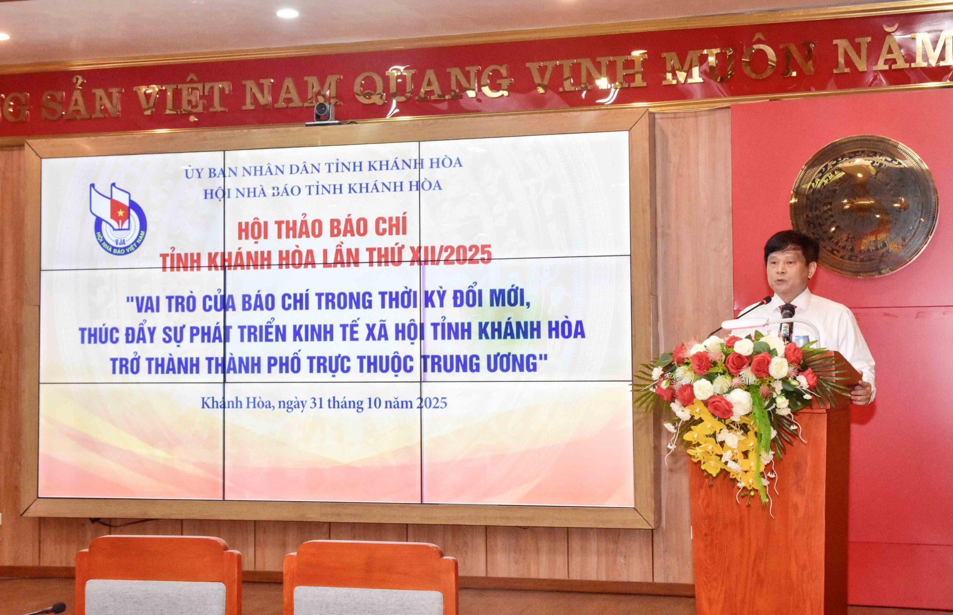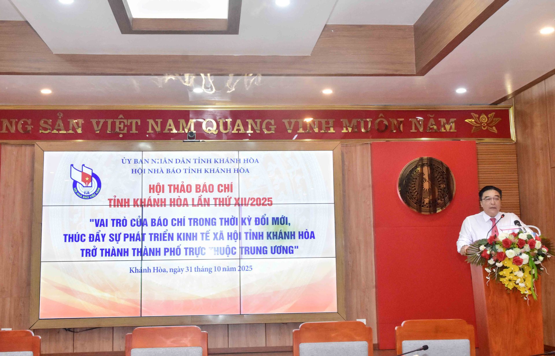Ngày 31/10, Hội Nhà báo tỉnh Khánh Hòa tổ chức Hội thảo báo chí tỉnh lần thứ XII năm 2025 với chủ đề: “Vai trò của Báo chí trong thời kỳ đổi mới, thúc đẩy sự phát triển kinh tế xã hội tỉnh Khánh Hòa trở thành thành phố trực thuộc Trung ương”.