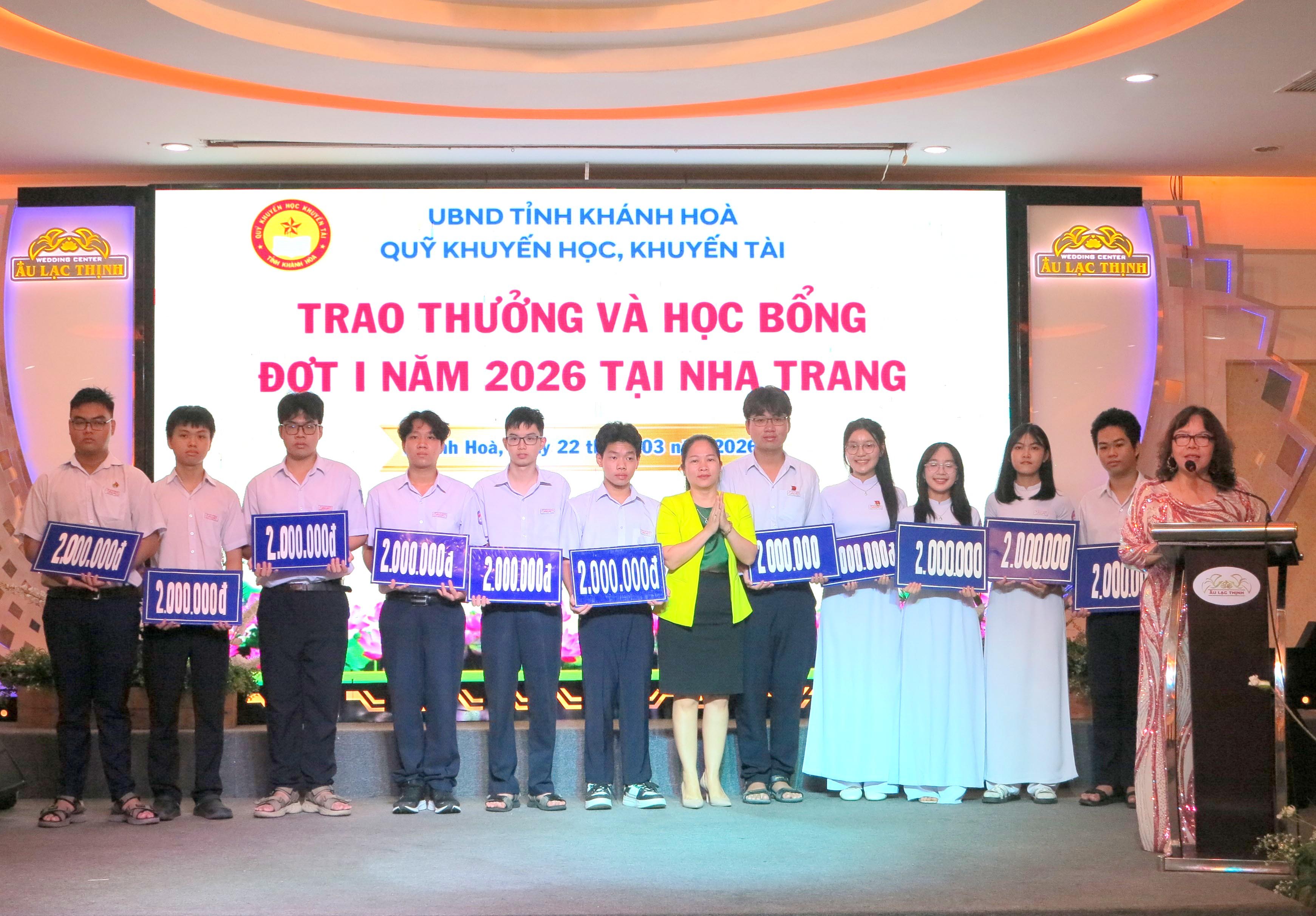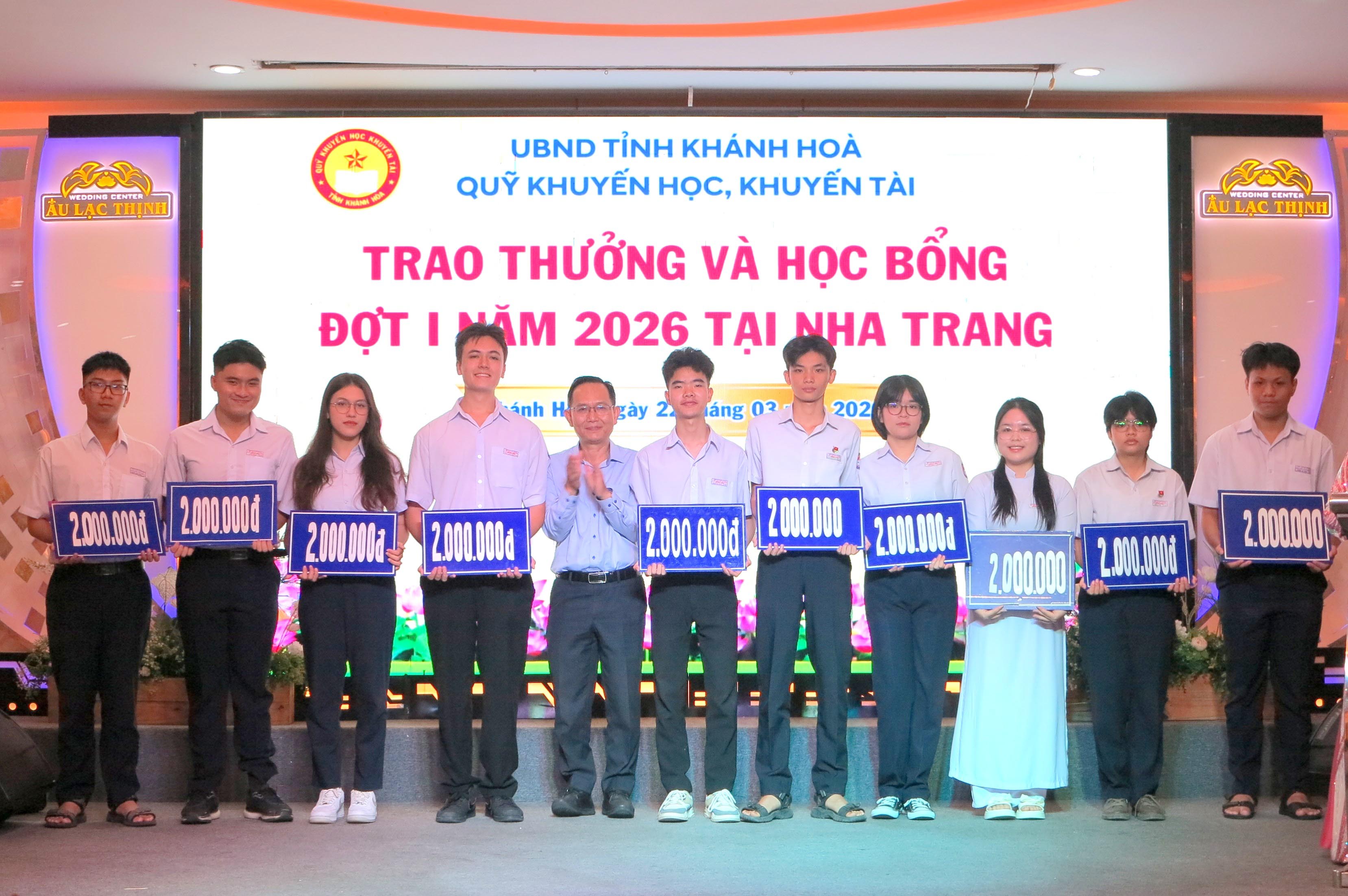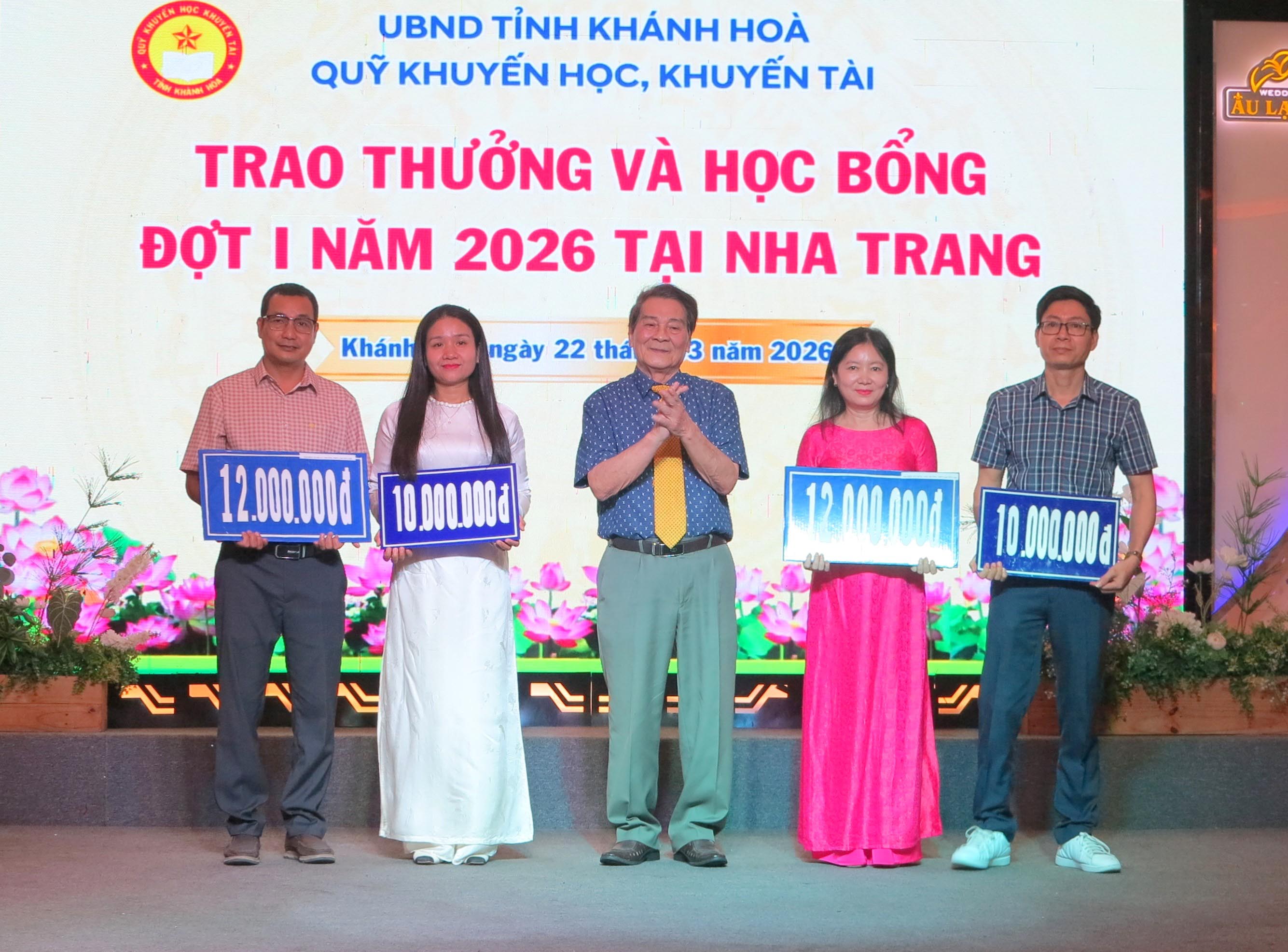 Sáng 22-3, Quỹ Khuyến học, khuyến tài Khánh Hòa tổ chức chương trình trao thưởng, học bổng đợt 1 tại phường Nha Trang năm 2026.