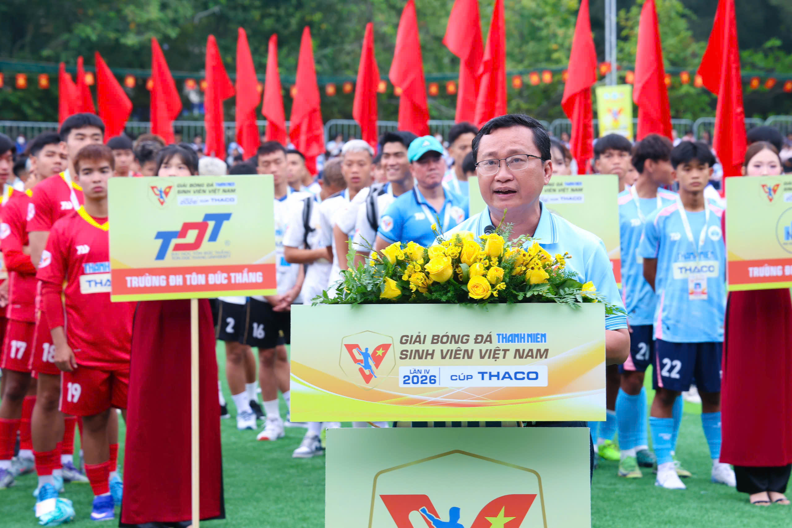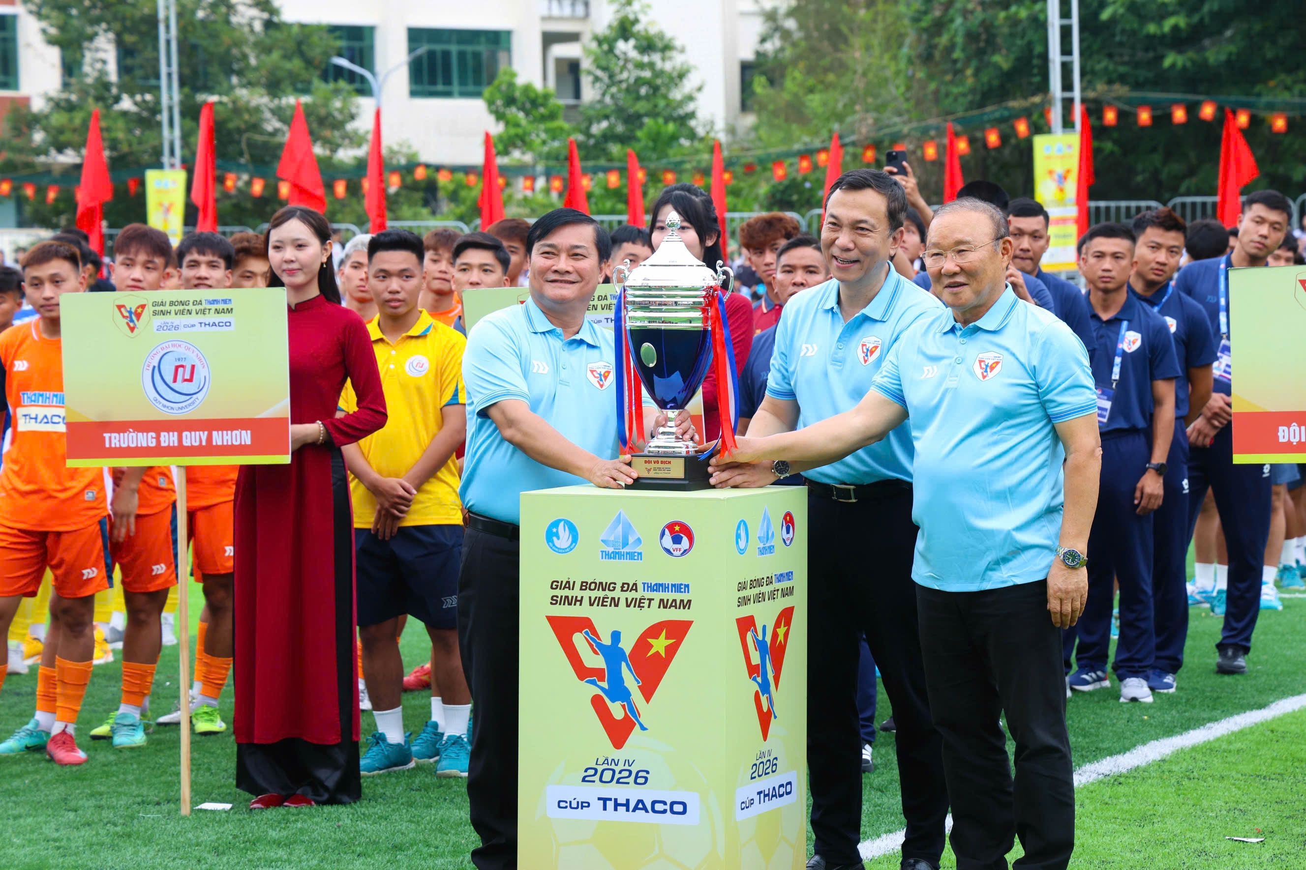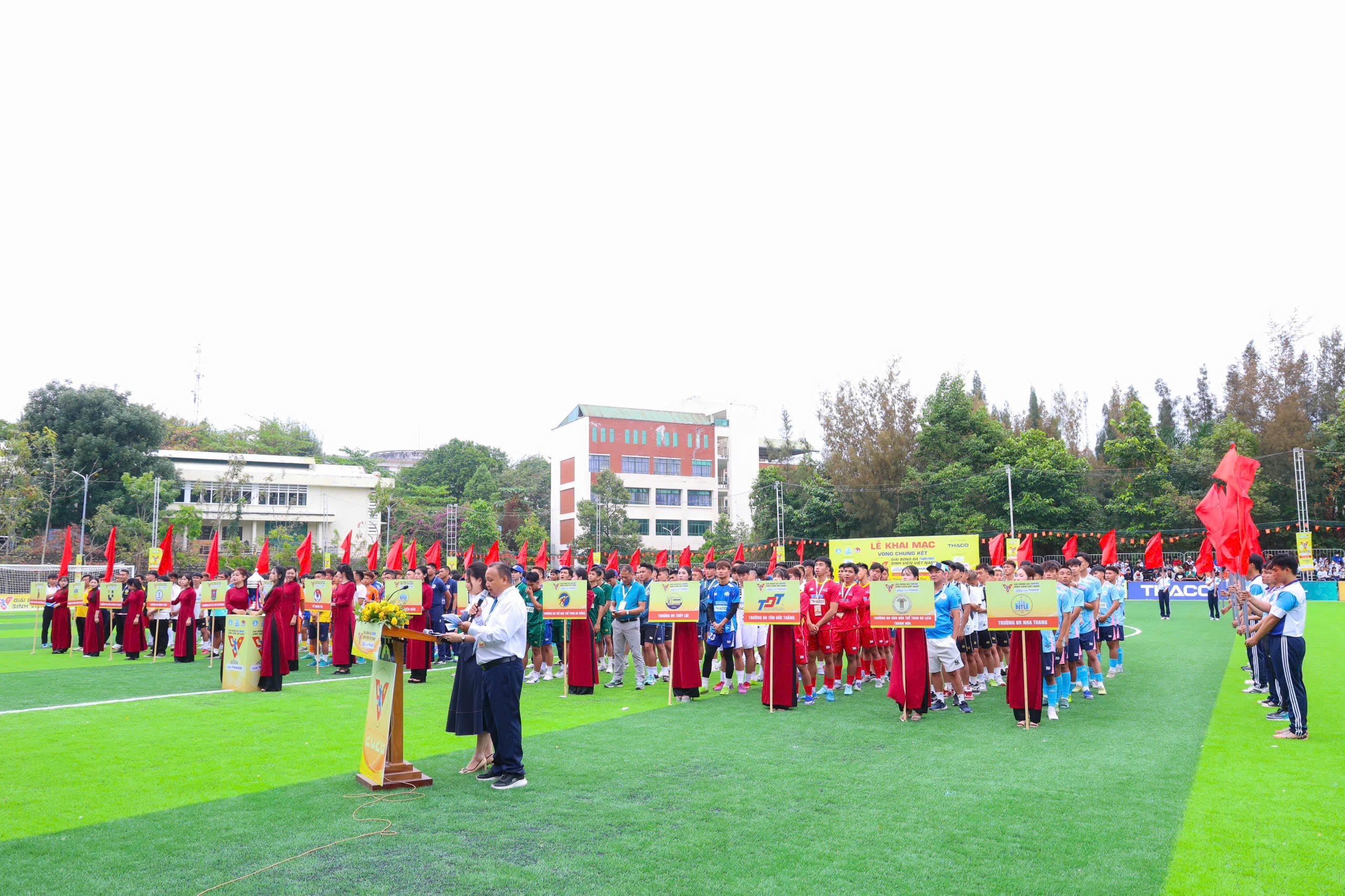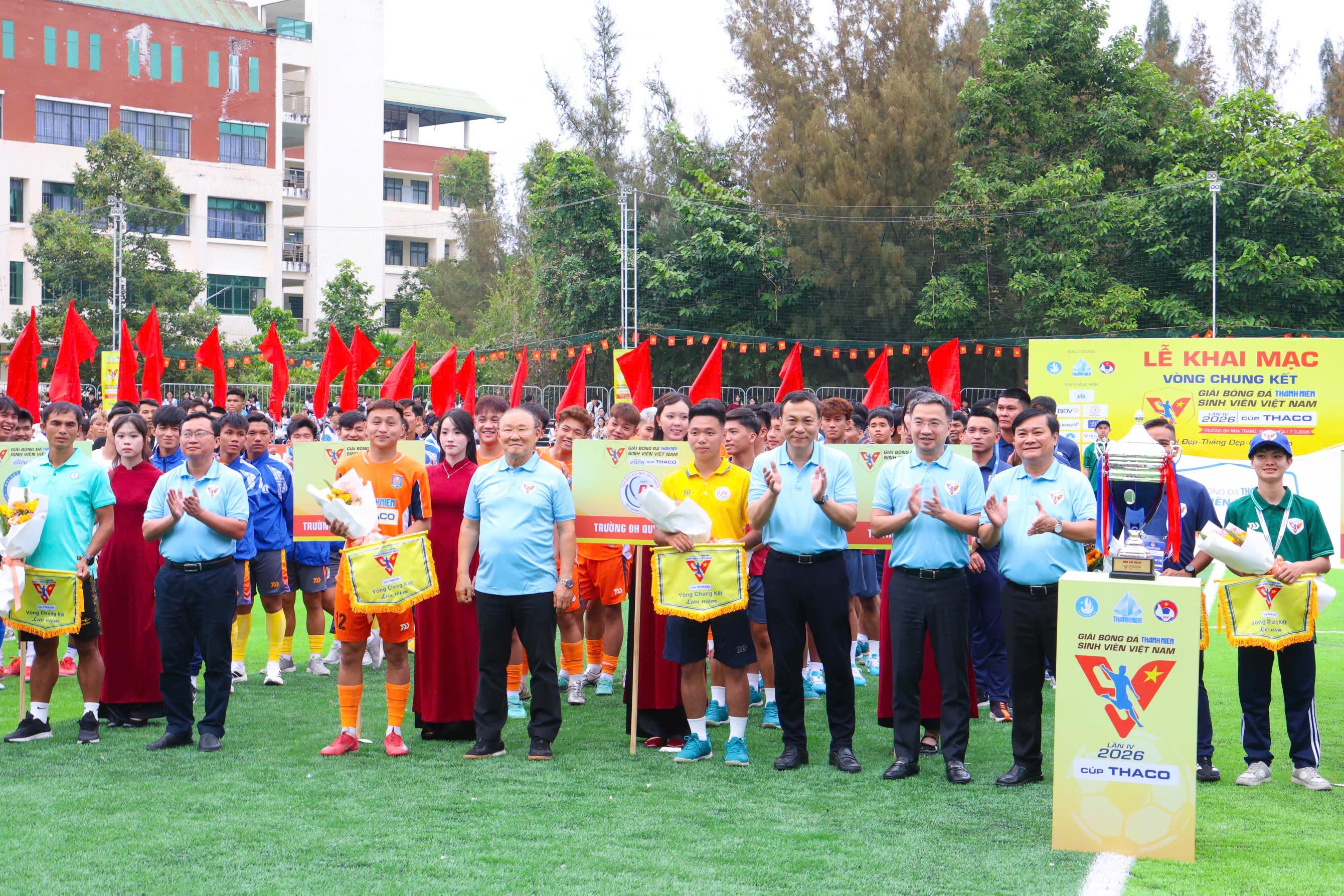 ⏰Ngày 07/3/2026, tại SVĐ Trường ĐH Nha Trang, lễ khai mạc VCK Giải bóng đá TNSV Việt Nam lần IV- 2026 do Báo Thanh Niên phối hợp với Liên đoàn Bóng đá Việt Nam tổ chức đã diễn ra trong không khí sôi động. Sau thời gian tranh tài, với 60 đội bóng đến từ nhiều trường ĐH, CĐ và học viện trên toàn quốc tham gia đã có LL đội xuất sắc lọt vào VCK.