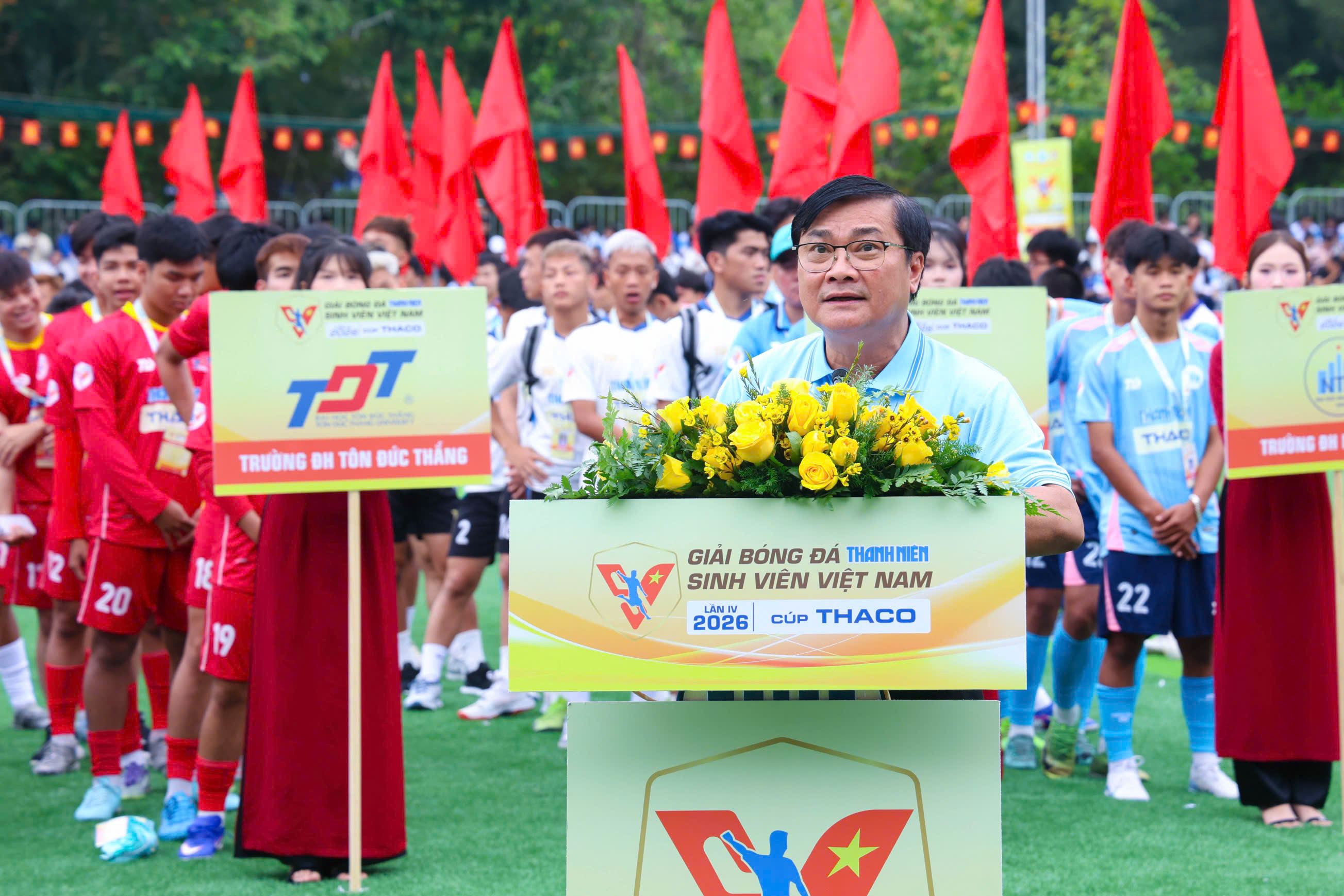 📌Tham dự buổi lễ, Ông Nguyễn Thanh Hải – Tổng Giám đốc Công ty Yến sào Khánh Hòa đã đến dự và chúc mừng giải đấu. Với vai trò là đơn vị tài trợ, Công ty mong muốn góp phần tiếp sức cho phong trào thể thao sinh viên Việt Nam, lan tỏa tinh thần nhiệt huyết và năng động của thế hệ trẻ, thúc đẩy việc rèn luyện thể chất, tăng cường giao lưu, đoàn kết và phát hiện những tài năng bóng đá trẻ trong môi trường học đường.