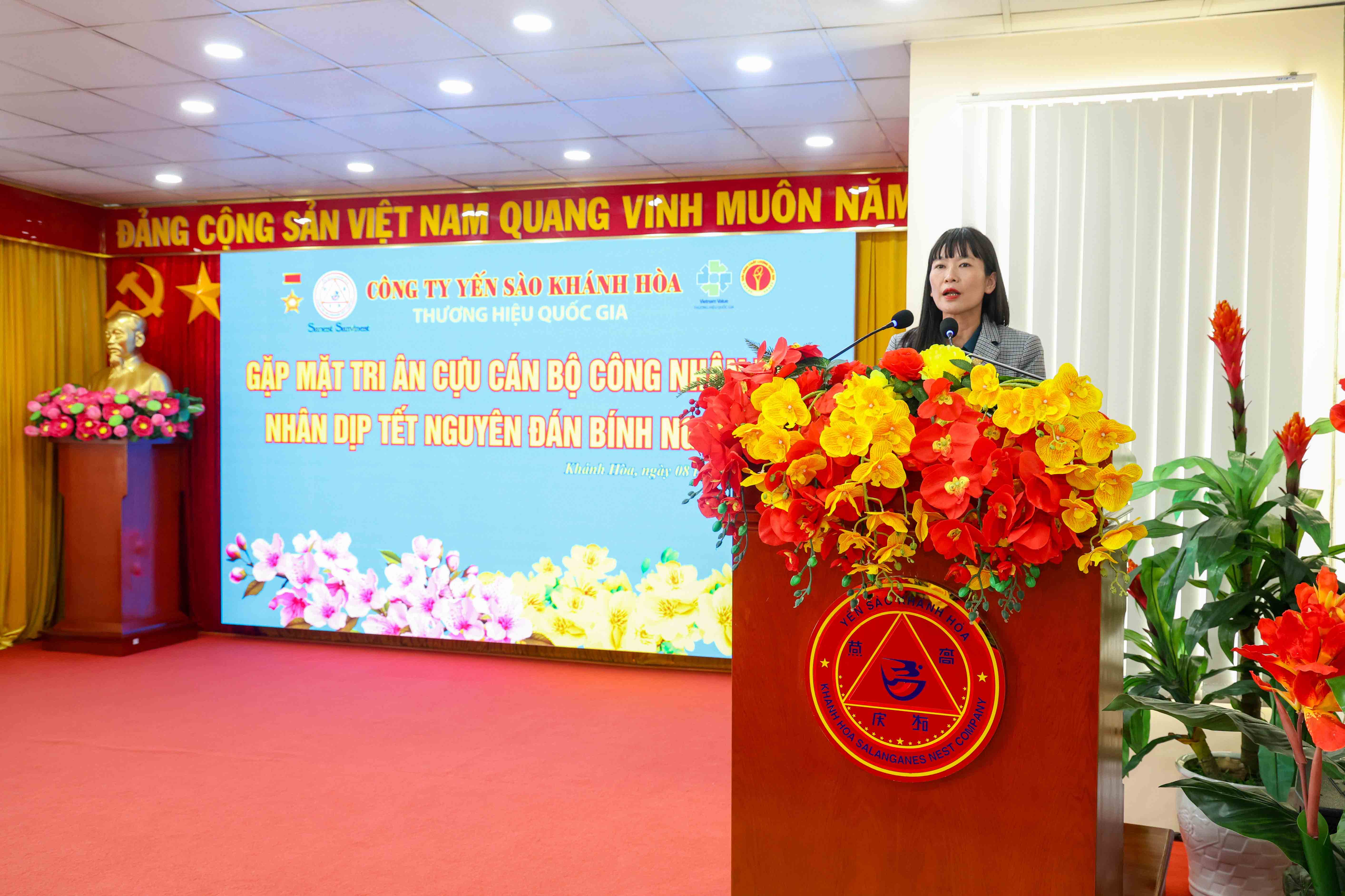 🎤Phát biểu tại chương trình, Bà Trịnh Thị Hồng Vân- Chủ tịch HĐTV Công ty bày tỏ sự tri ân sâu sắc đối với những đóng góp to lớn của các thế hệ CBCNLĐ đã đặt nền móng vững chắc, góp phần xây dựng nên uy tín, thương hiệu Yến sào Khánh Hòa hôm nay. Đồng thời khẳng định con người là giá trị cốt lõi trong chiến lược phát triển bền vững, dù ở bất kỳ vị trí hay hoàn cảnh nào, những thế hệ đã từng cống hiến cho Công ty luôn được ghi nhớ và trân trọng.