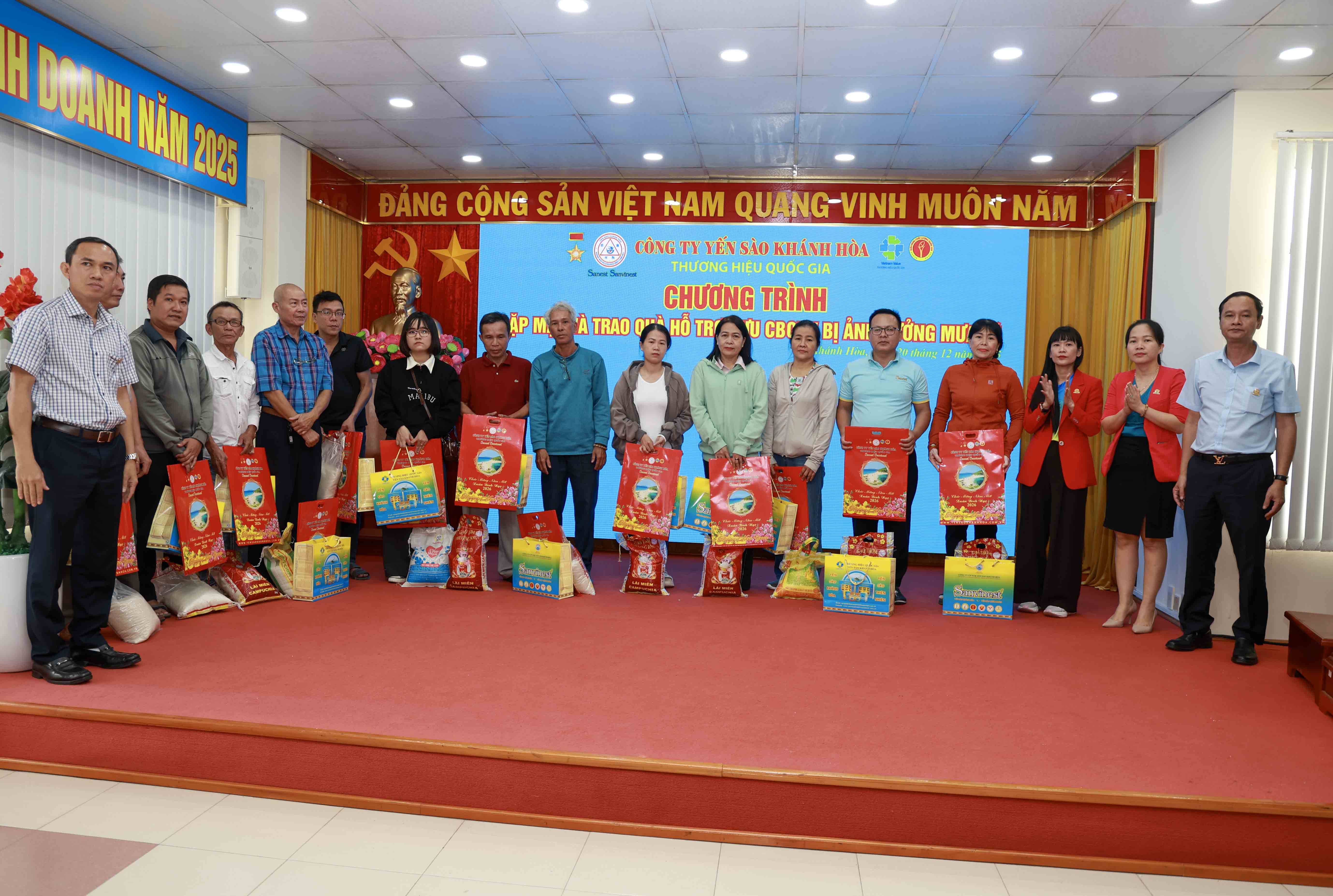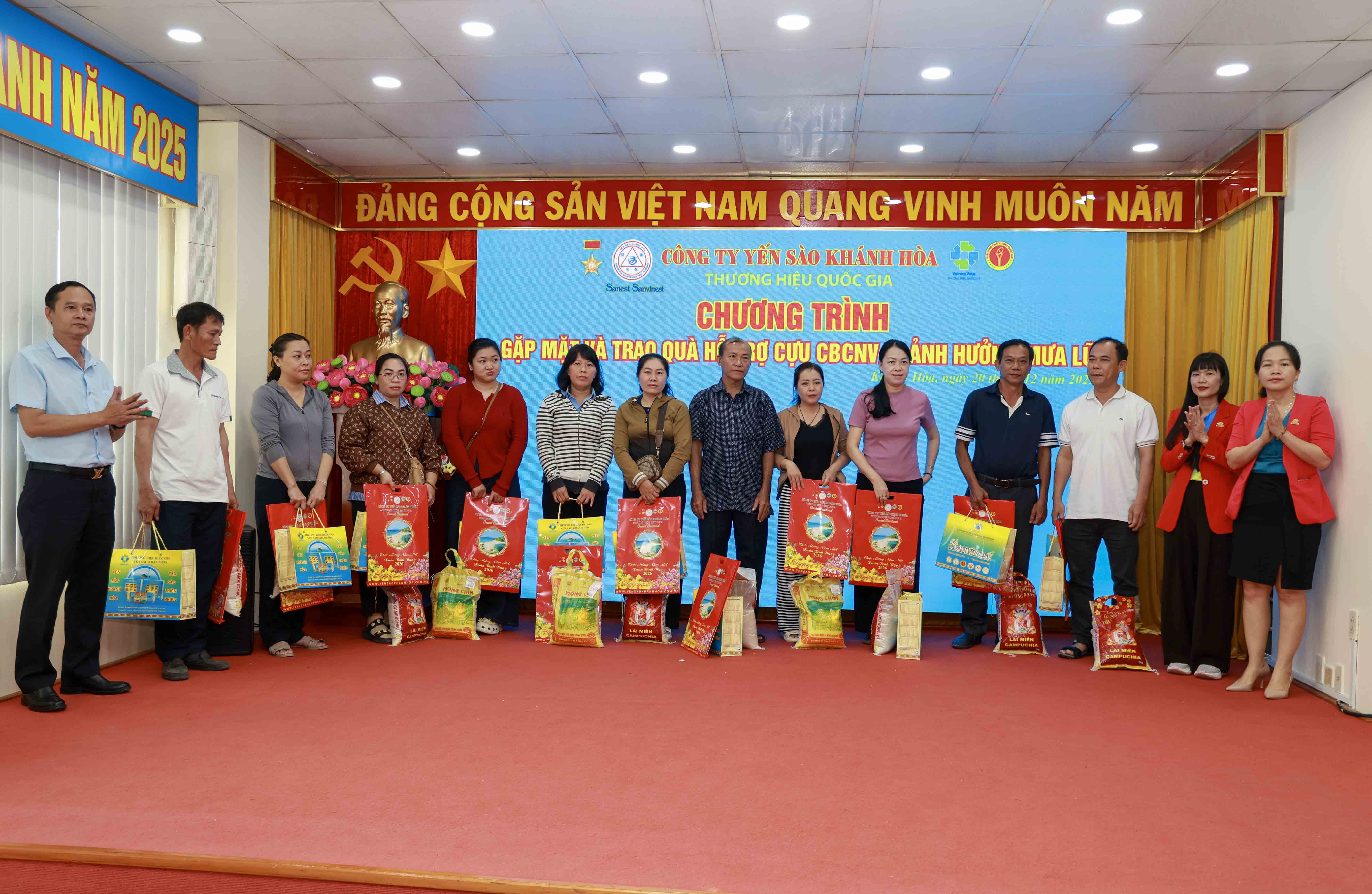 Ngày 20/12, Công ty Yến sào Khánh Hòa tổ chức buổi gặp mặt, thăm hỏi, chia sẻ và động viên các nguyên cán bộ, công nhân lao động cùng gia đình bị ảnh hưởng bởi đợt mưa lũ vừa qua.