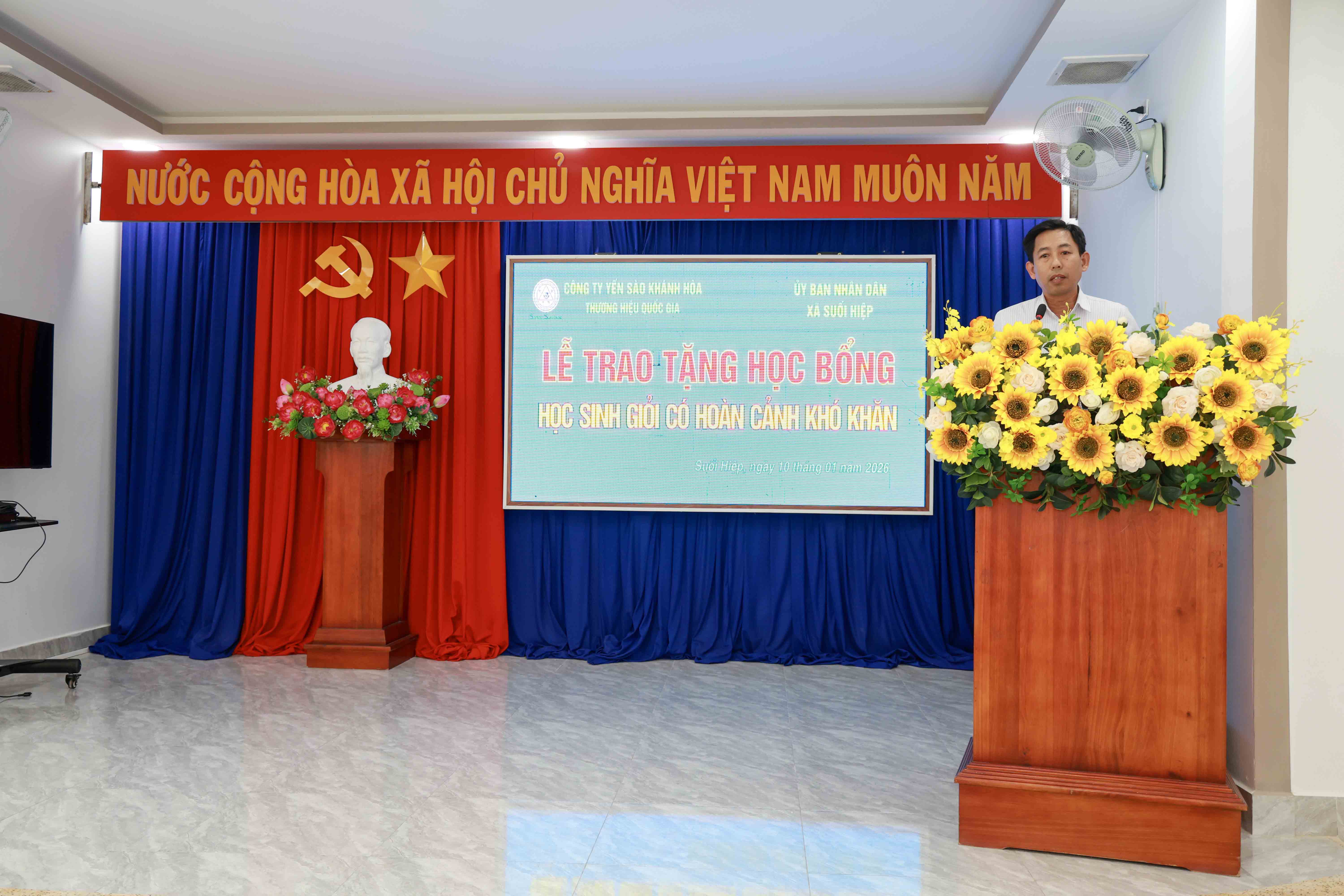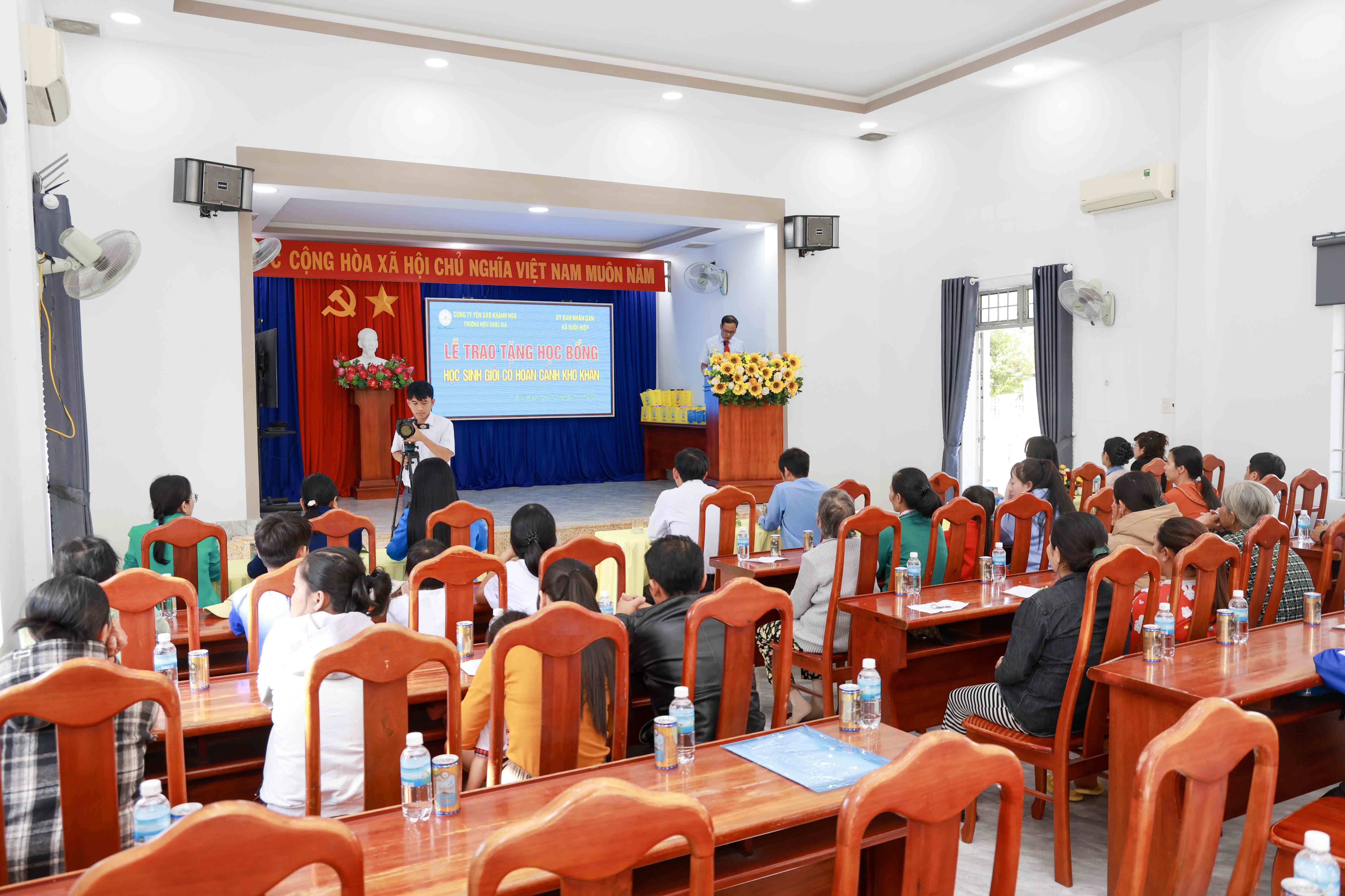 Chiều 10/1, Công ty Yến sào Khánh Hòa phối hợp cùng Công ty CP NGK Yến sào Khánh Hòa và UBND xã Suối Hiệp tổ chức lễ trao tặng học bổng cho các em học sinh có hoàn cảnh khó khăn trên địa bàn xã.