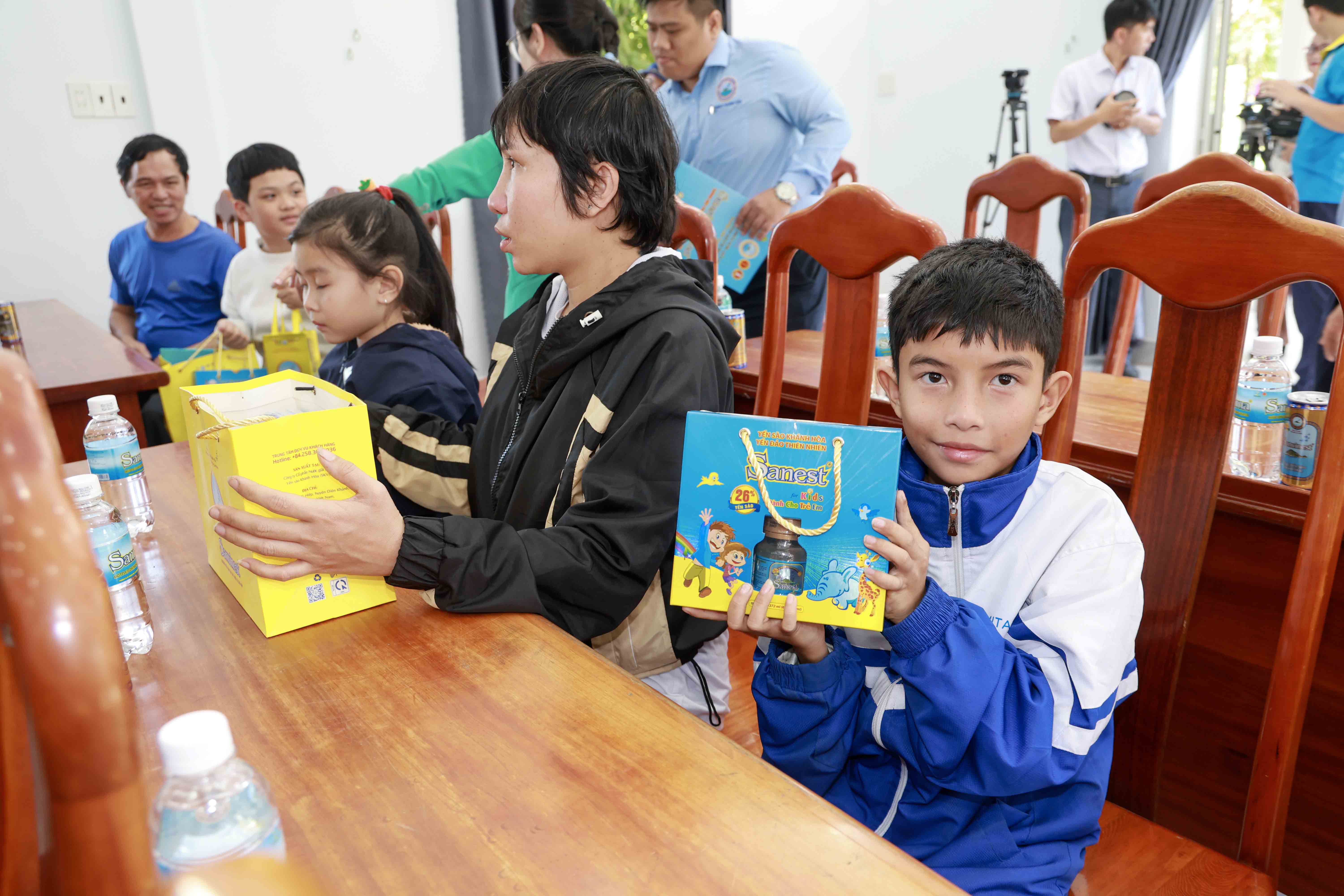 Tại đây, đại diện lãnh đạo Công ty đã ân cần thăm hỏi và trao tặng 20 suất học bổng cho các em học sinh nghèo hiếu học. Mỗi suất học bổng bao gồm hai triệu đồng tiền mặt và phần quà thiết thực (gồm sản phẩm Công ty và vở học). Số tiền trên được trích từ nguồn kinh phí dành cho hoạt động an sinh xã hội của Yến sào Khánh Hòa.