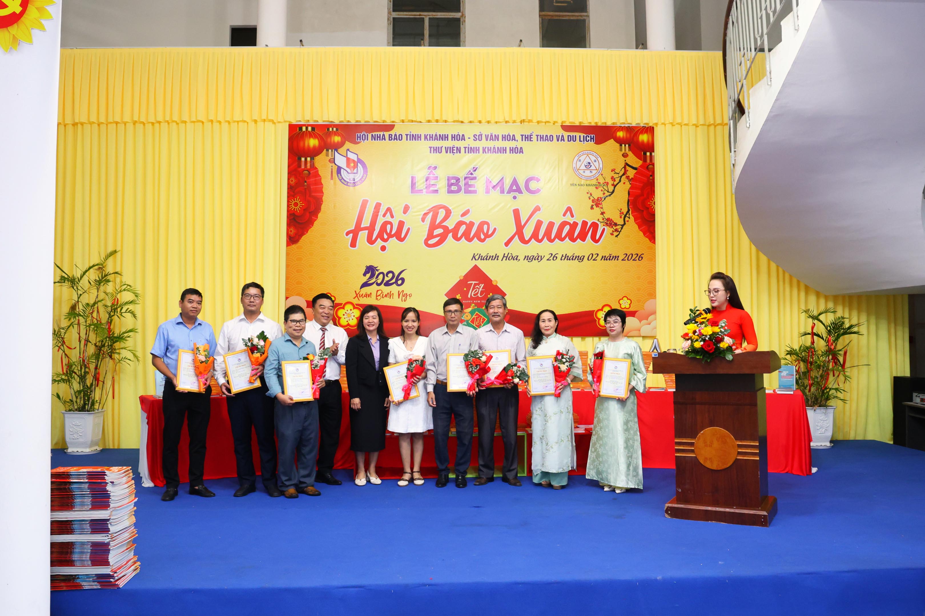 Bên cạnh đó, Ban tổ chức cũng trao tặng giấy chứng nhận cho Công ty Yến sào Khánh Hòa vì đã có thành tích xuất sắc tham gia Hội báo Xuân Bính Ngọ 2026 và tặng ấn phẩm báo chí cho quân và dân đặc khu Trường Sa.