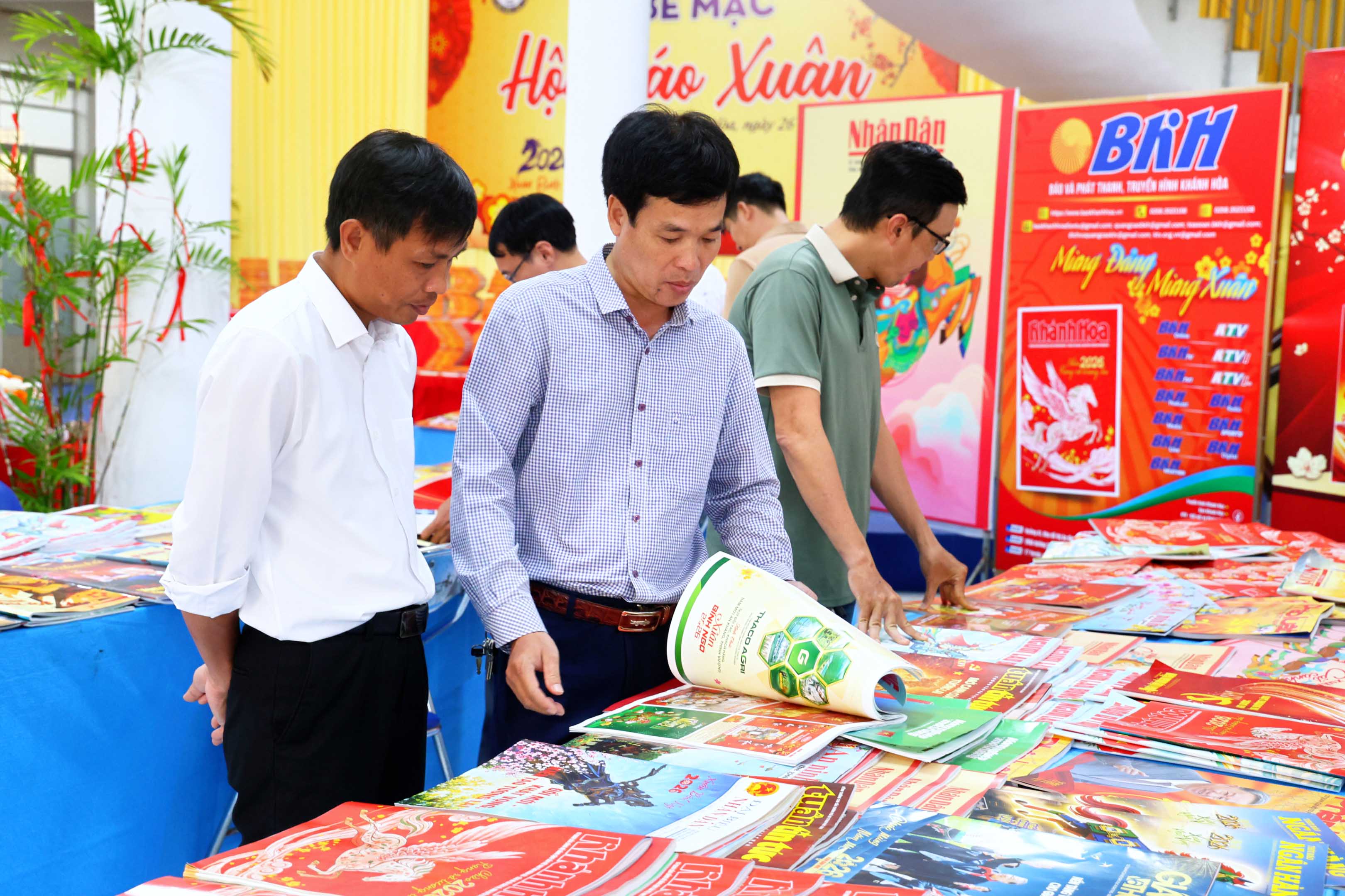 Hội báo xuân trưng bày, giới thiệu hơn 1.000 ấn phẩm báo chí, các tài liệu tuyên truyền của tỉnh Khánh Hòa và cả nước. Đây là những ấn phẩm báo chí tiêu biểu, phản ánh những sự kiện chính trị, kinh tế, văn hóa – xã hội, an ninh – quốc phòng nổi bật,… Nhiều tờ báo đã cho thấy sự đầu tư, chăm chút trong việc trình bày bìa báo xuân đẹp mắt, ấn tượng.