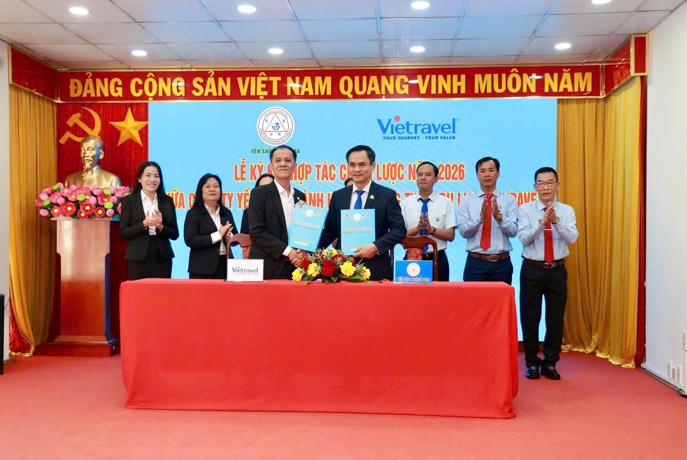 Phát biểu tại buổi lễ, ông Nguyễn Thanh Hải, Tổng Giám đốc Công ty Yến sào Khánh Hòa tin tưởng rằng: “Thông qua bản ký kết hợp tác chiến lược lần này, Yến sào Khánh Hòa và Vietravel sẽ tạo ra nhiều giá trị mới cho du khách nội địa và quốc tế, góp phần vào sự phát triển bền vững của ngành du lịch Khánh Hòa.”