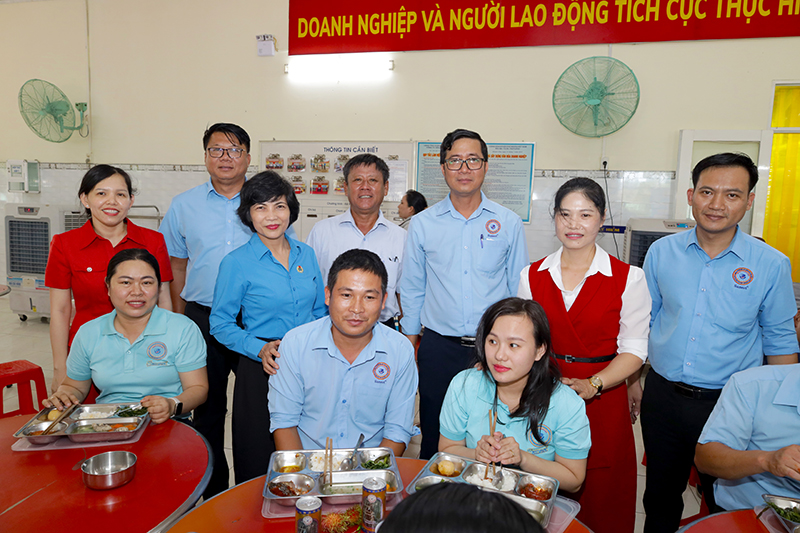 Chị Trần Thị Hương – Phó Chủ tịch Liên đoàn Lao động tỉnh Khánh Hòa, lãnh đạo CĐCS Công ty Yến sào Khánh Hòa, Bệnh viện Quân Y 87, Công ty Sanest Khánh Hòa và người lao động chụp ảnh lưu niệm
