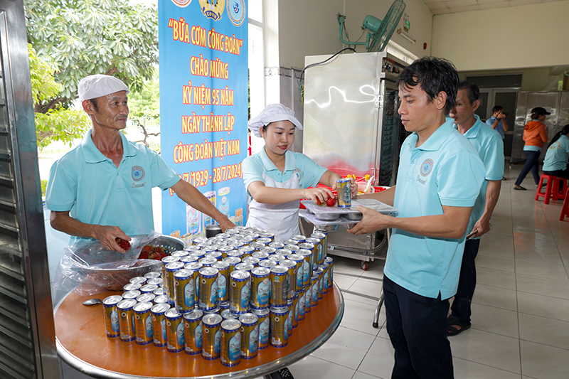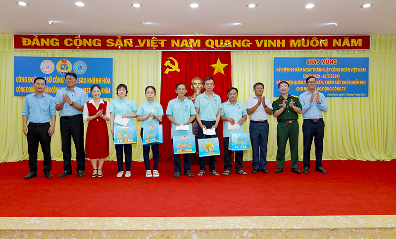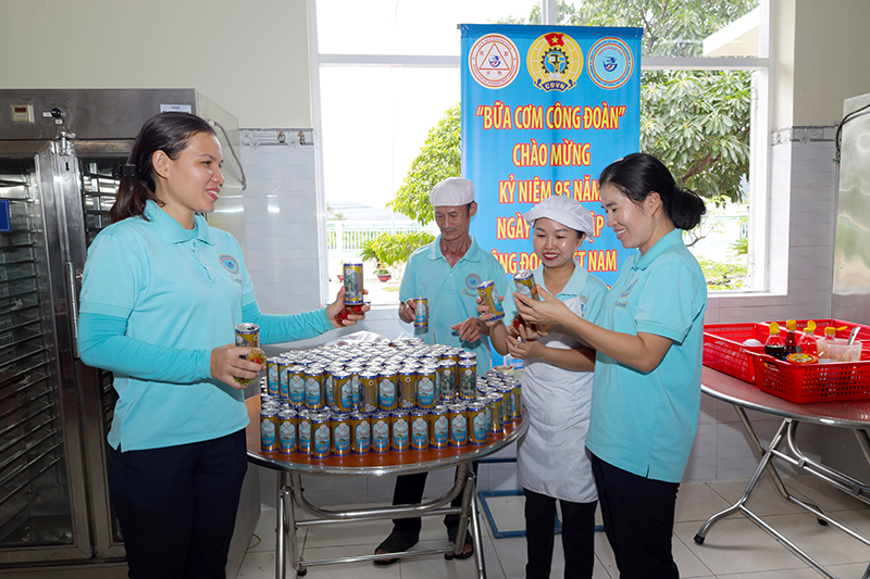 Nhân dịp này, Công đoàn bộ phận Công ty Cổ phần Nước giải khát Sanest Khánh Hòa cũng tặng 5 suất quà cho người lao động có hoàn cảnh khó khăn. Đồng thời, công ty tổ chức “Bữa cơm Công đoàn” cho 500 người lao động với mong muốn quan tâm, chăm lo tốt hơn cho người lao động; thể hiện sự tri ân, cảm ơn người lao động đã luôn cố gắng thực hiện tốt nhiệm vụ, có nhiều đóng góp cho hoạt động của doanh nghiệp.