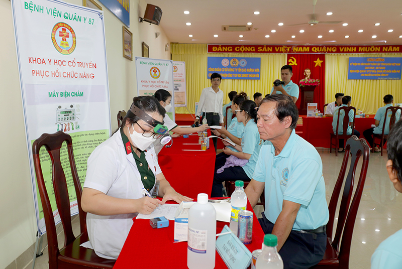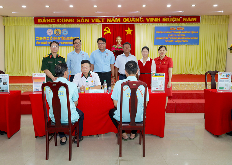 Sáng 12-7, Bệnh viện Quân y 87 phối hợp với Công ty Cổ phần Nước giải khát Sanest Khánh Hòa tổ chức tư vấn và khám sức khỏe cho 300 người lao động của công ty nhân kỷ niệm 95 năm thành lập Công đoàn Việt Nam.