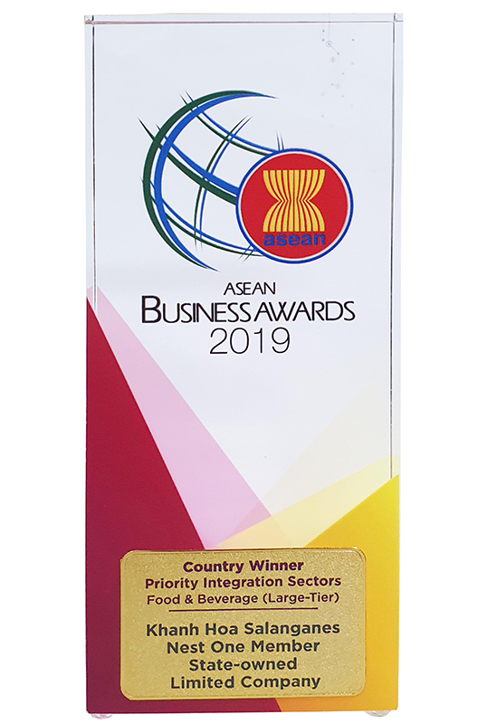 Công ty Yến sào Khánh Hòa rất vinh dự và tự hào được nhận giải thưởng Doanh nghiệp ASEAN (ABA) 2019. Giải thưởng quốc tế lần này là sự khẳng định quá trình nỗ lực phấn đấu trong nhiều năm qua của tập thể lãnh đạo, CBCN lao động và cả truyền thống ngành nghề Yến sào Khánh Hòa.