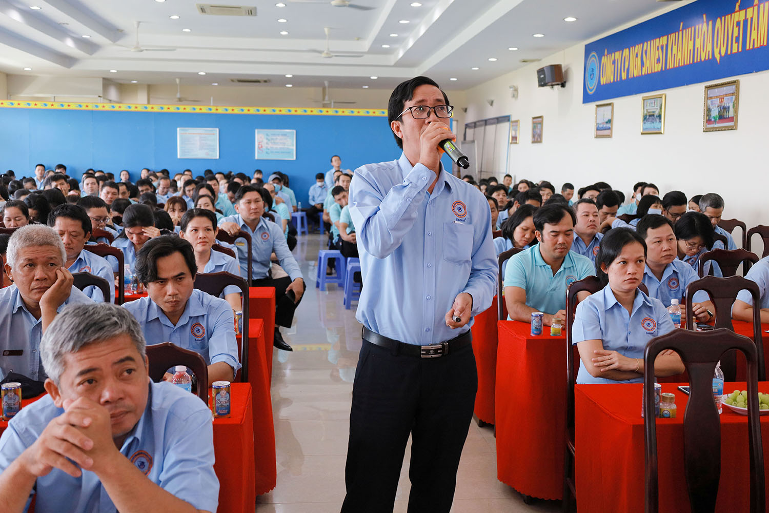 Với mục đích nâng cao hơn nữa nhận thức của CB CNLĐ, Công ty đã phổ biến nội dung các Nội quy, Quy chế đang áp dụng, lợi ích khi nắm giữ cổ phiếu SKH, tuyên truyền chống xâm phạm quyền Sở hữu trí tuệ đối với Yến sào Khánh Hòa, Sanest Khánh Hòa, đồng thời tổ chức đối thoại, tiếp thu nhiều ý kiến đóng góp hữu ích từ người lao động.